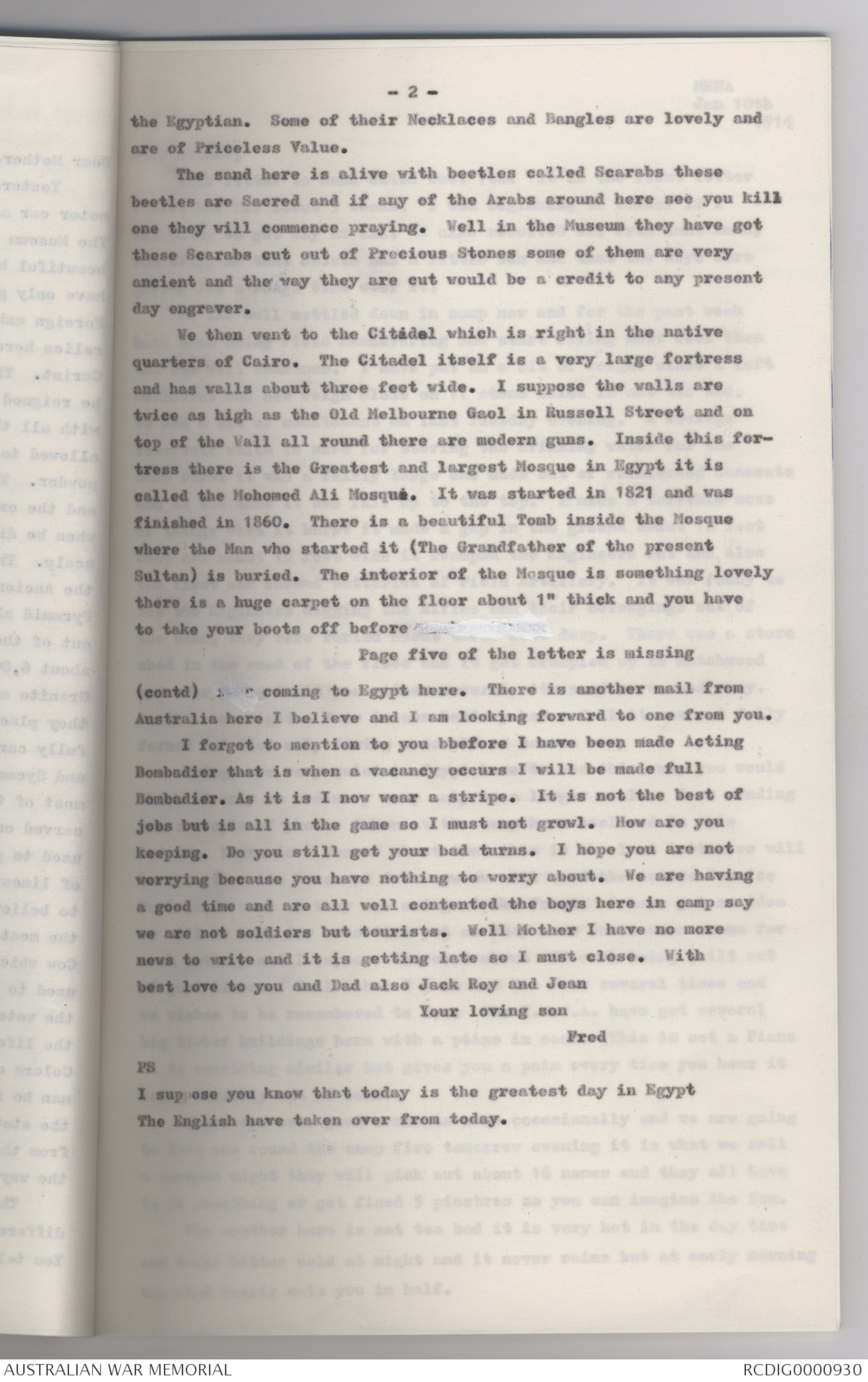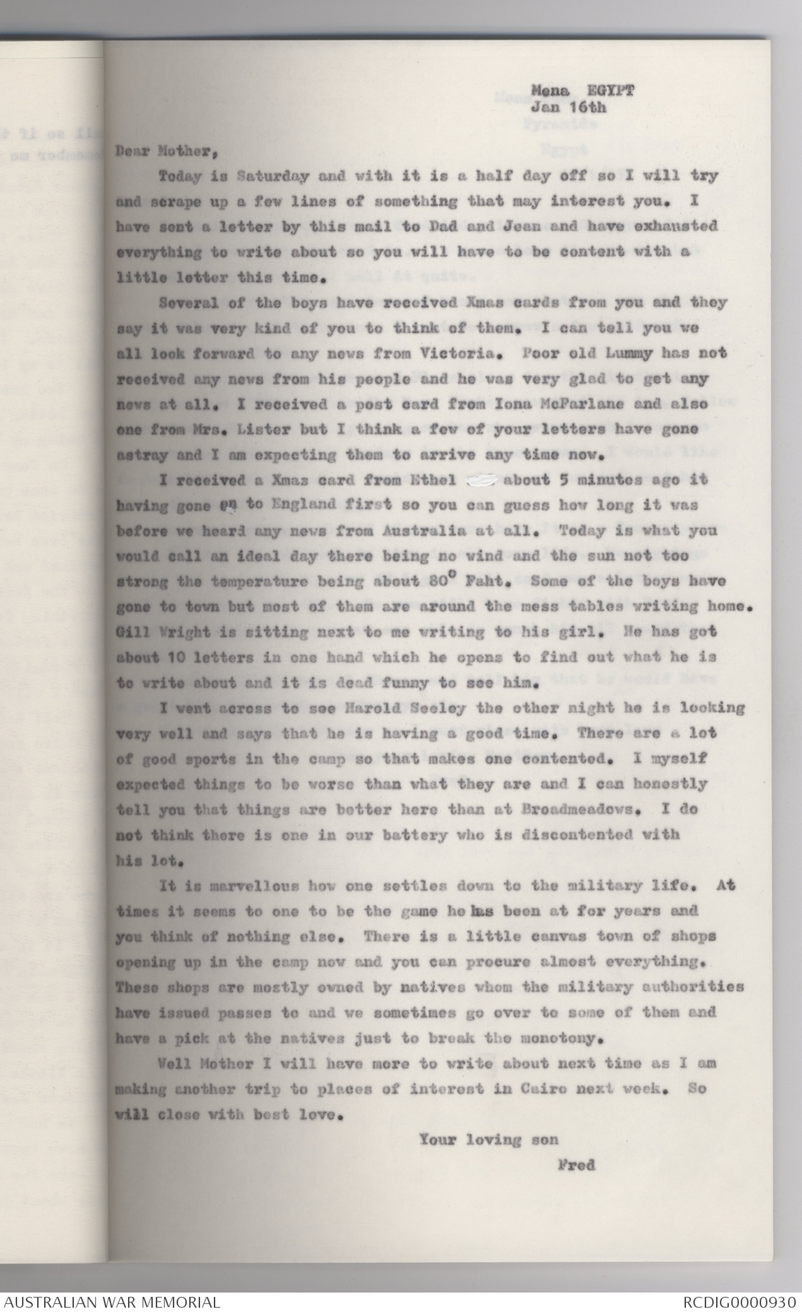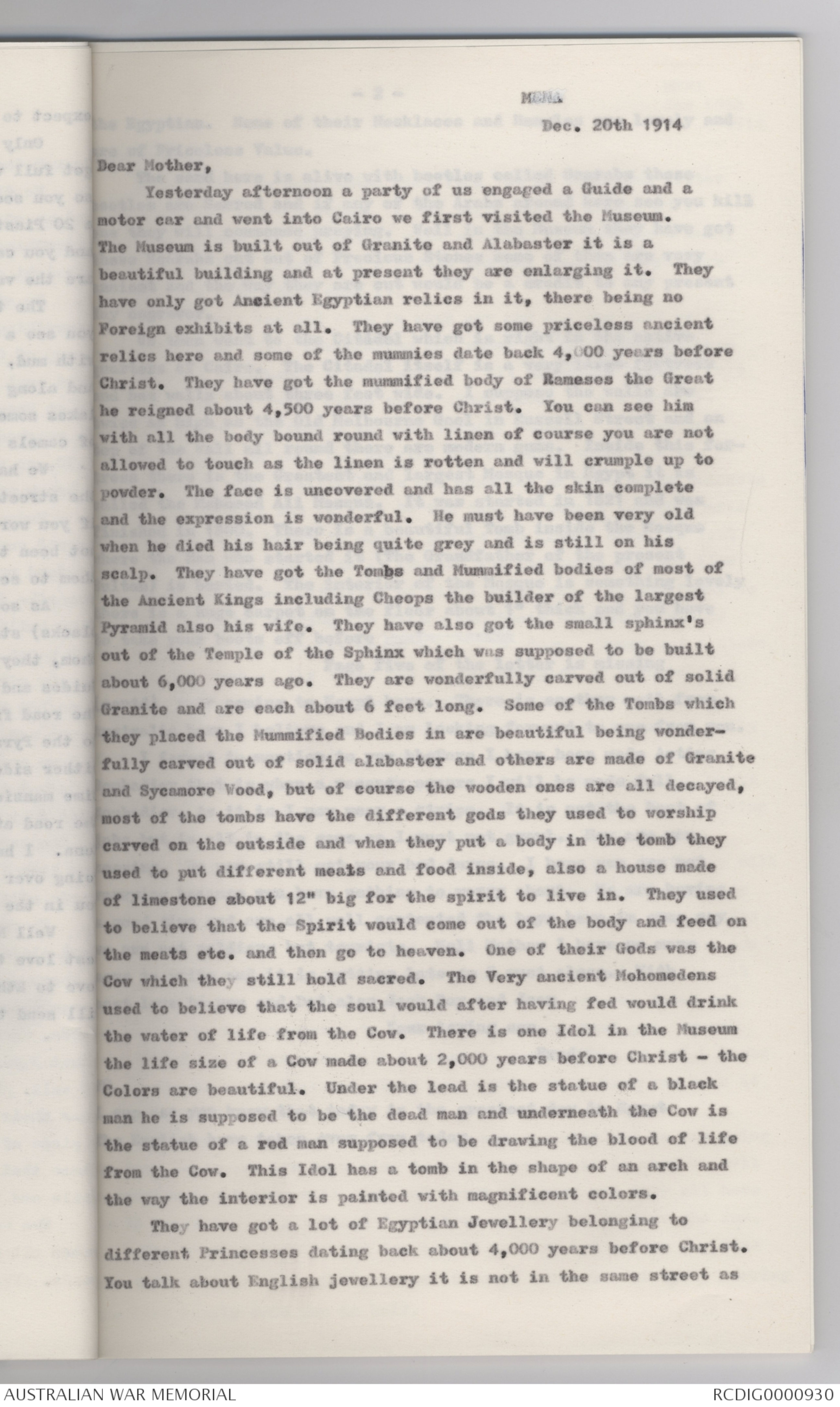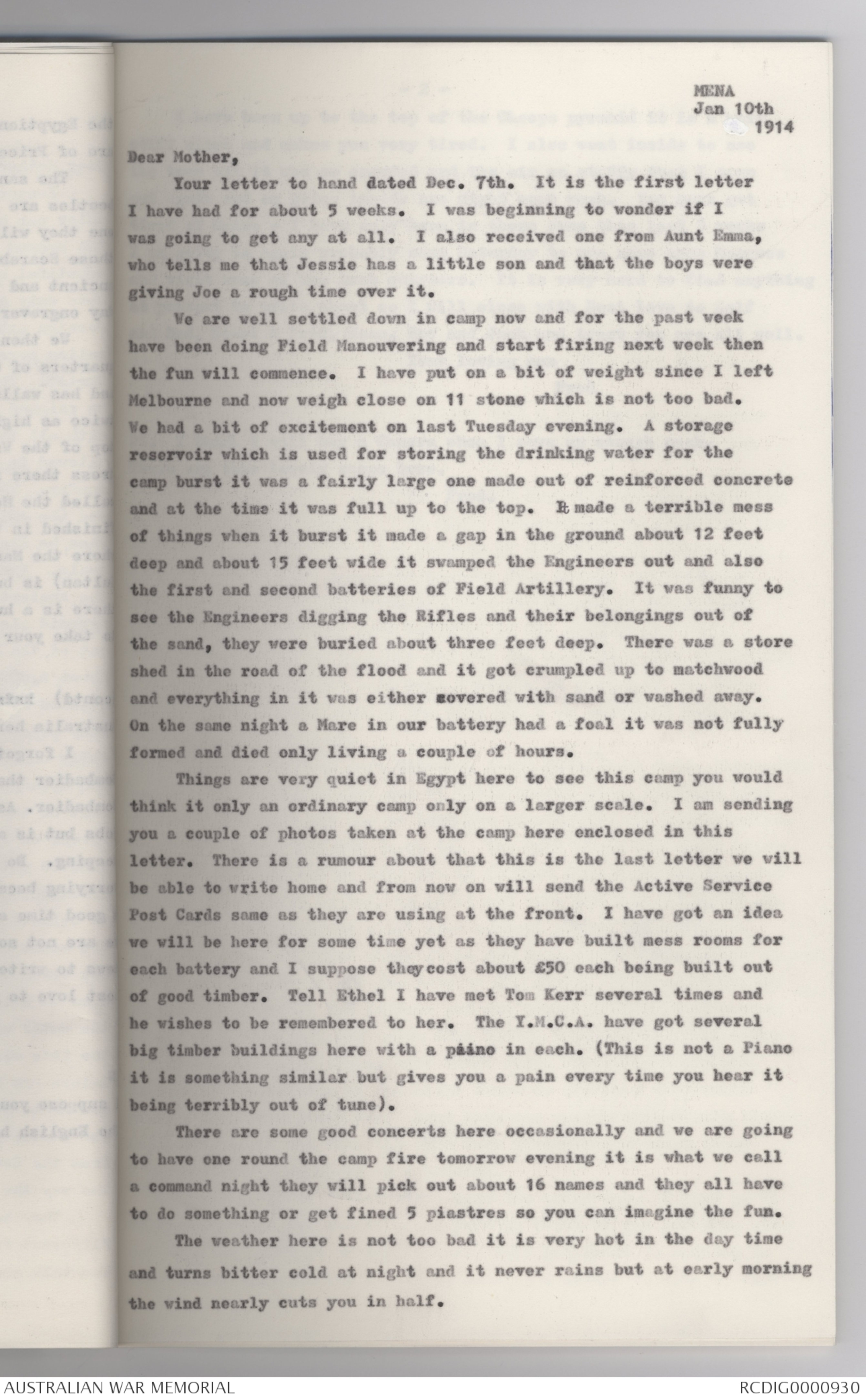 Typed copy of letters from Frederick William Rowe to his family, 1914-1915 - Part 2