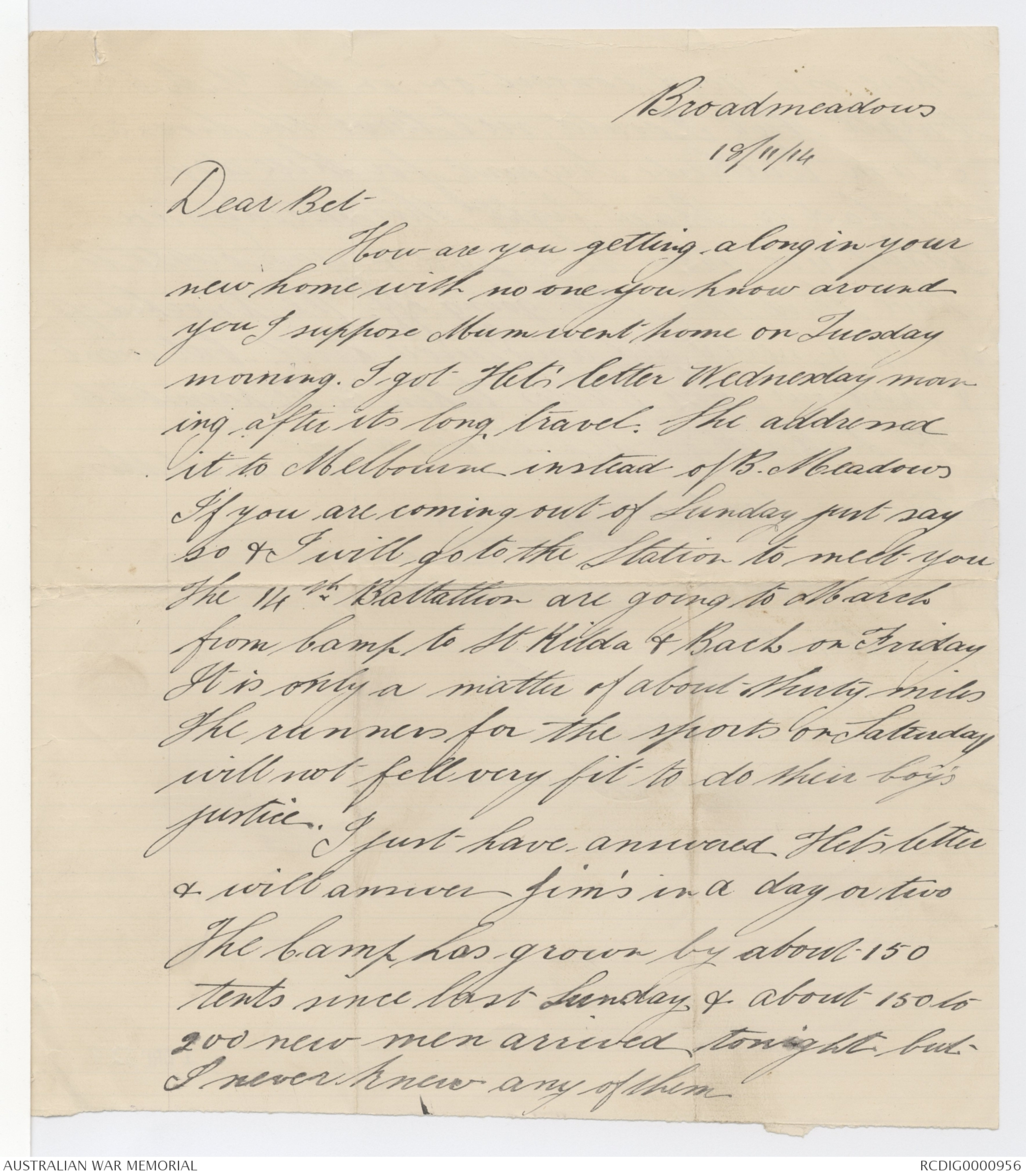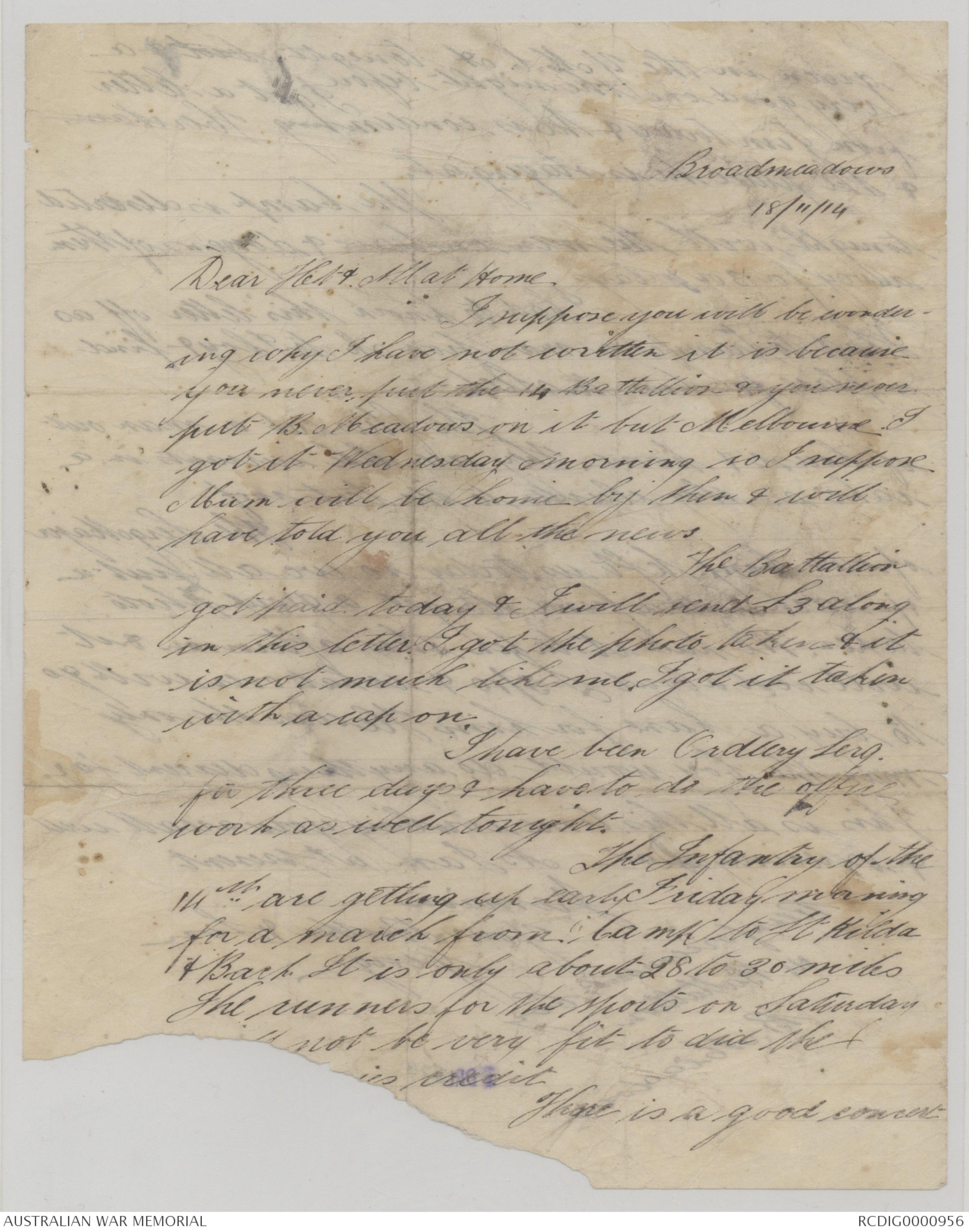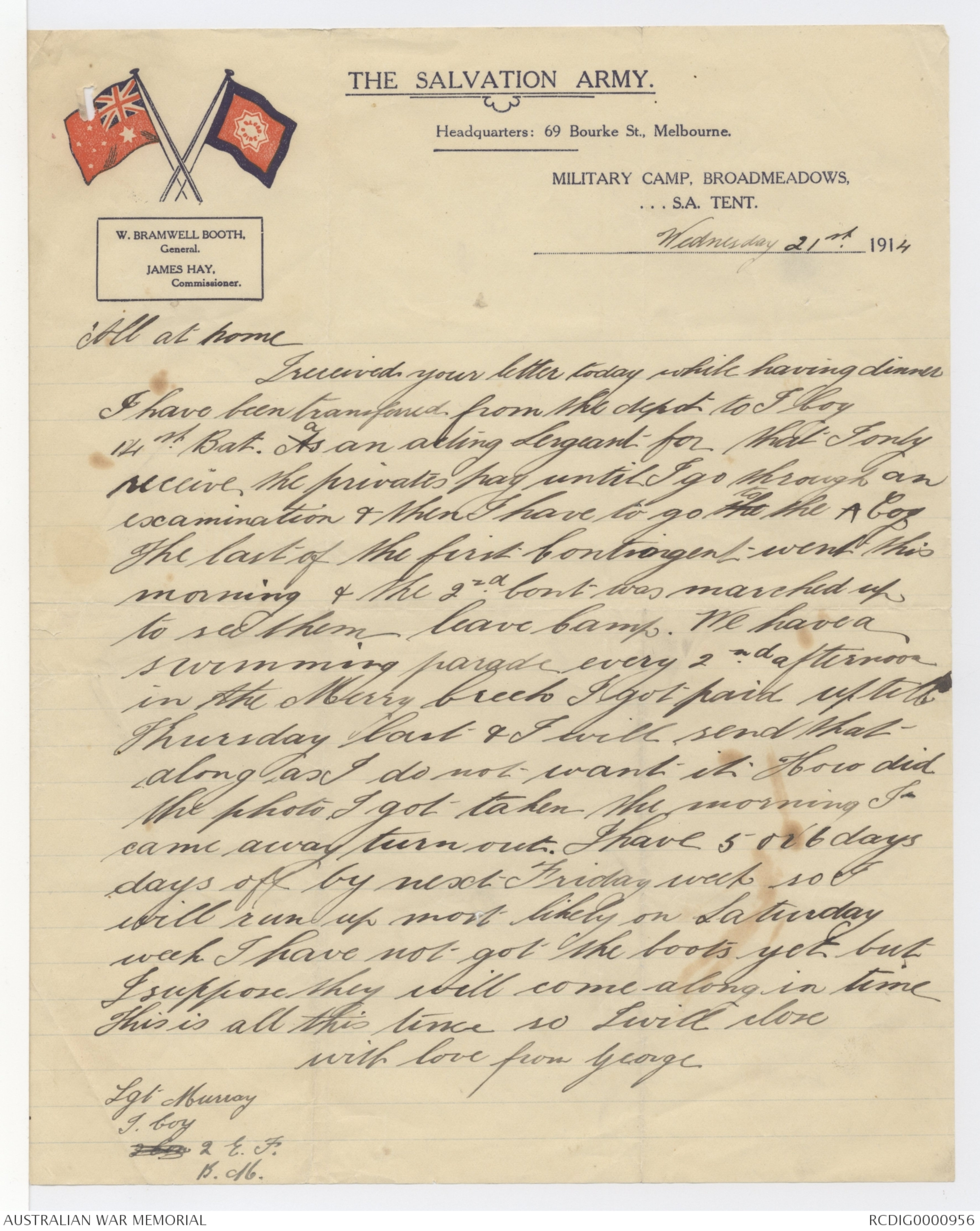Letters from George Alexander Hugh Murray to his family, 1914 - Part 1