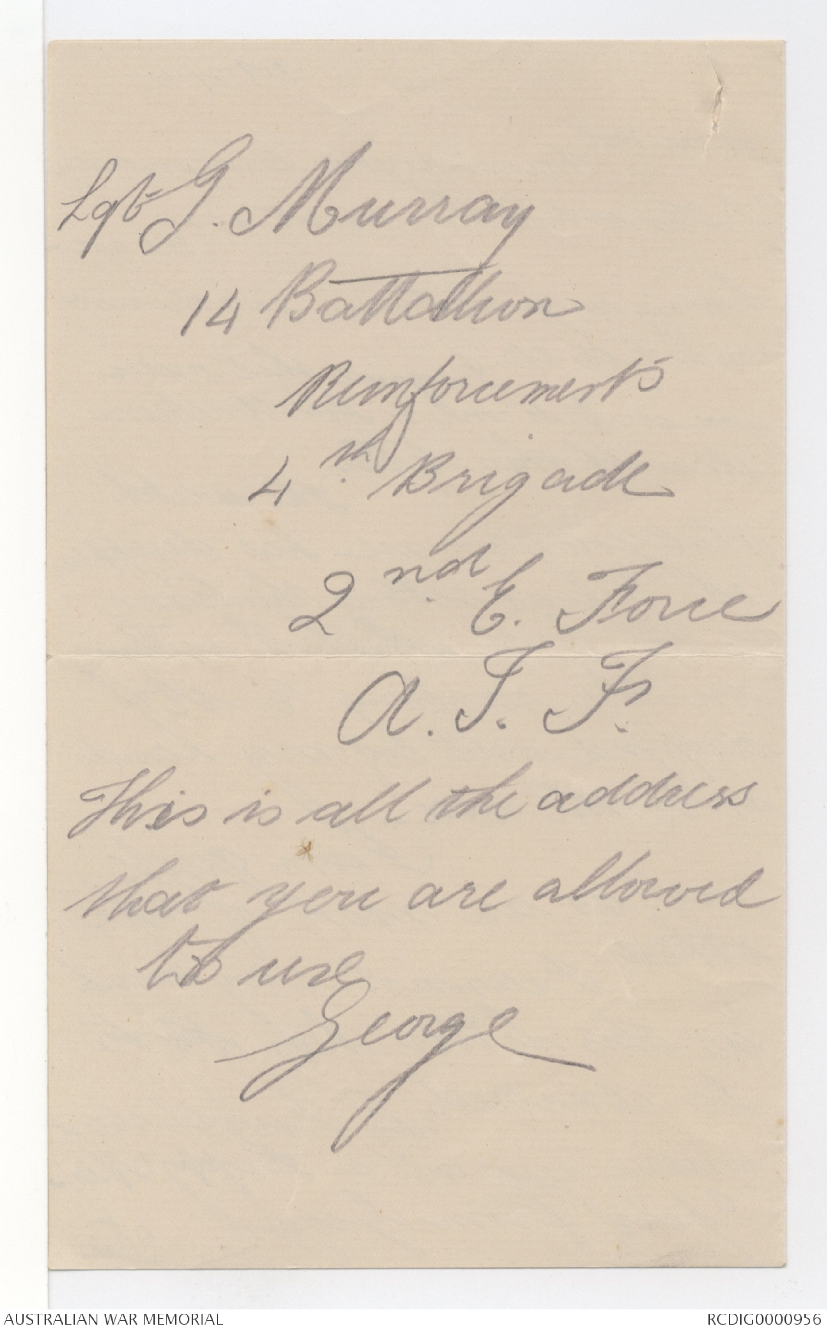Letters from George Alexander Hugh Murray to his family, 1914 - Part 3