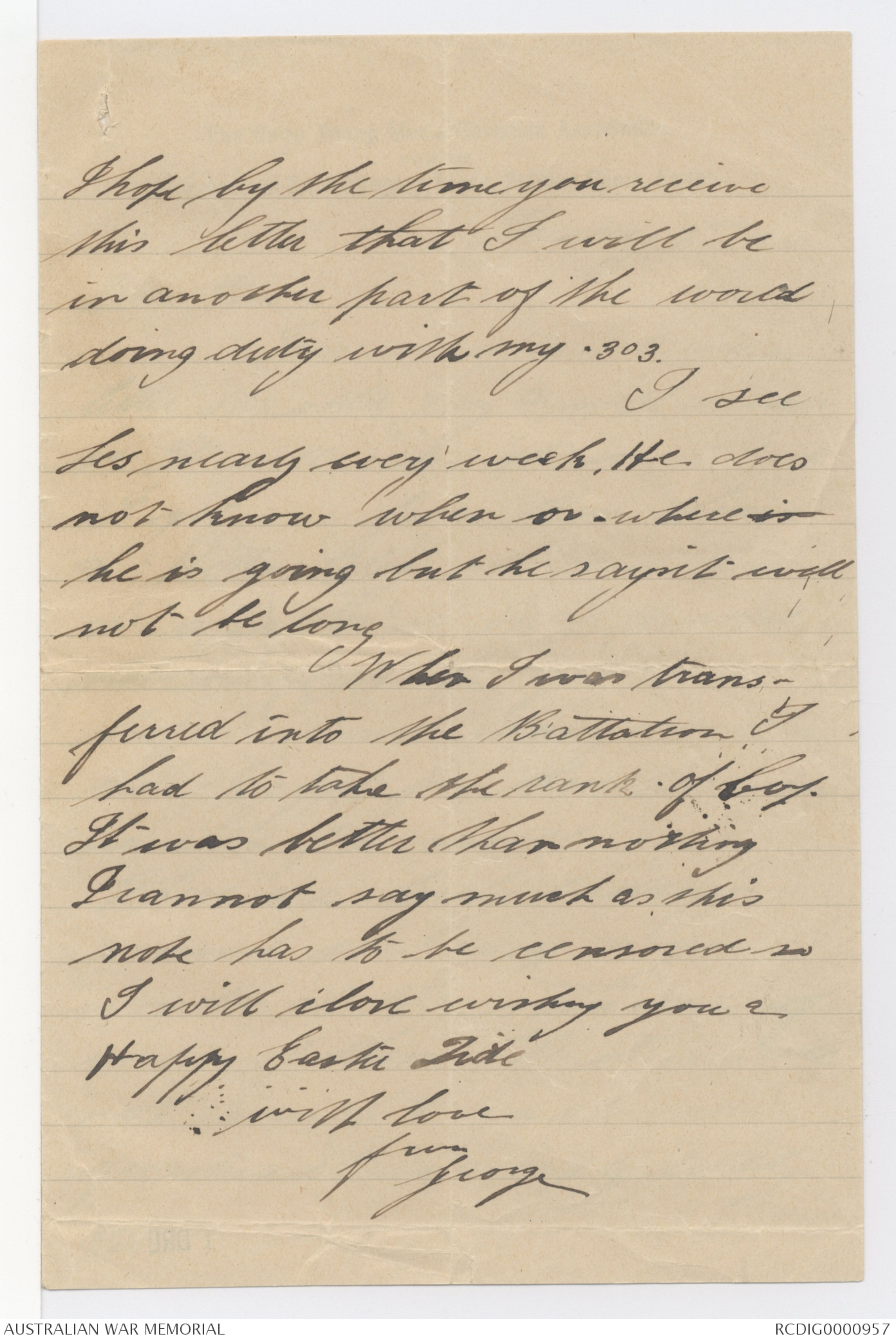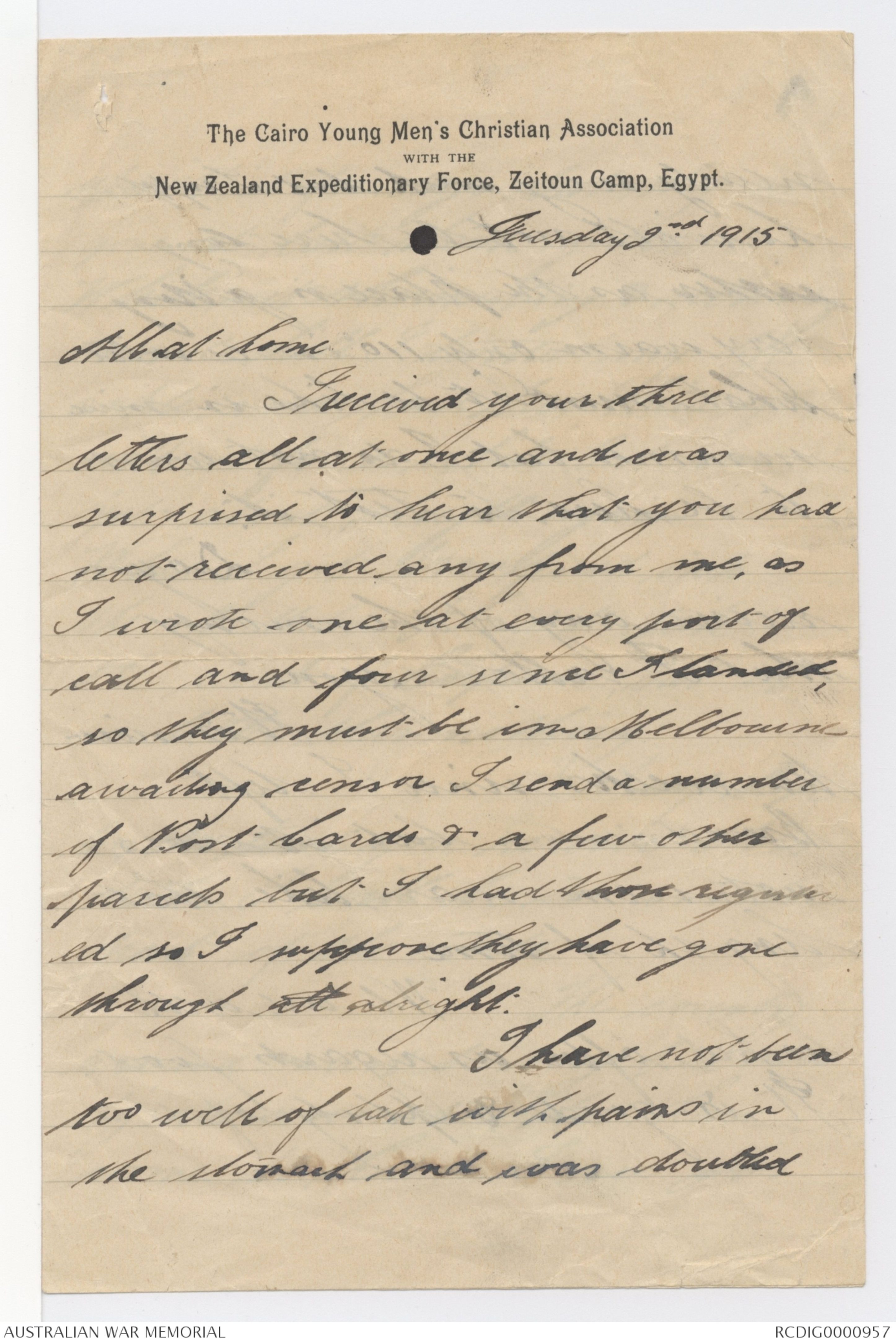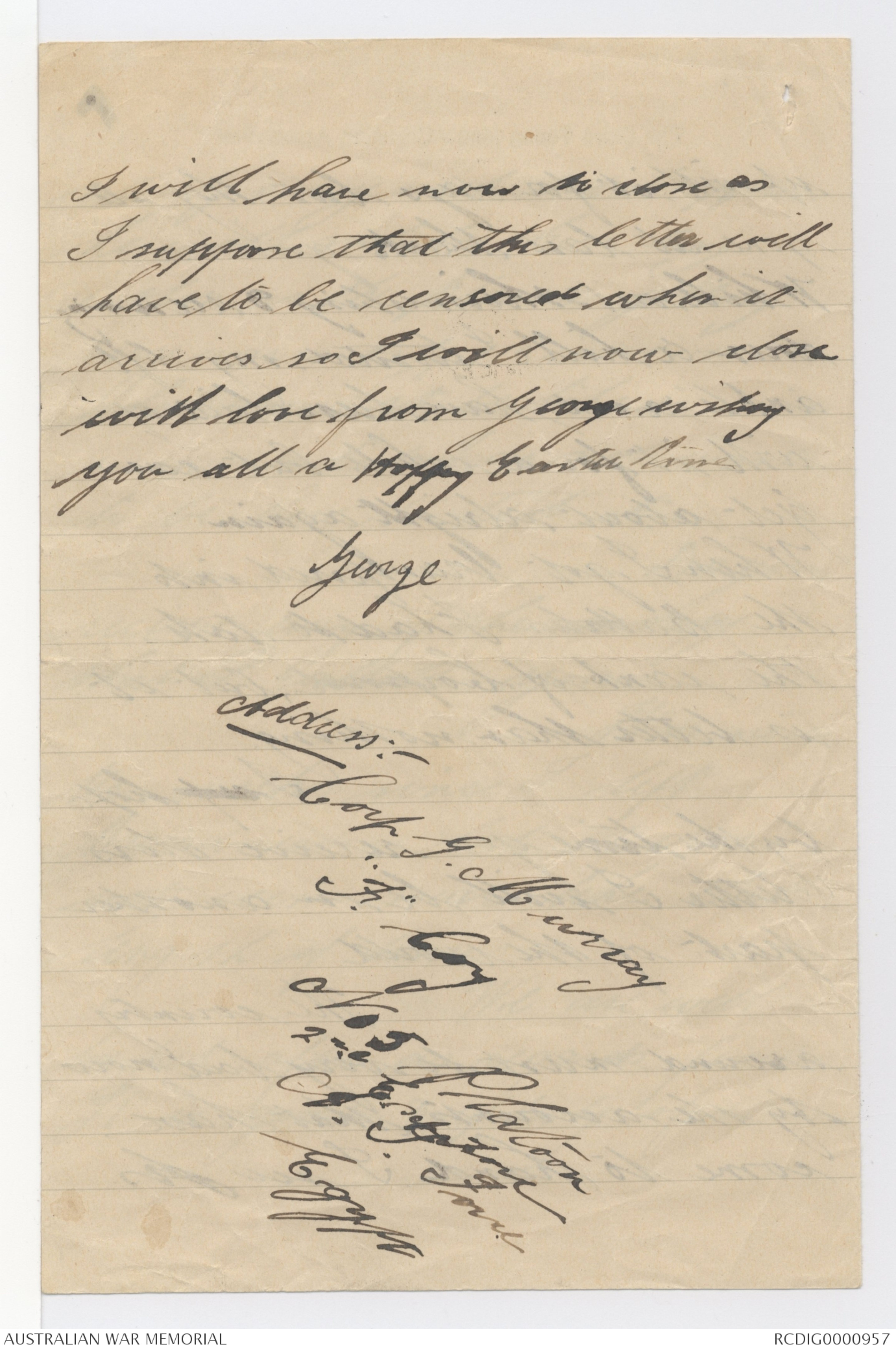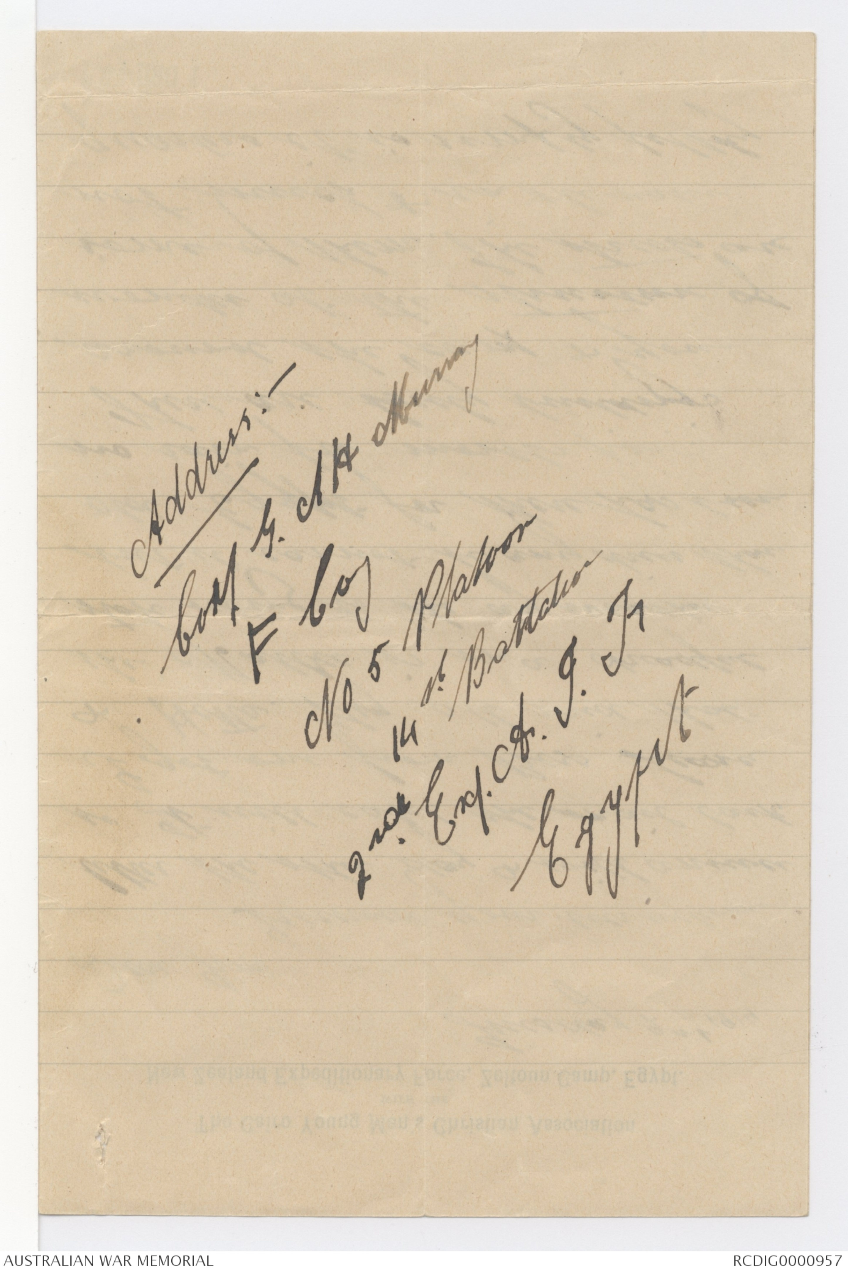 Letters from George Alexander Hugh Murray to his family, 1915 - Part 1