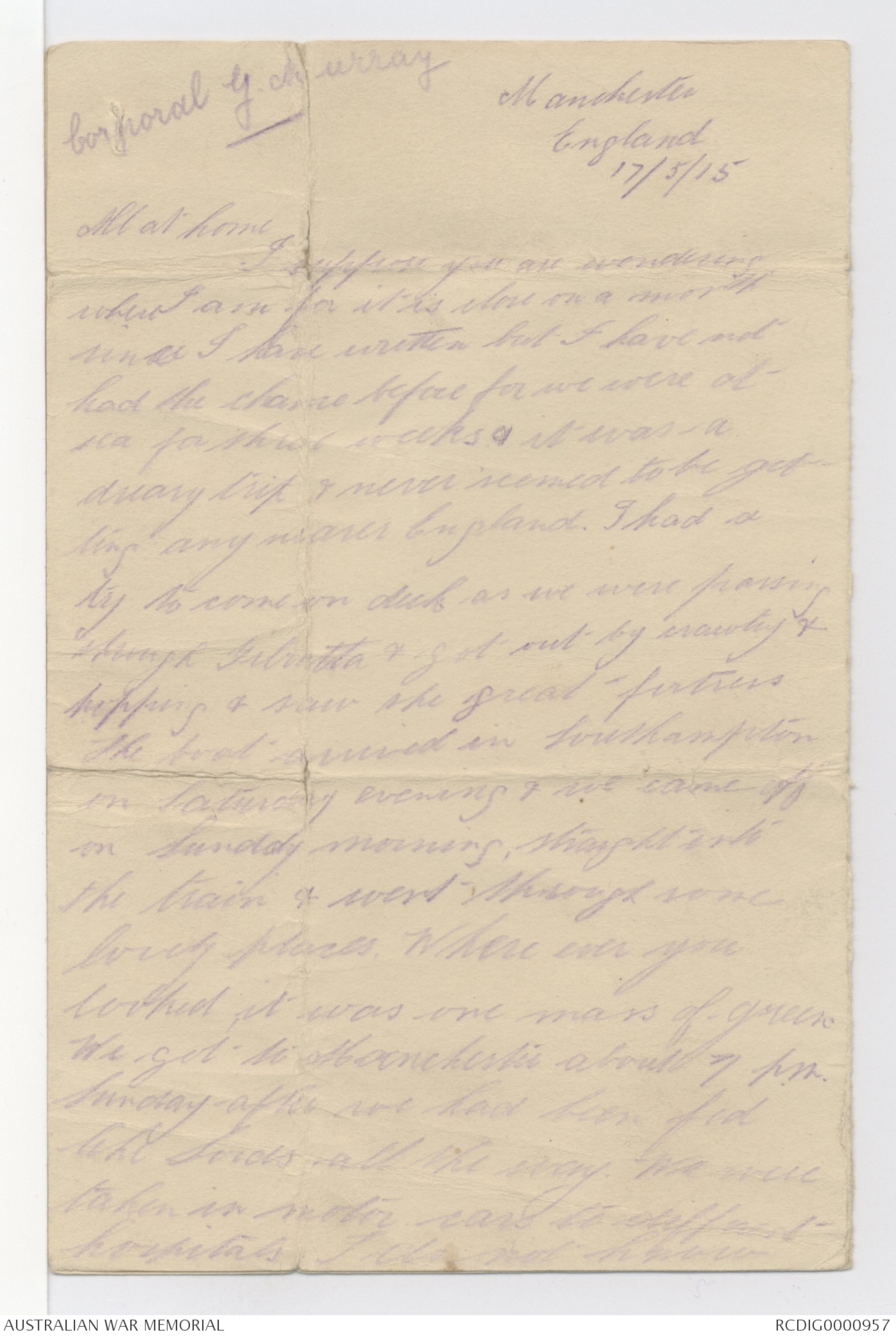 Letters from George Alexander Hugh Murray to his family, 1915 - Part 5