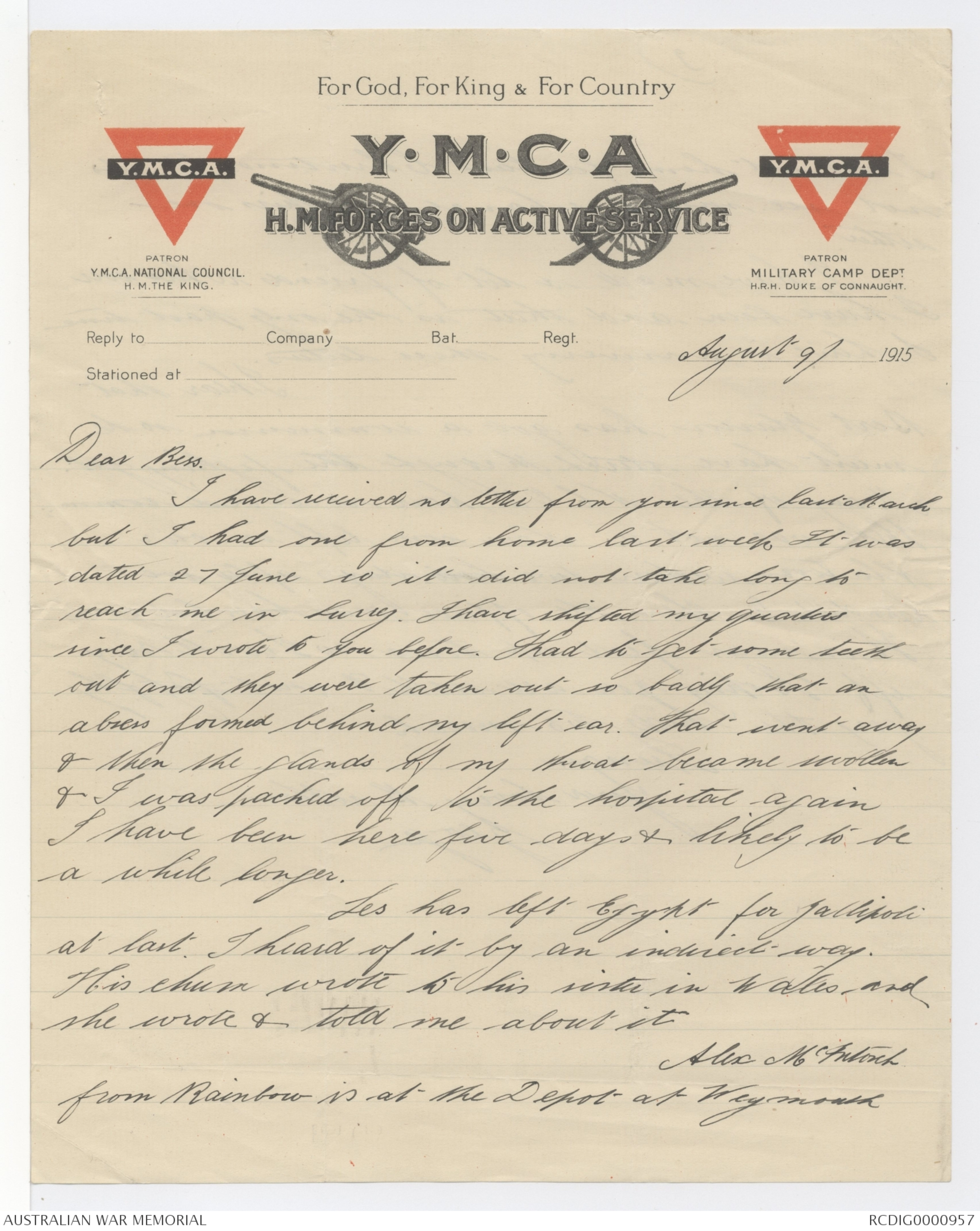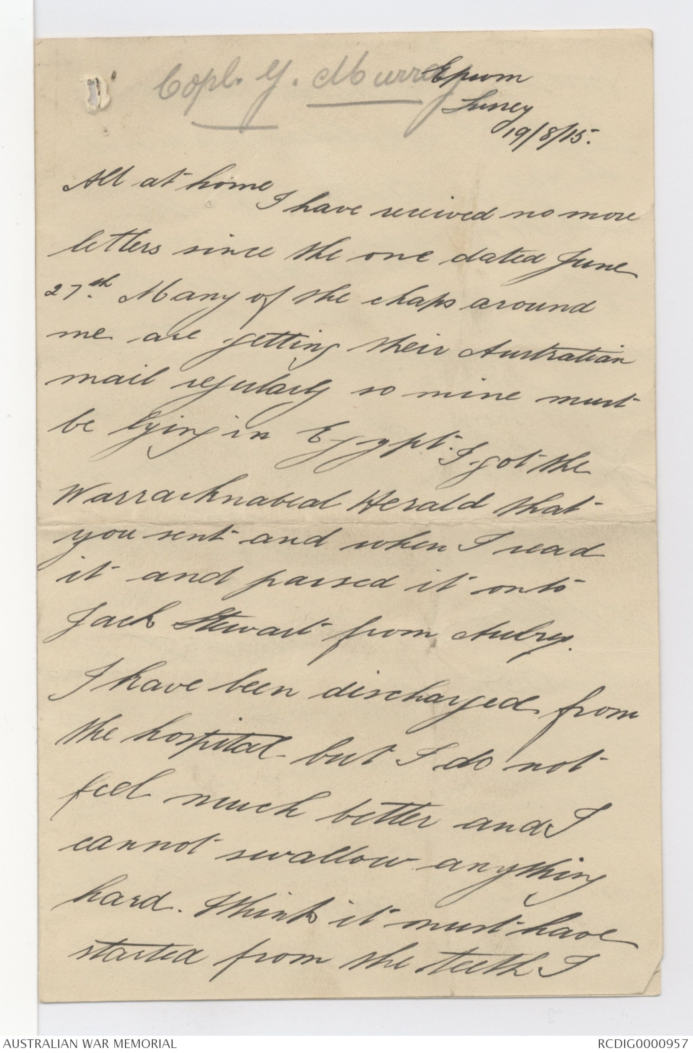 Letters from George Alexander Hugh Murray to his family, 1915 - Part 7