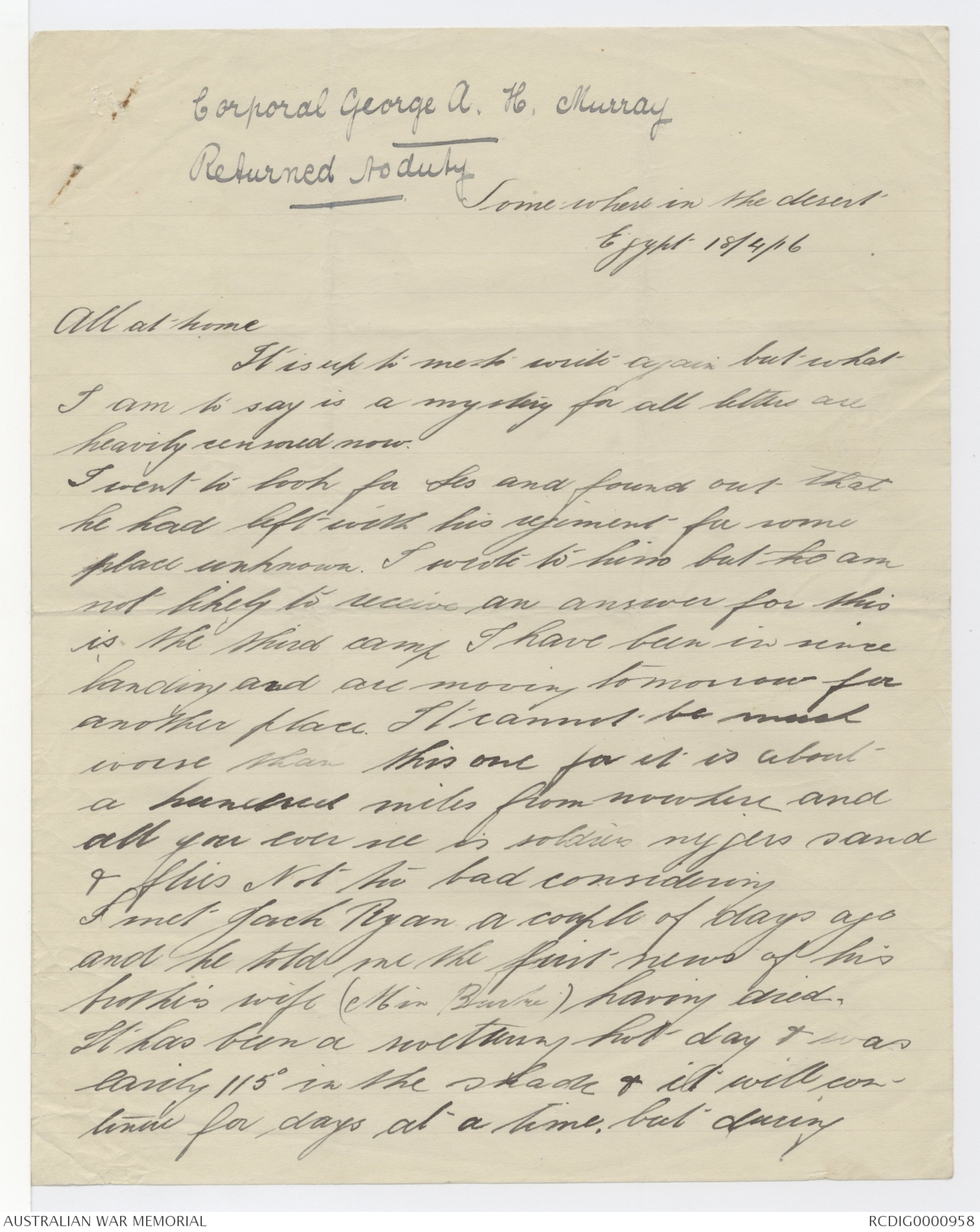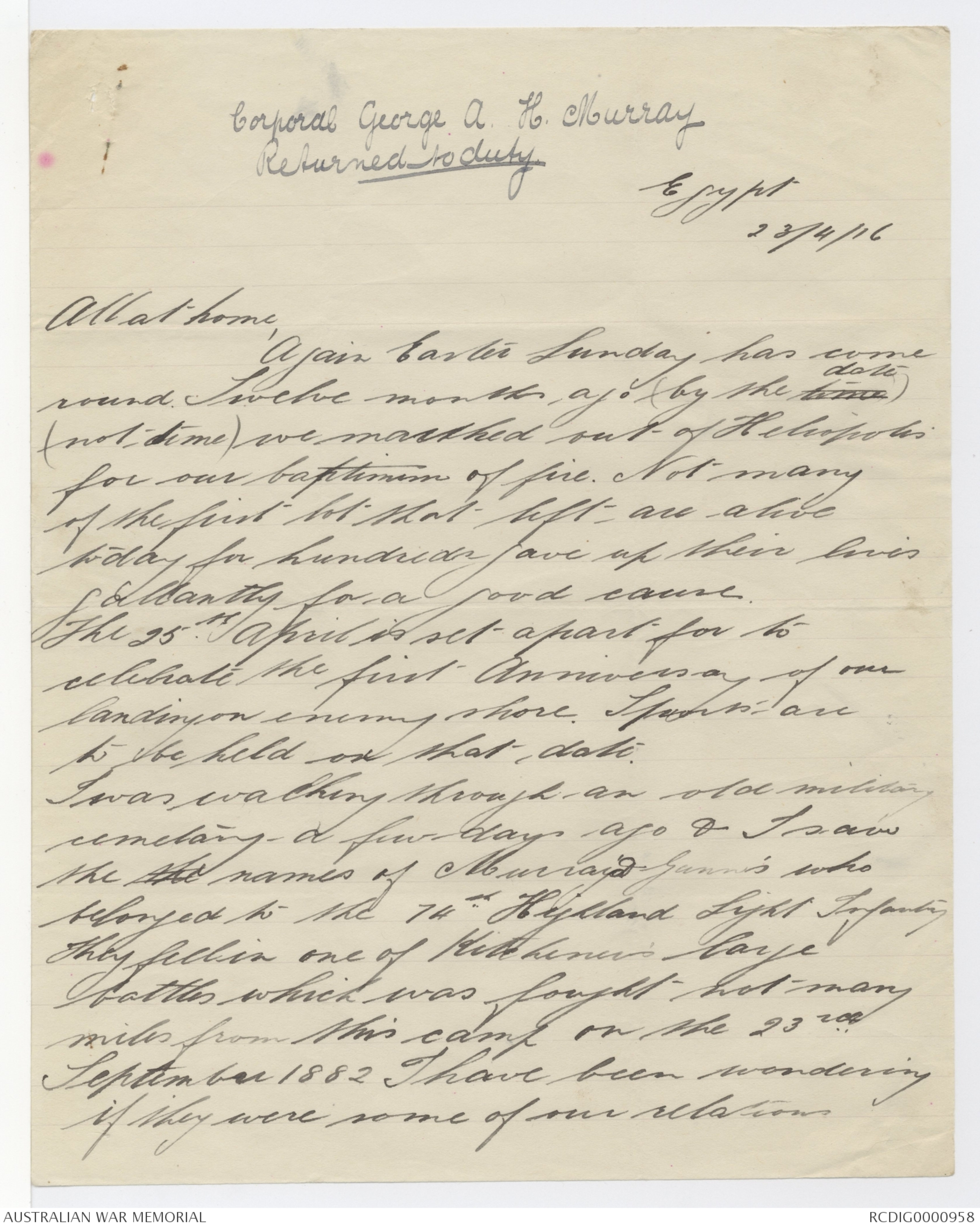 Letters from George Alexander Hugh Murray to his family, 1916 - Part 4