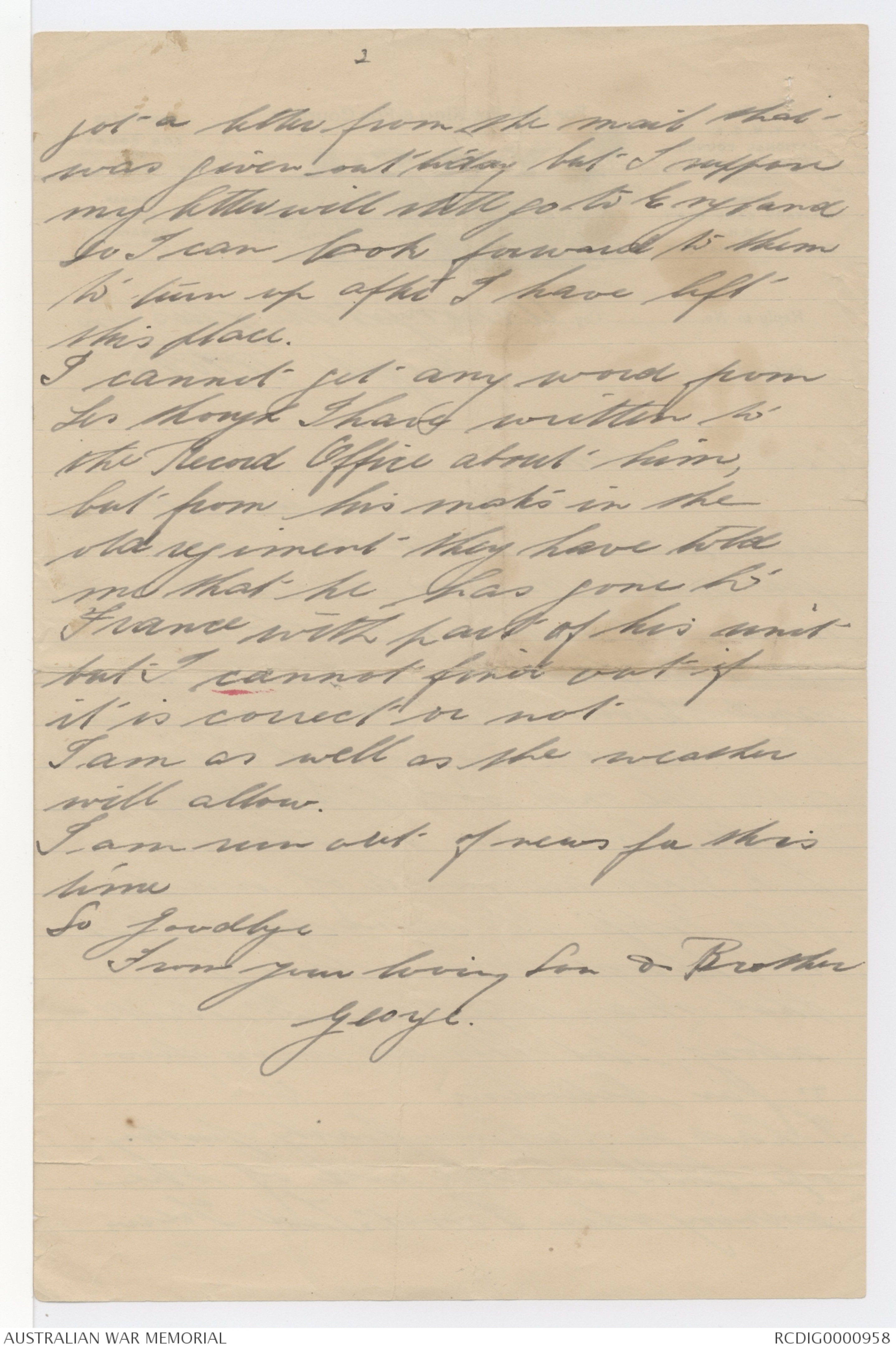 Letters from George Alexander Hugh Murray to his family, 1916 - Part 5