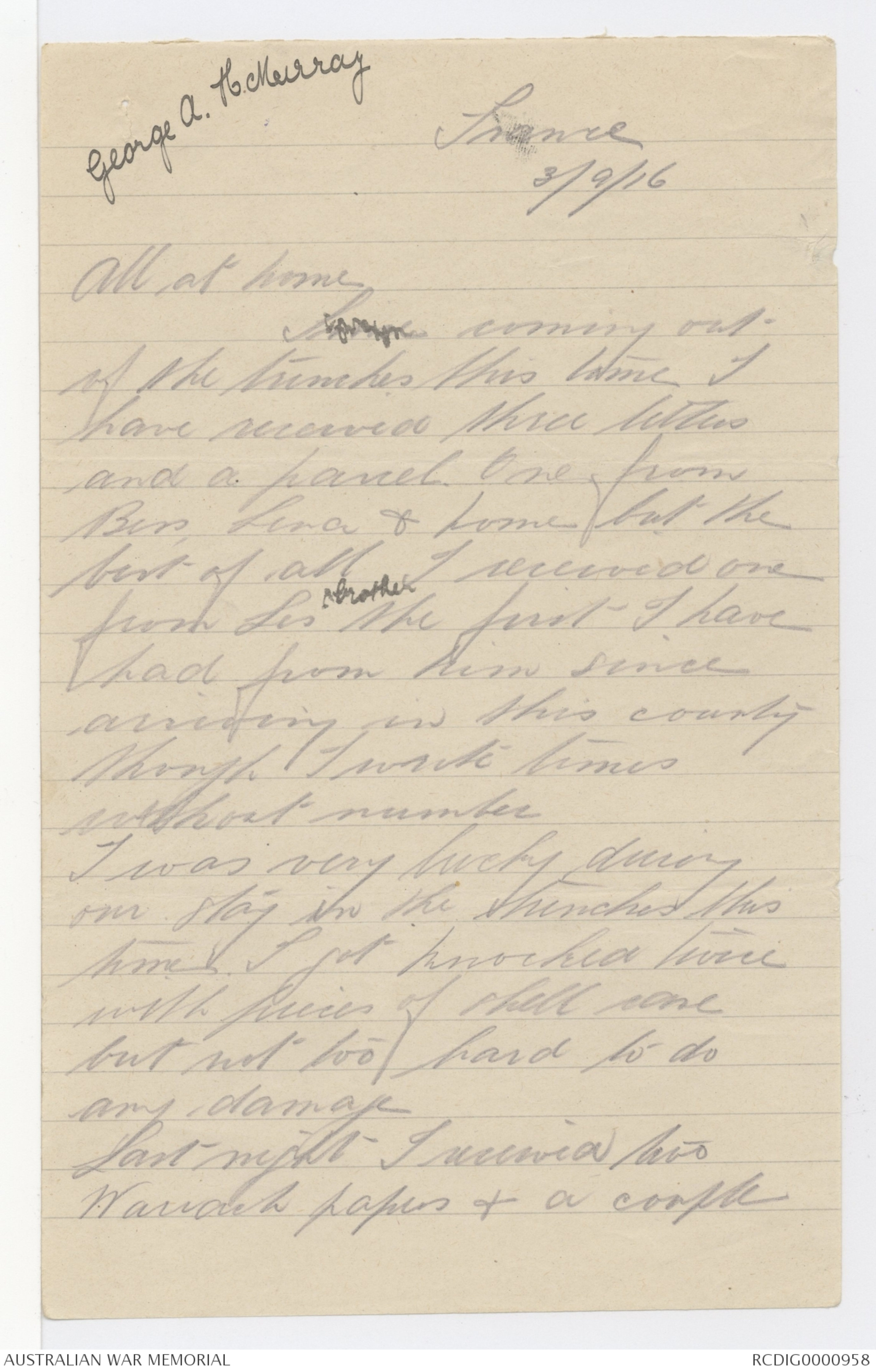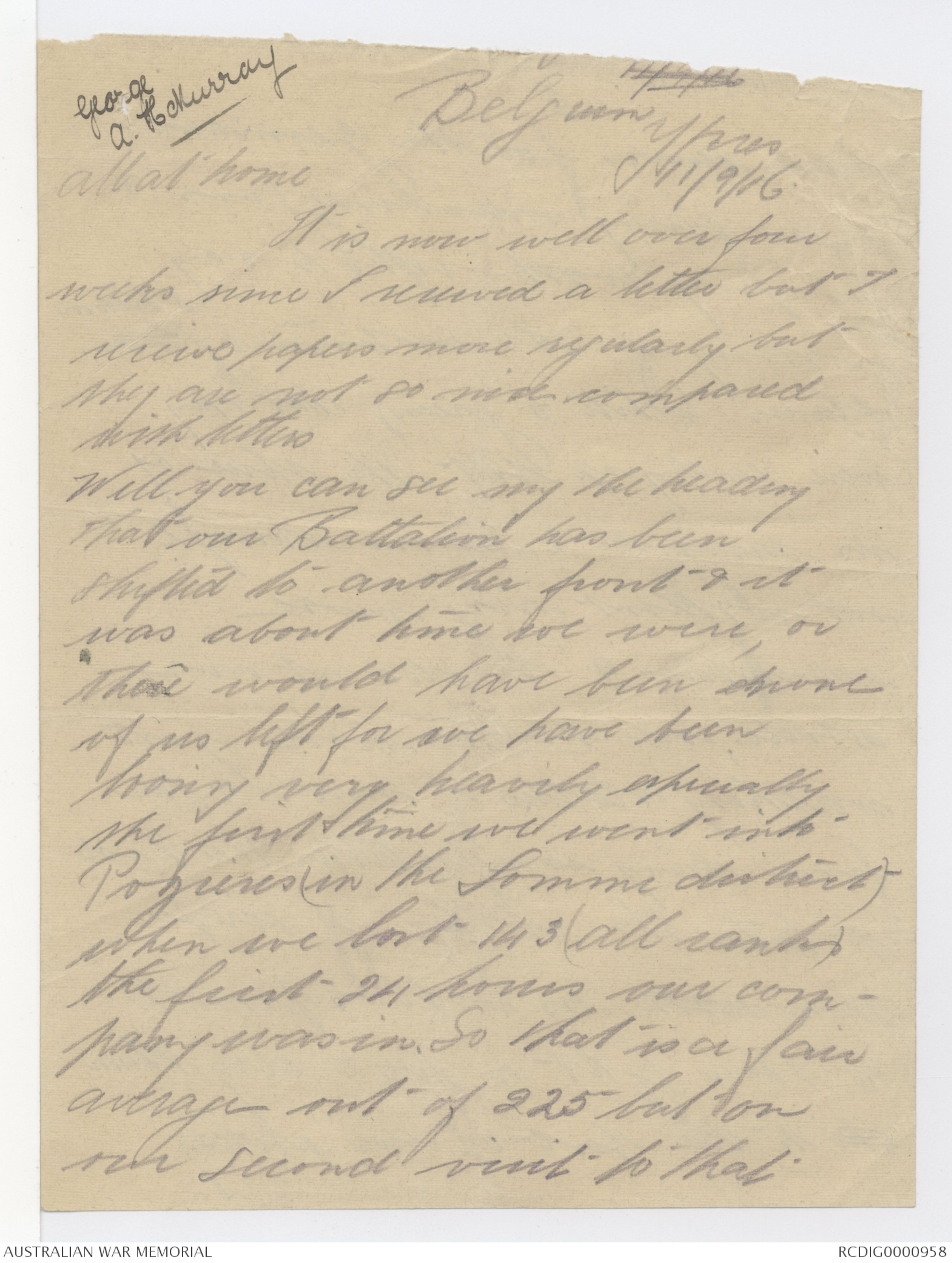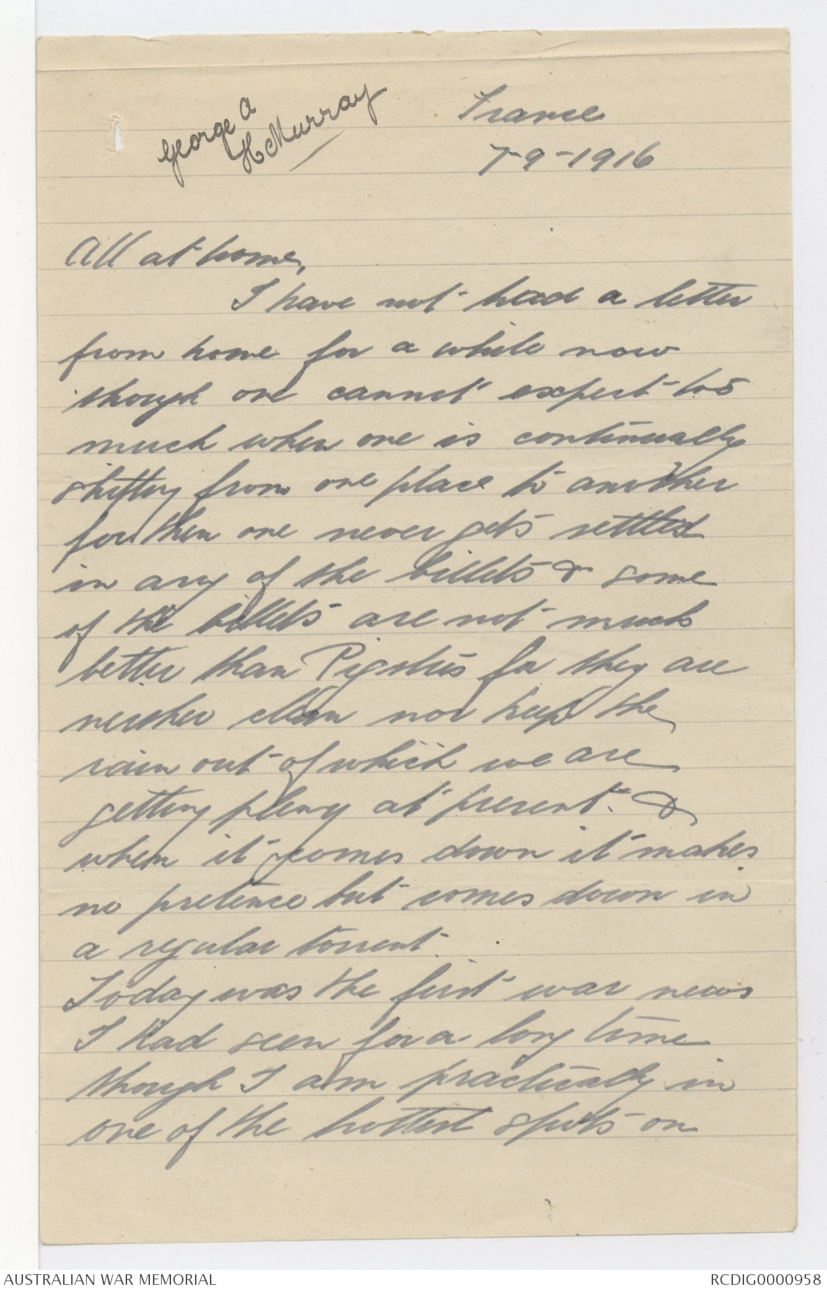 Letters from George Alexander Hugh Murray to his family, 1916 - Part 7