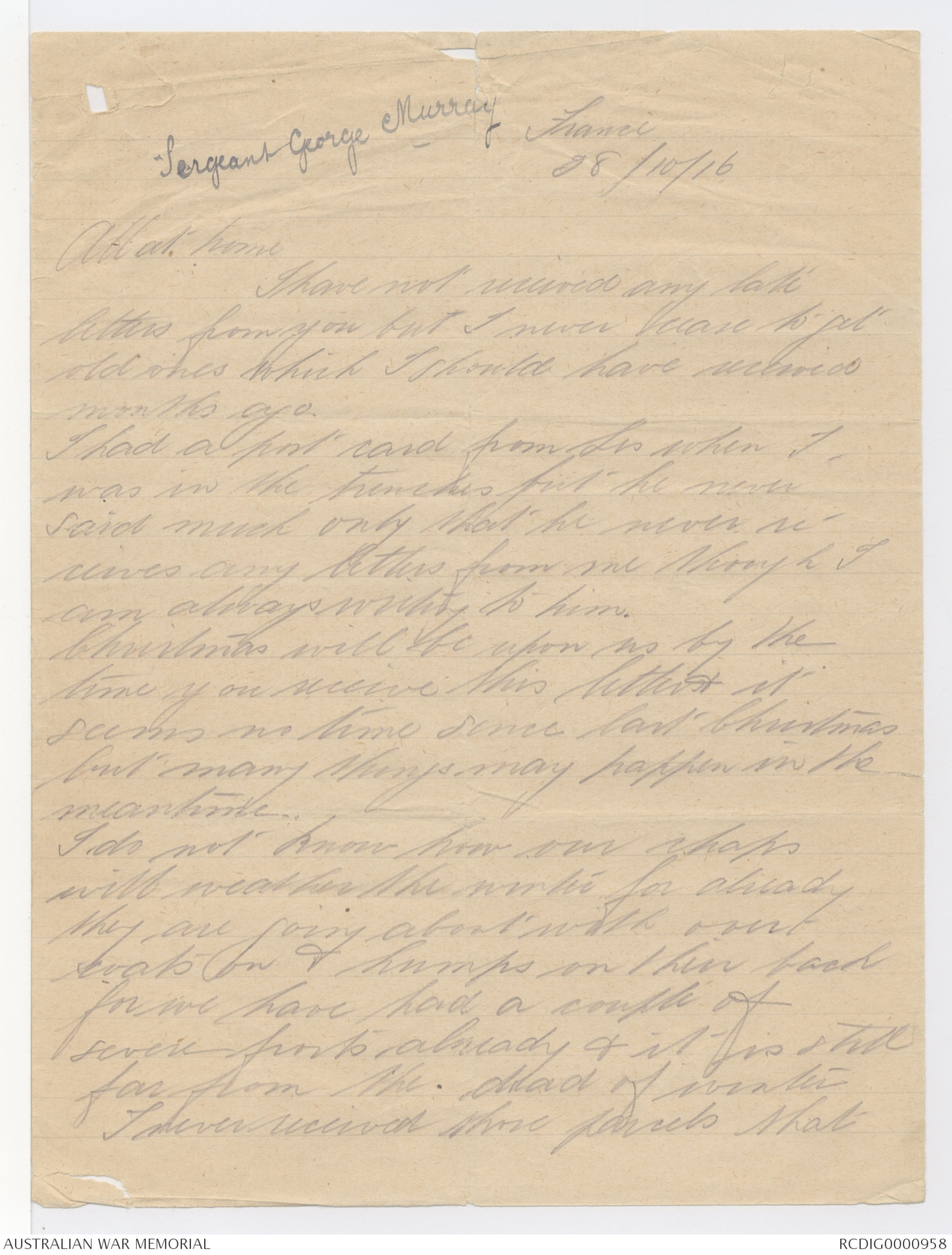 Letters from George Alexander Hugh Murray to his family, 1916 - Part 9