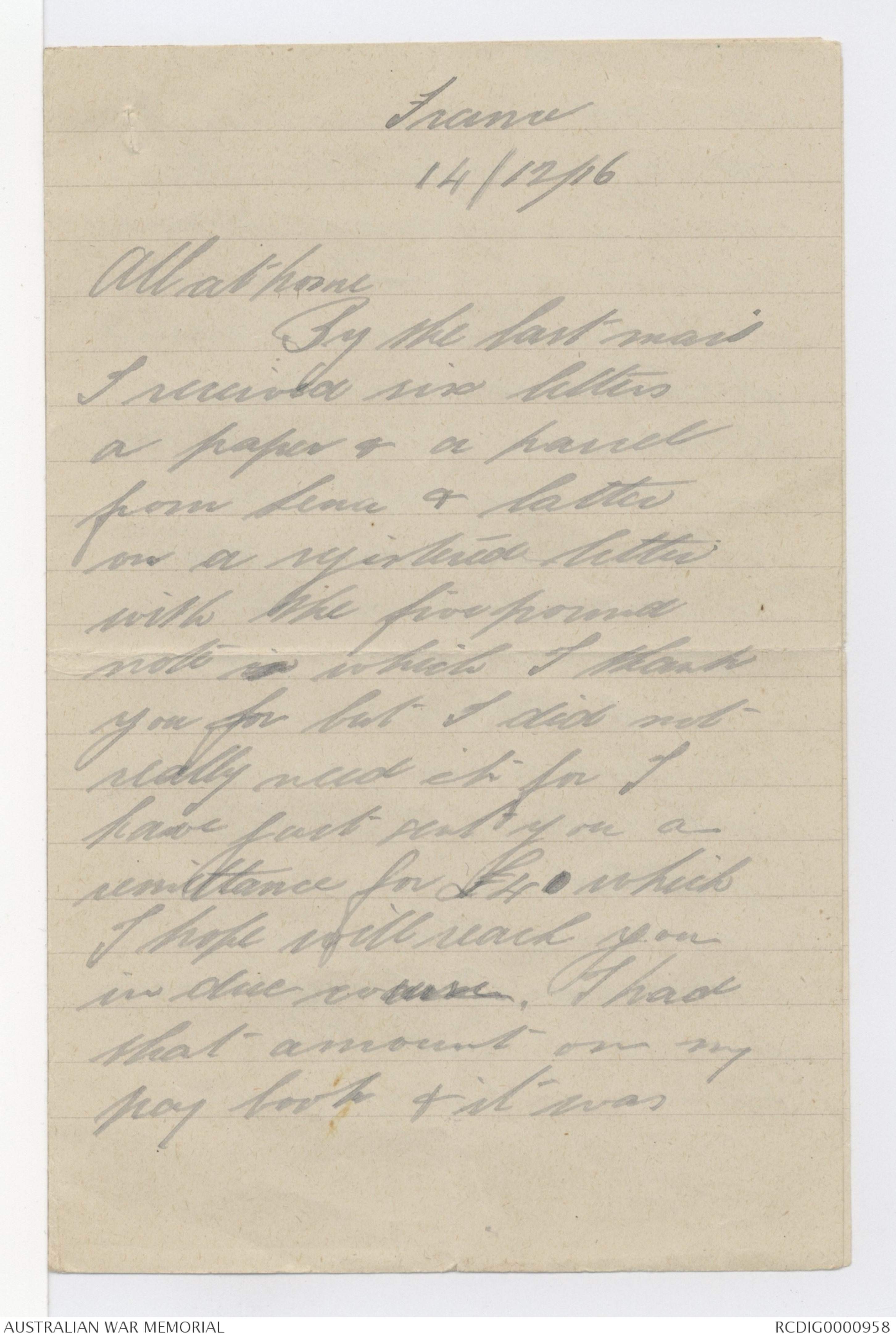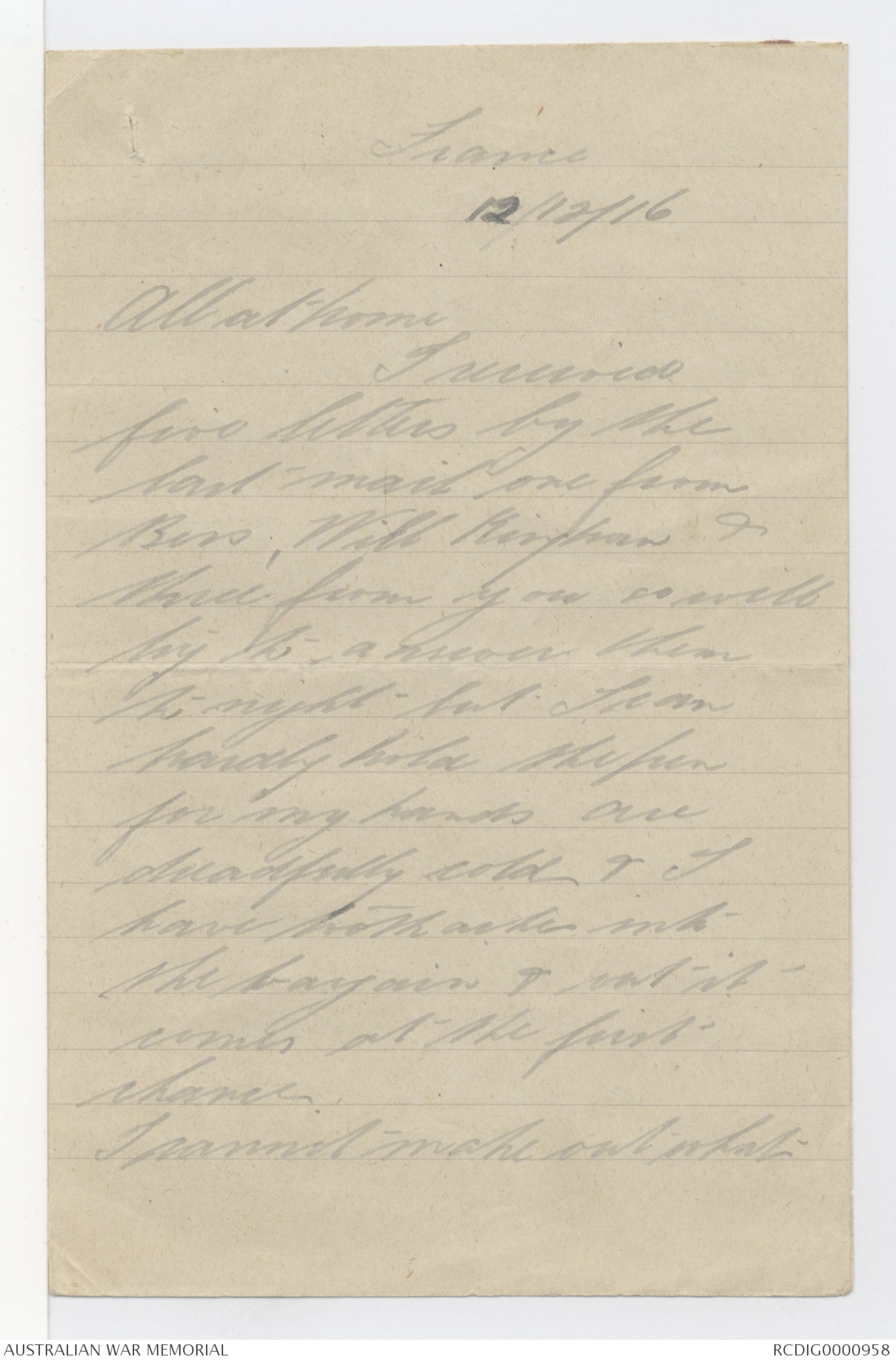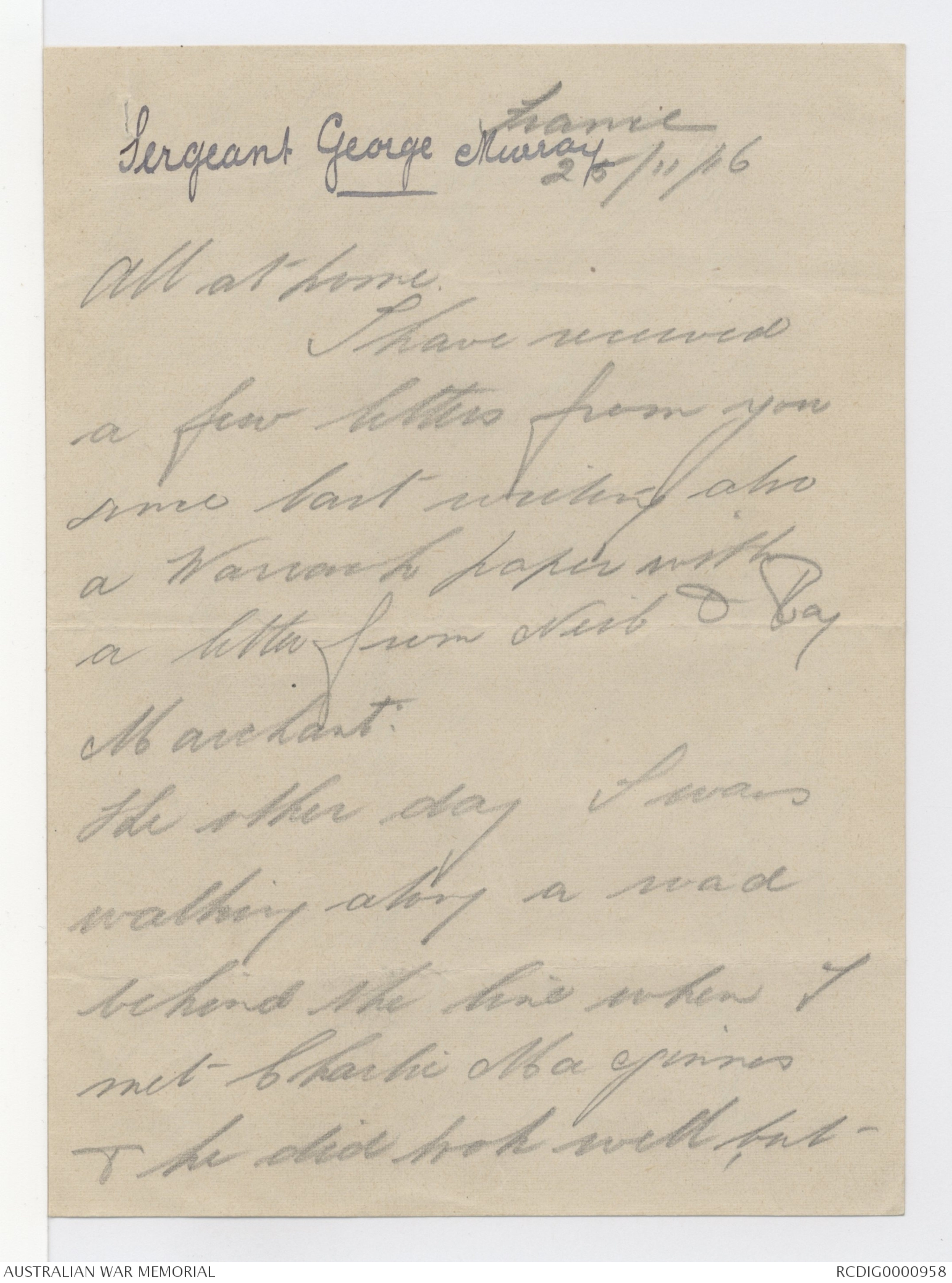 Letters from George Alexander Hugh Murray to his family, 1916 - Part 11