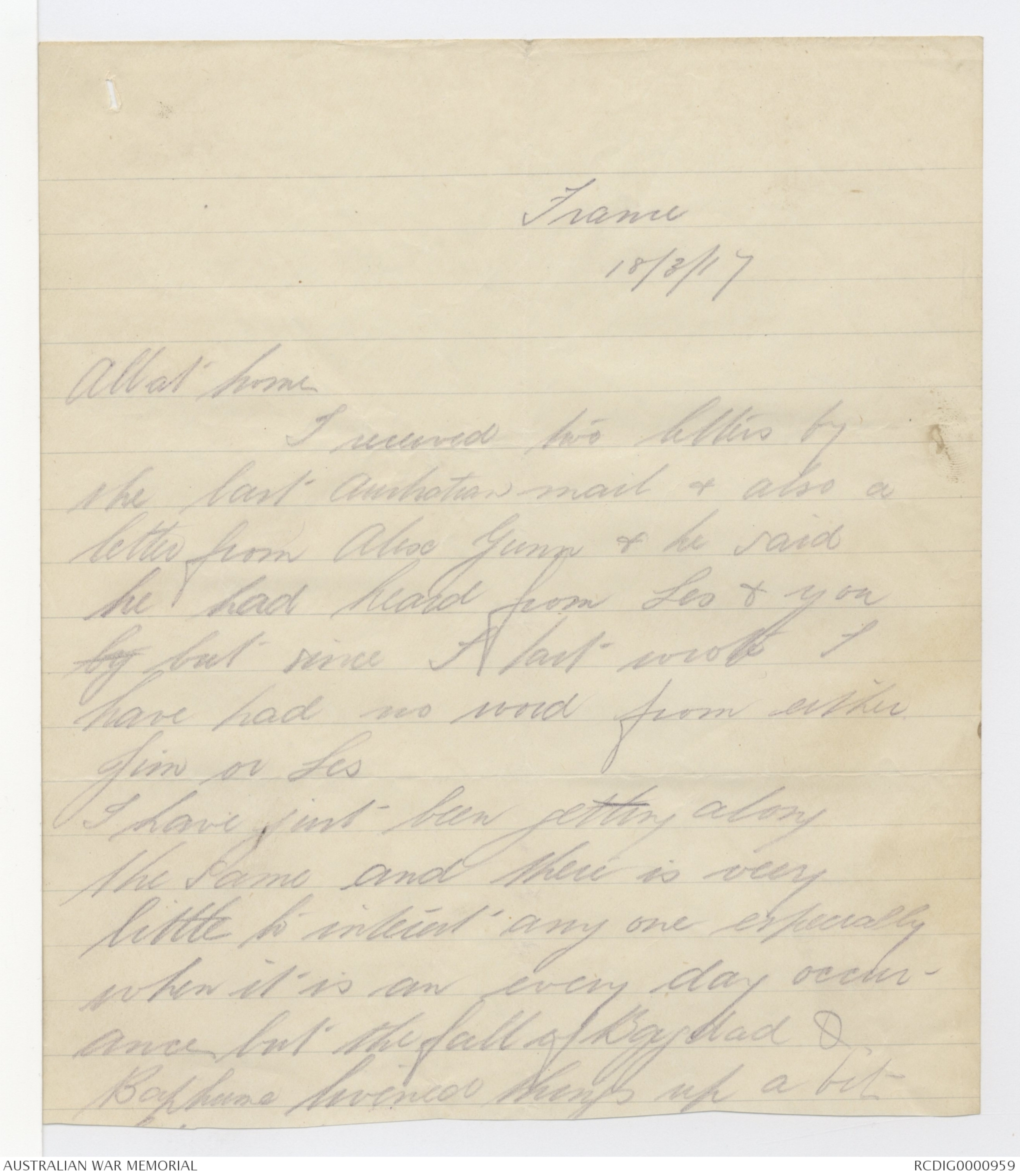 Letters from George Alexander Hugh Murray to his family, 1917 - Part 3