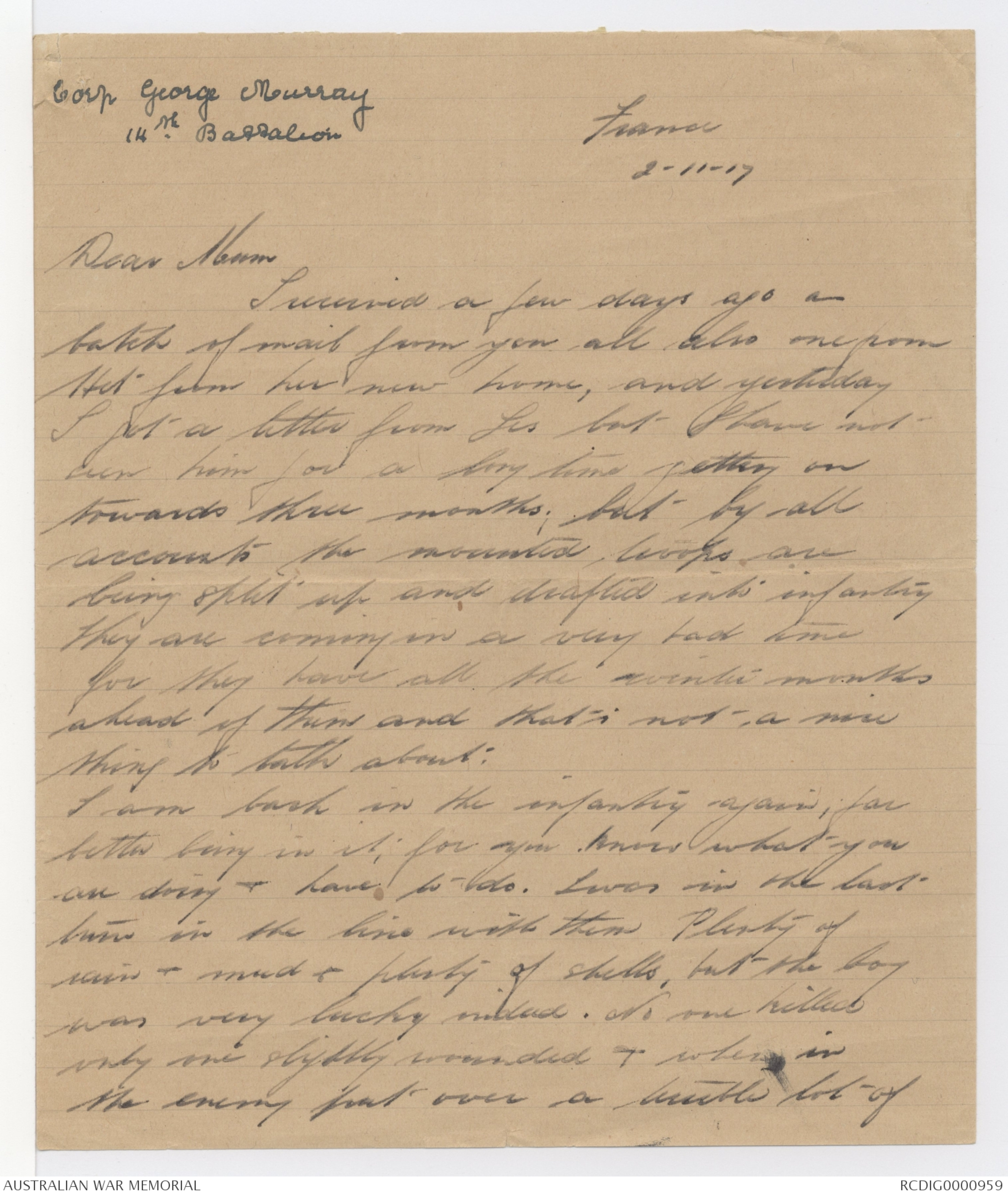 Letters from George Alexander Hugh Murray to his family, 1917 - Part 13