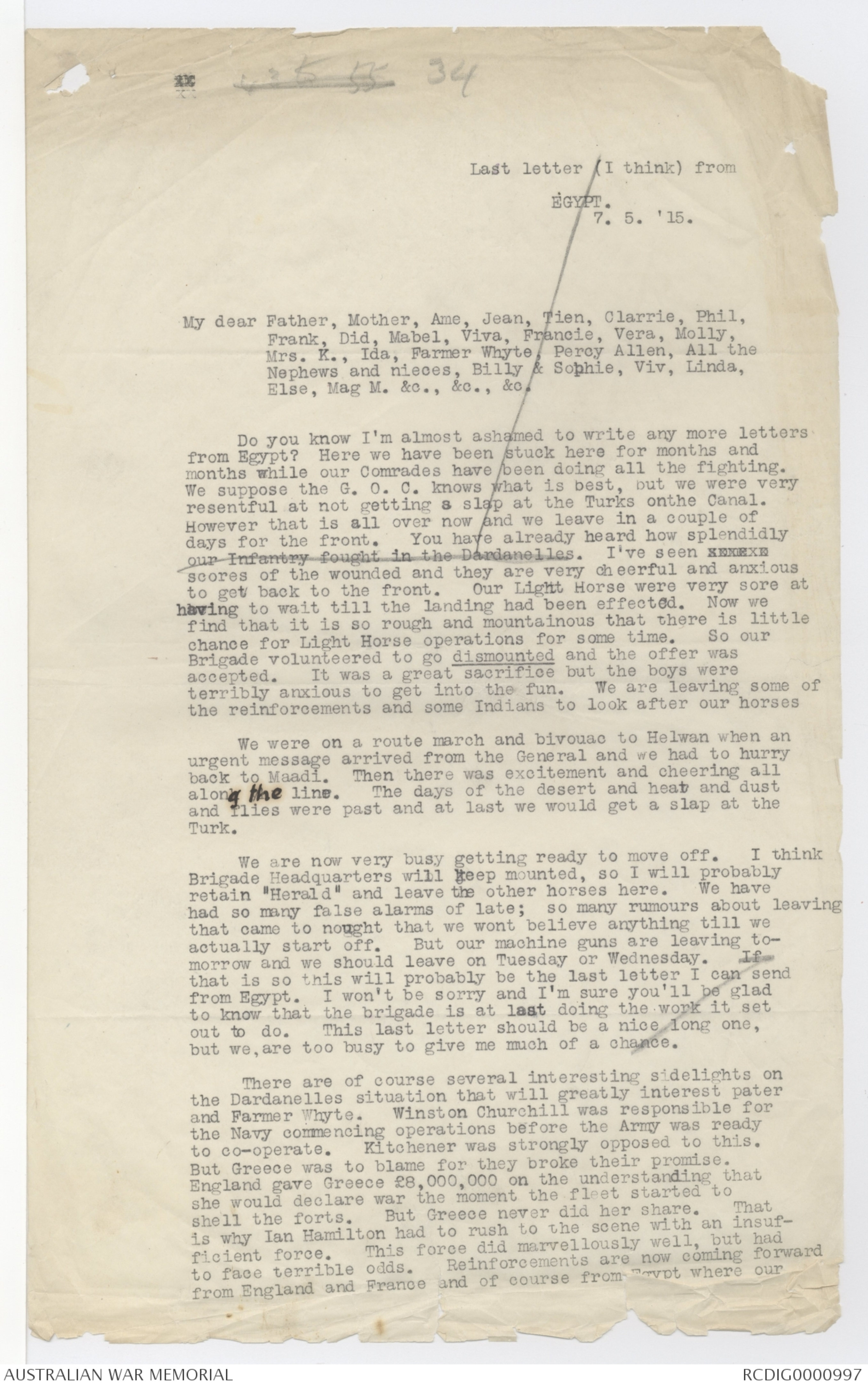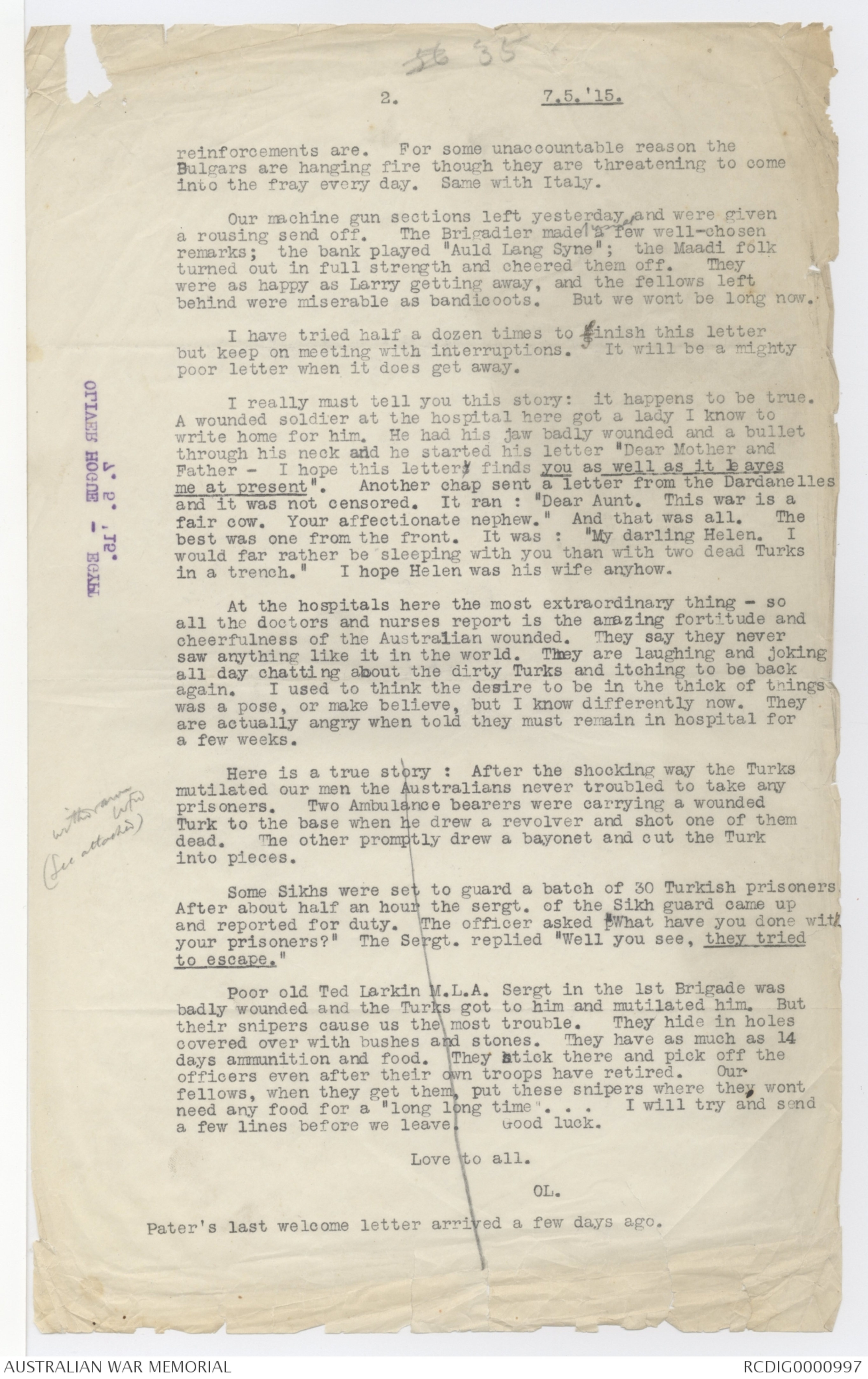 to tell the Casualties. Best love to all the girls. Tell Percy