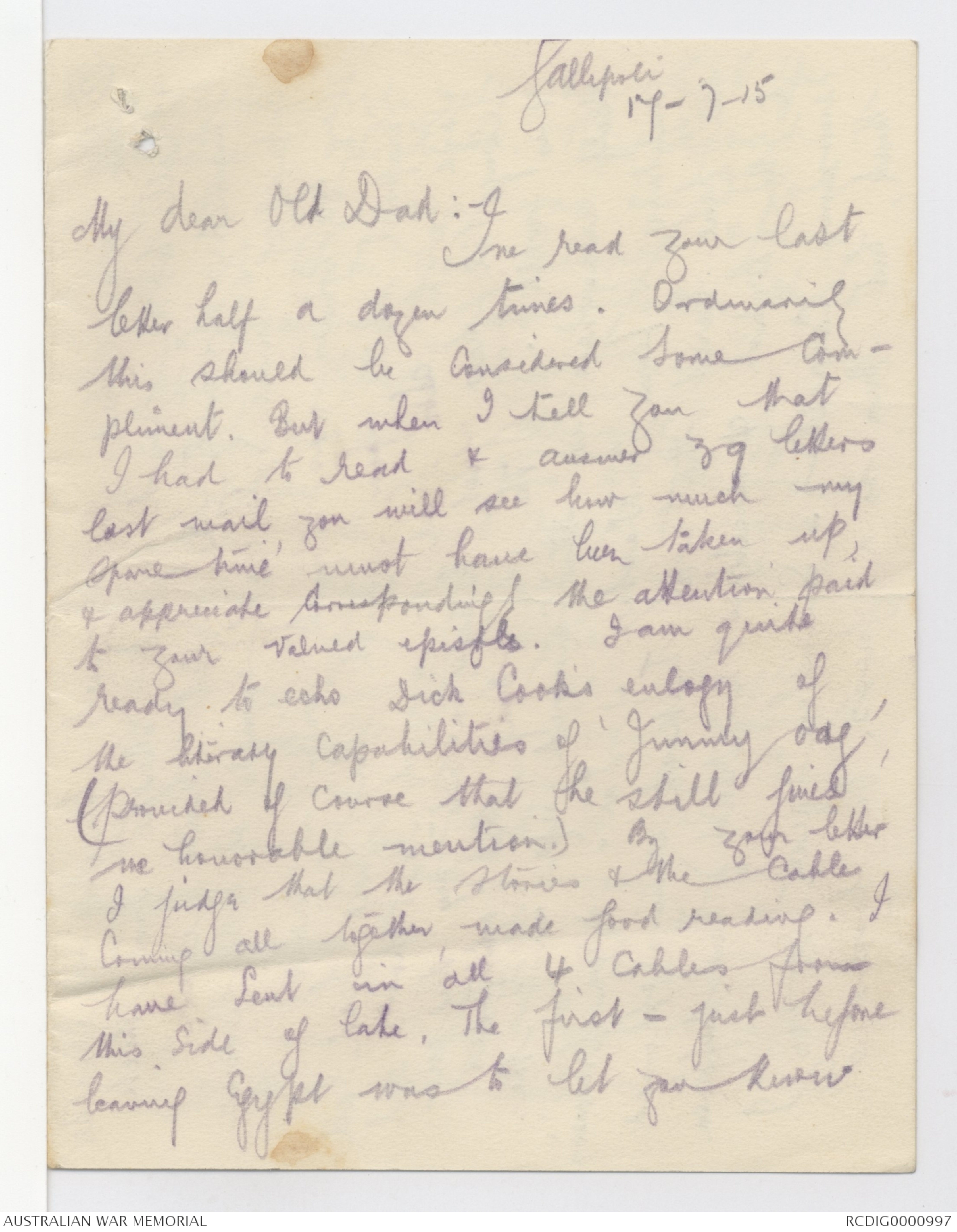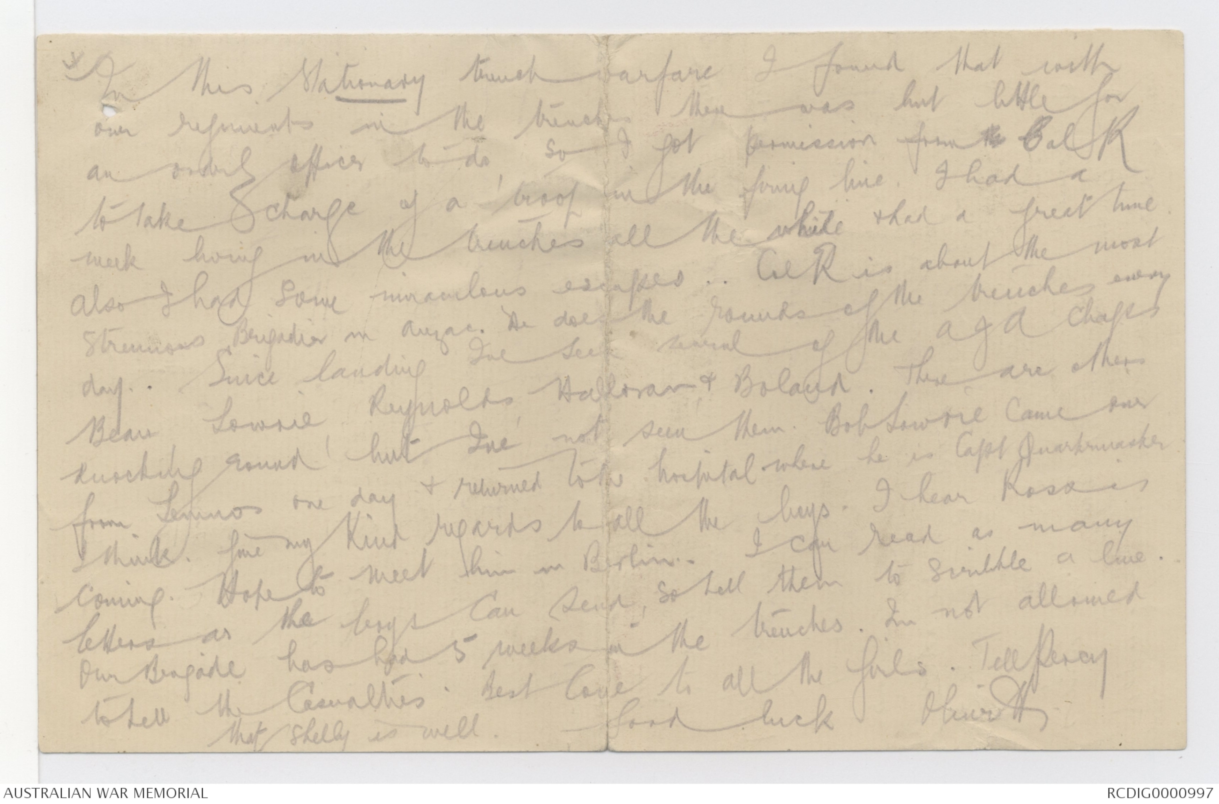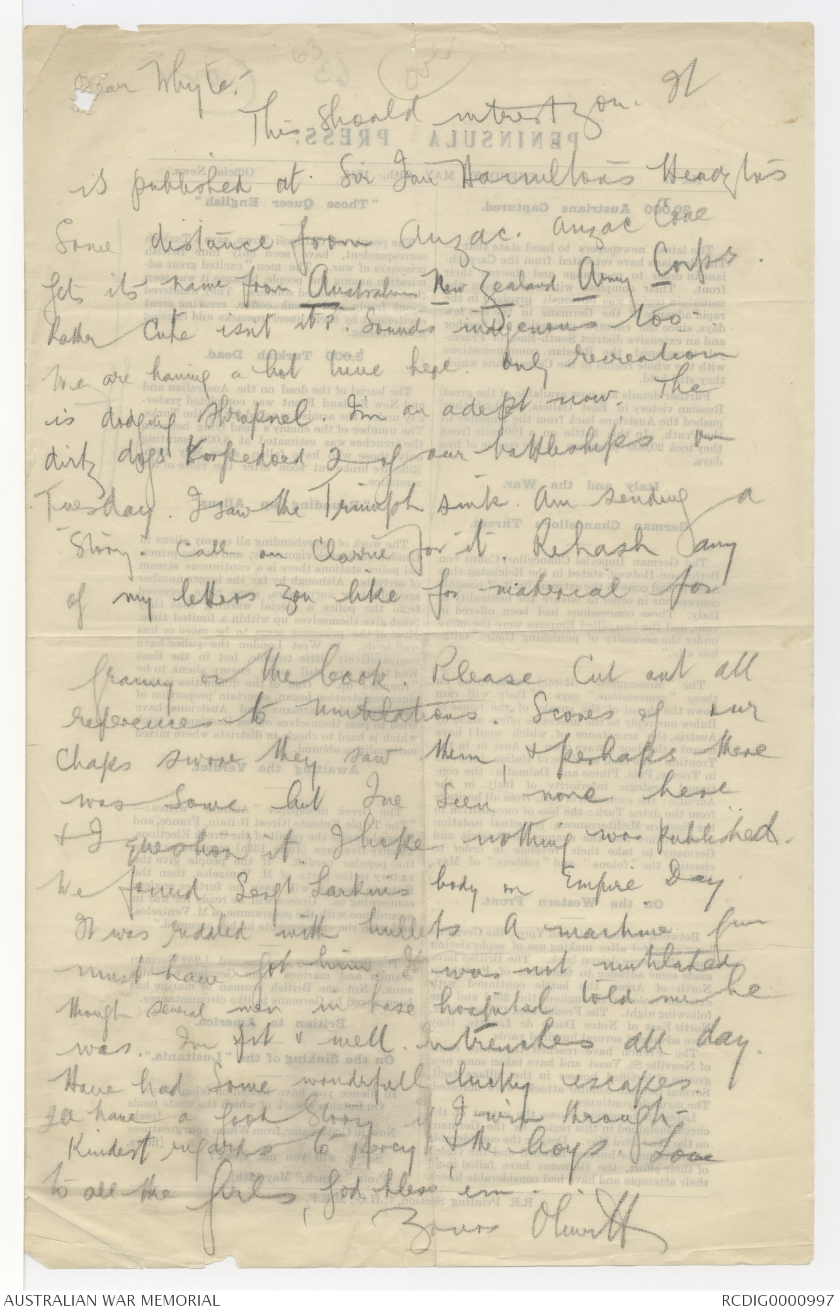 Letters relating to Oliver 'Trooper Bluegum' Hogue, 1915-1927 - Part 1