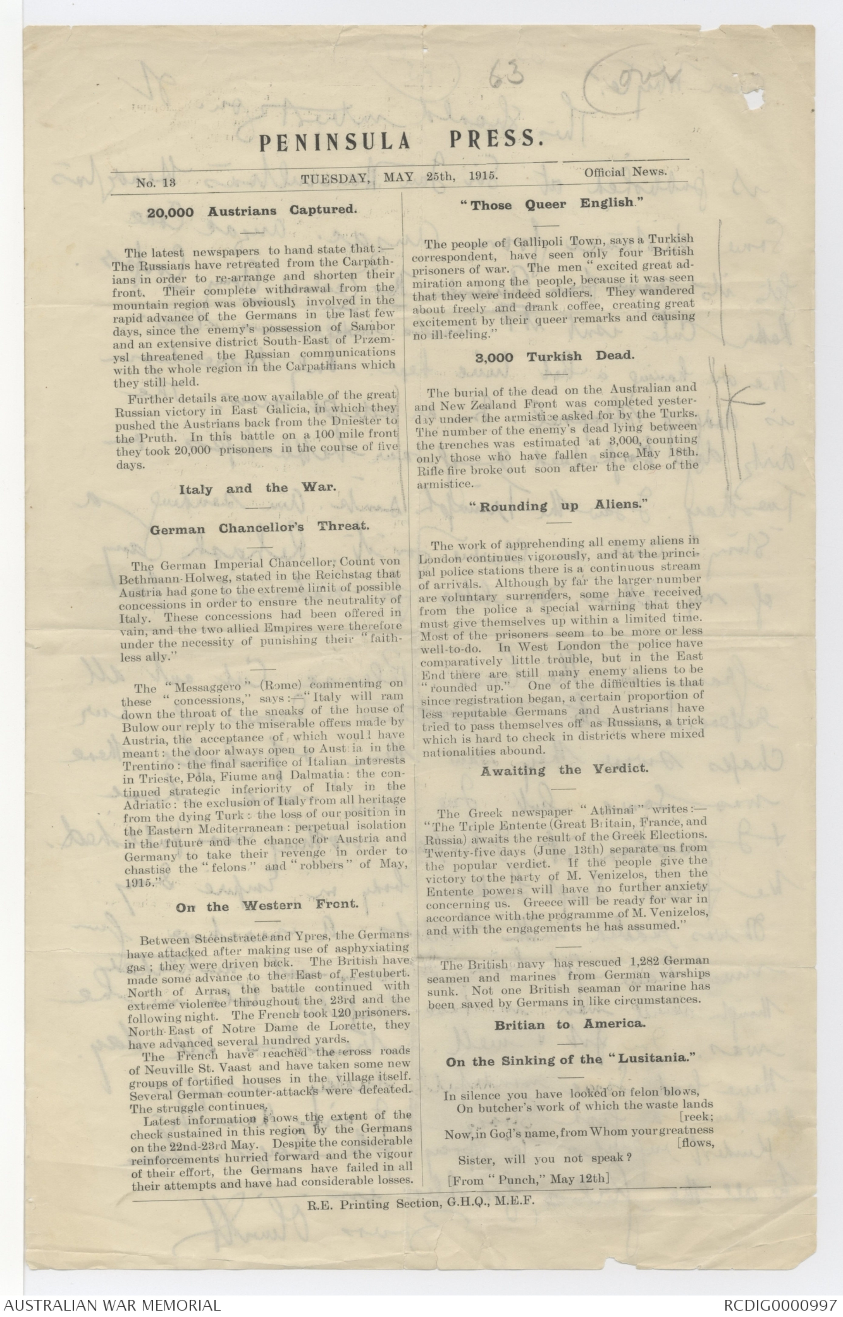 days for the front. You have already heard how splendidlyour Infantry fought In the Dardanelles. I've seen &nmx