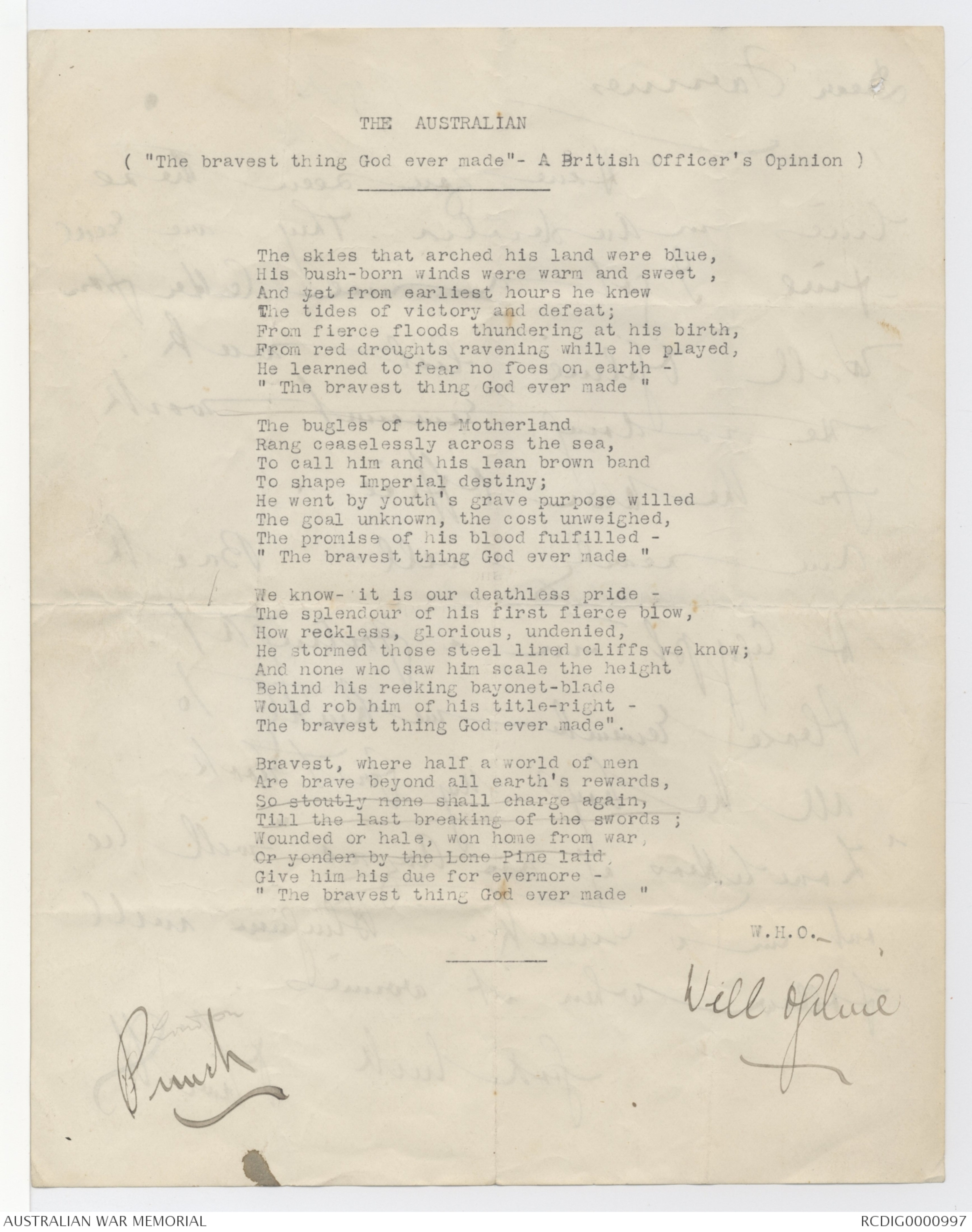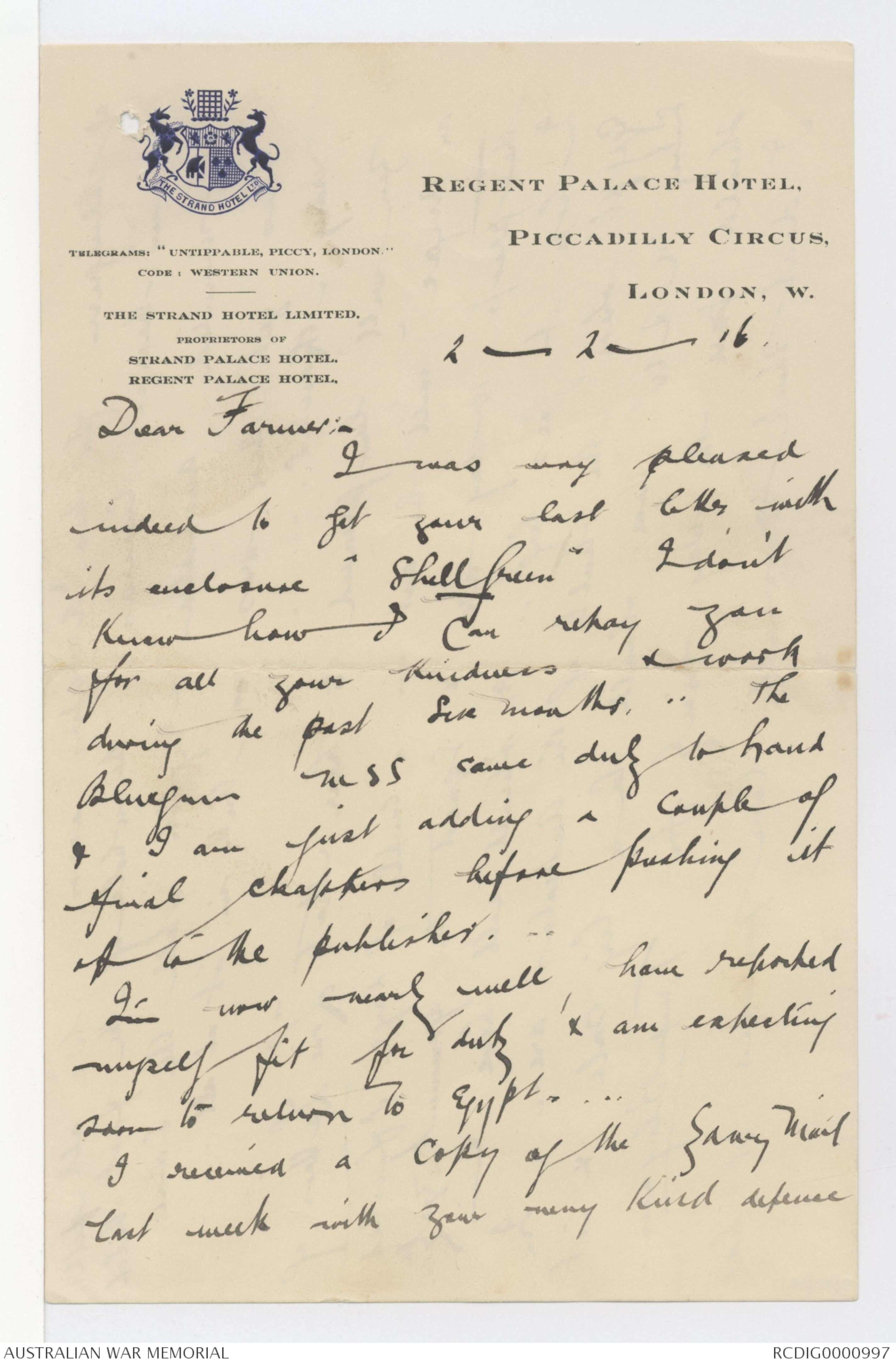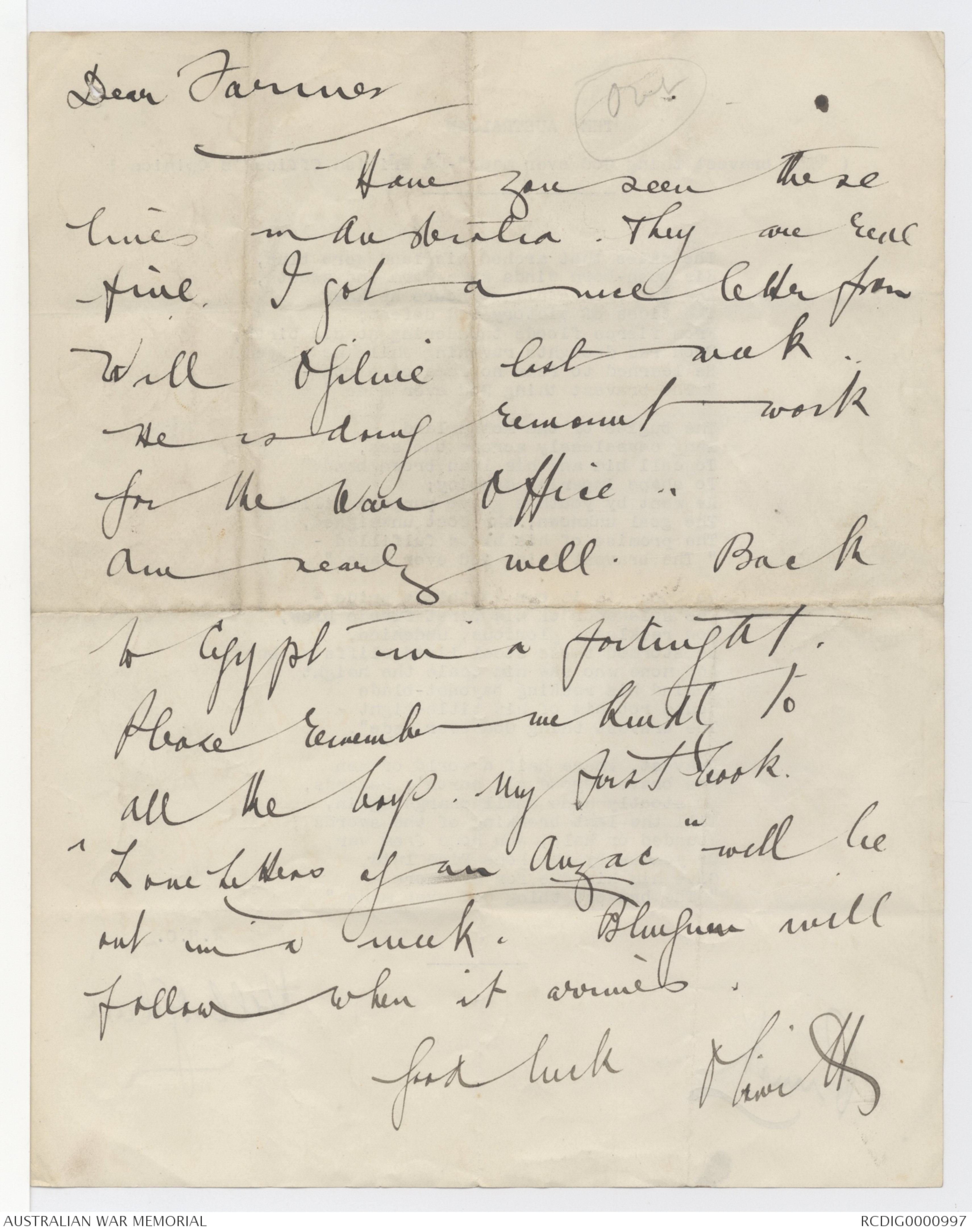 an Anzac" will be of days. I finished