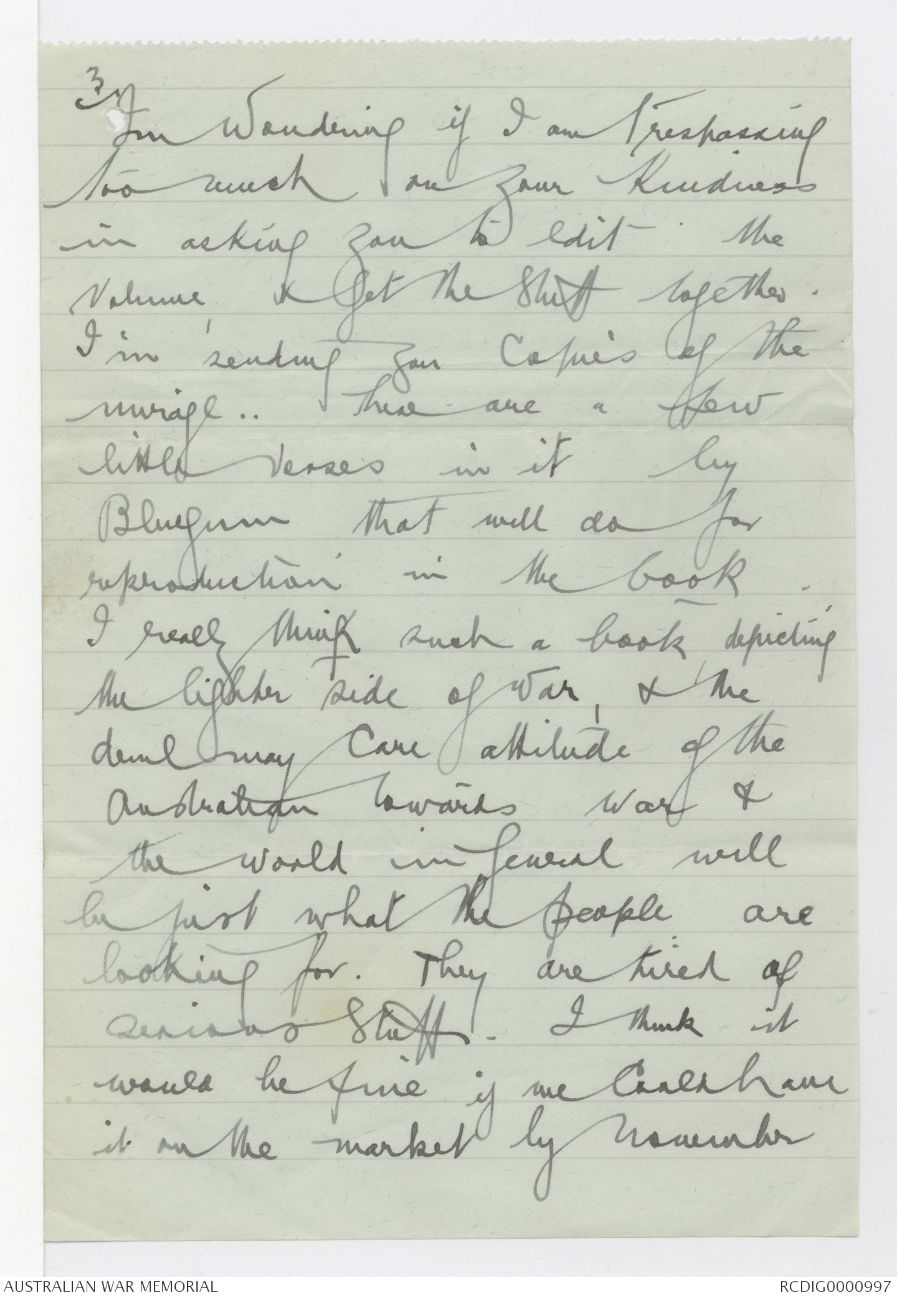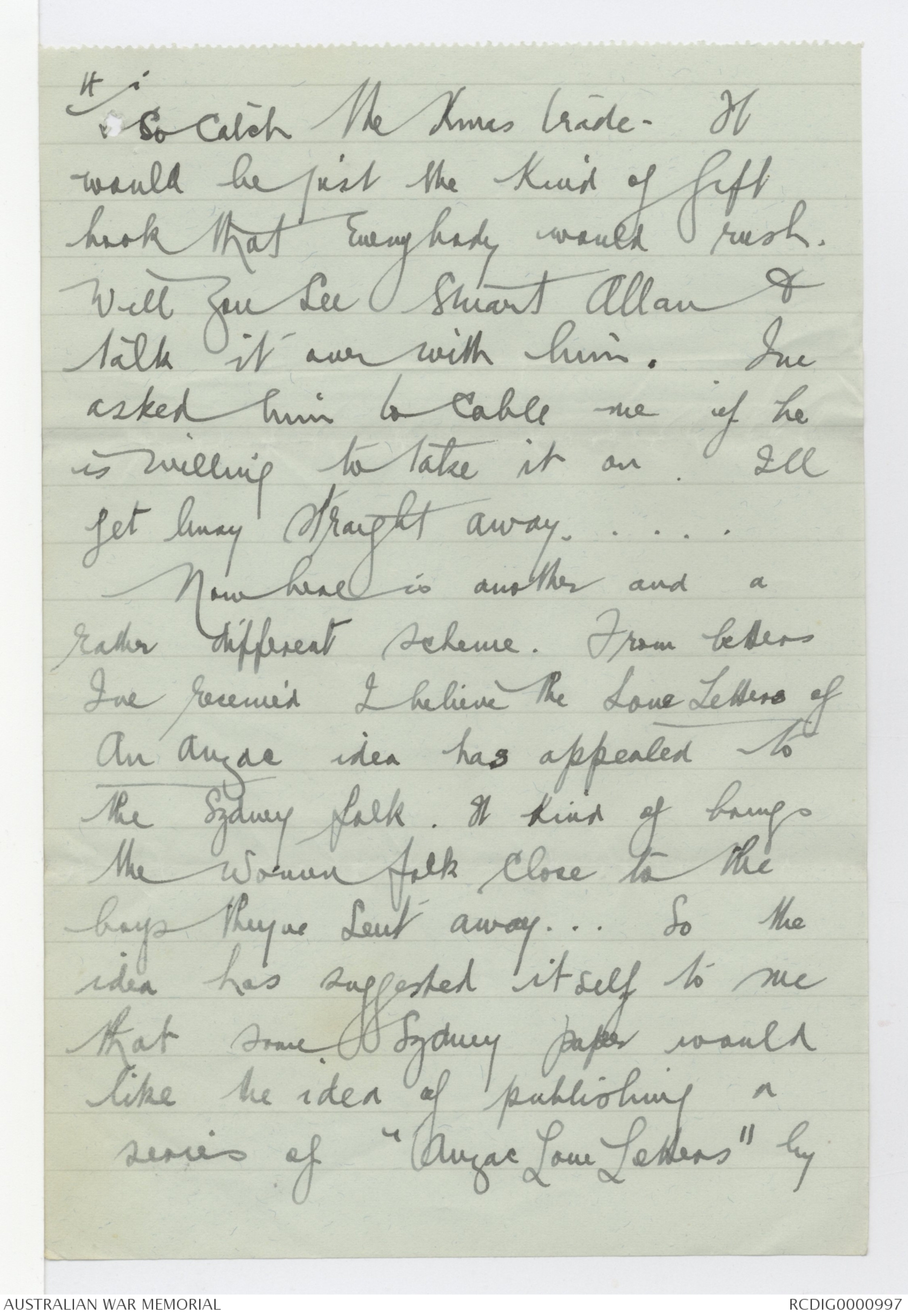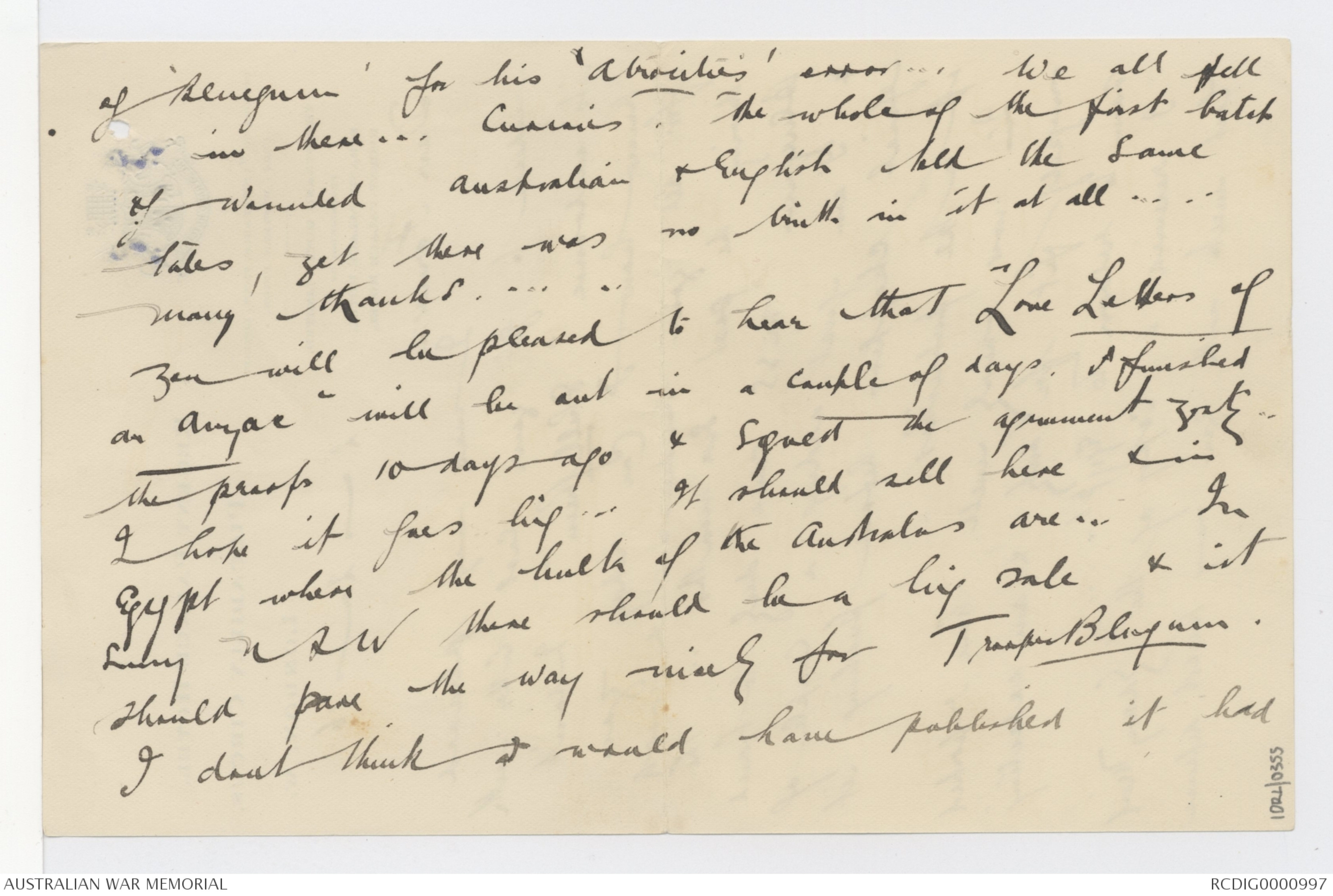 "Love letters of an Anzac" will be