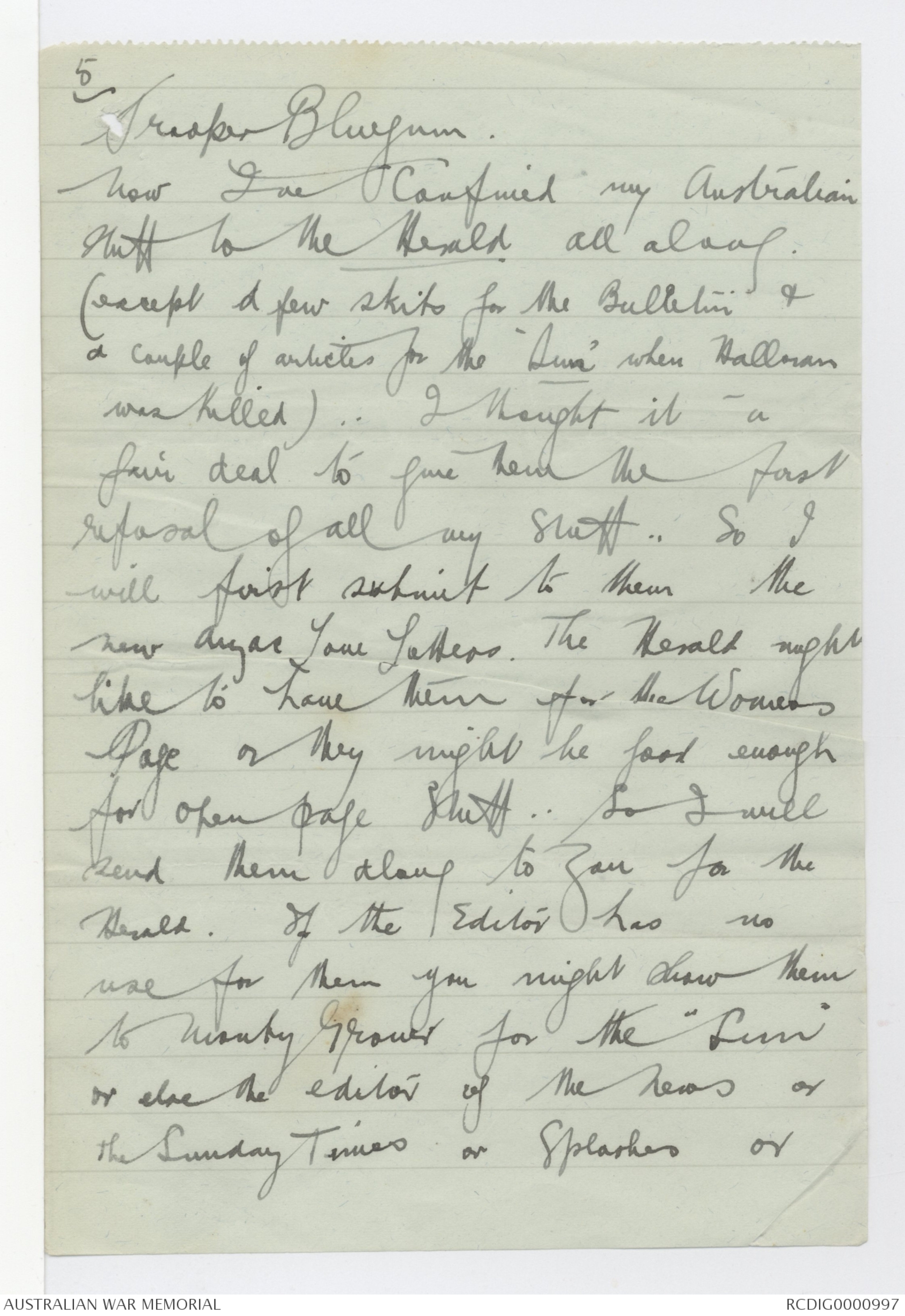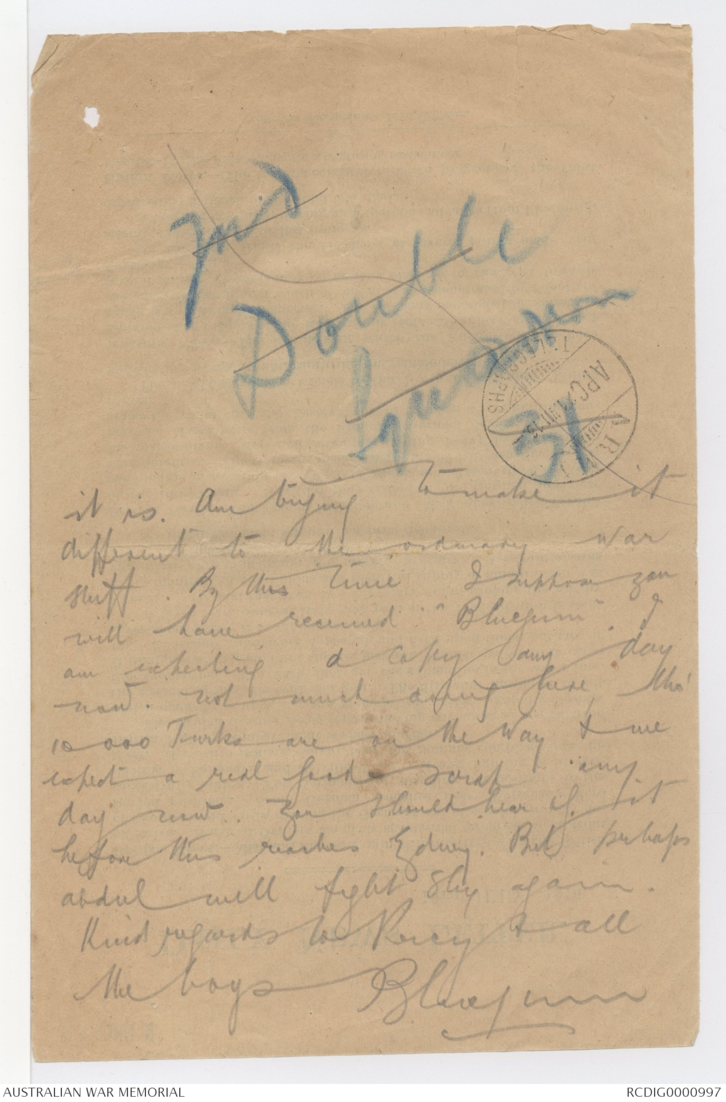 Letters relating to Oliver 'Trooper Bluegum' Hogue, 1915-1927 - Part 5