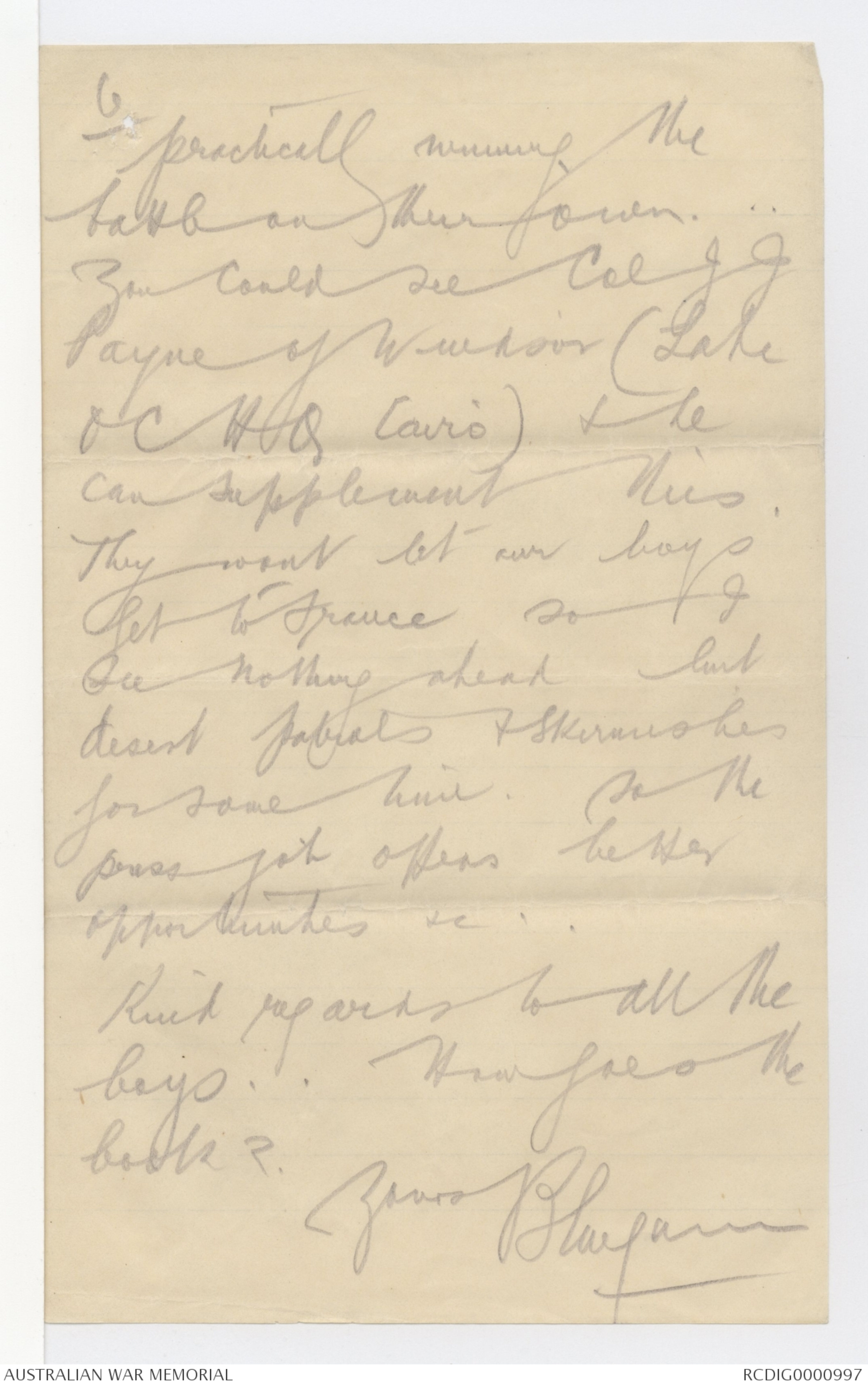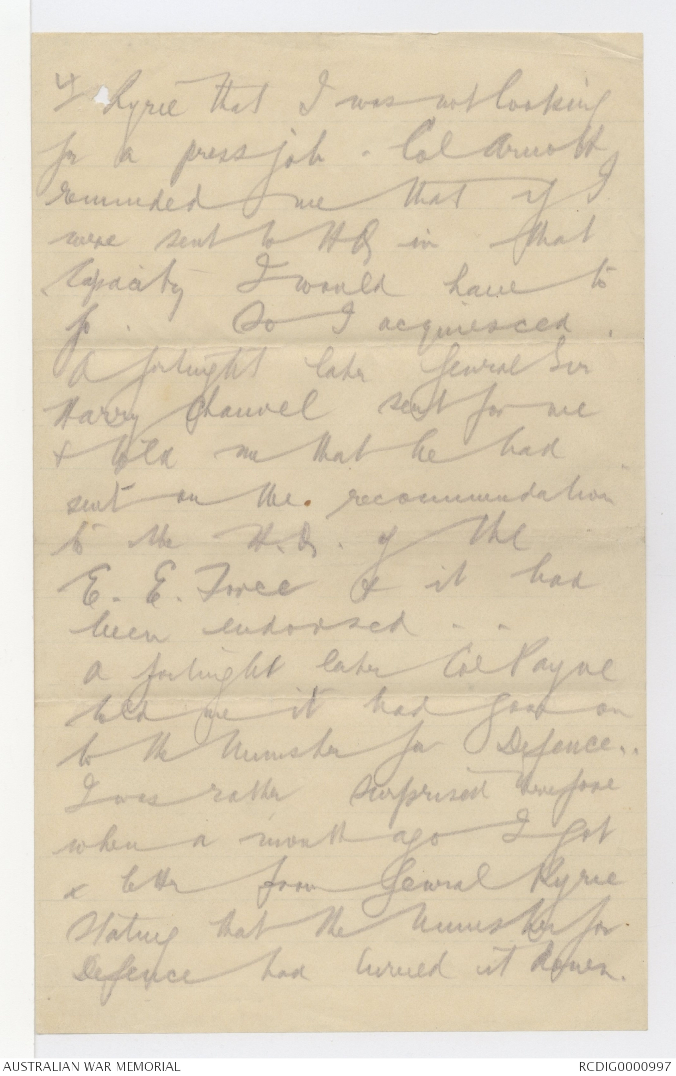 a letter from General Ryrie