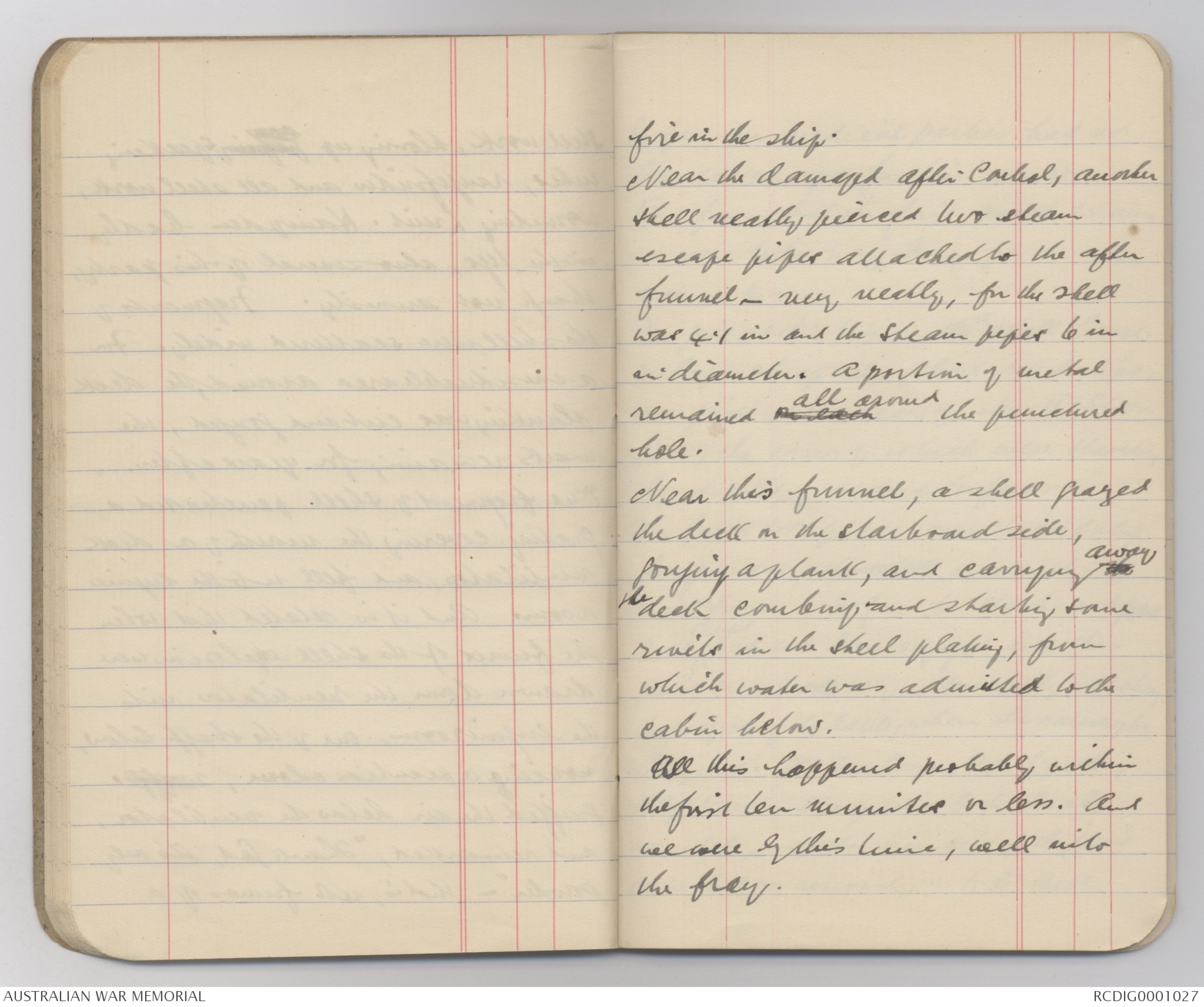 perhaps shrapnel, about midships,