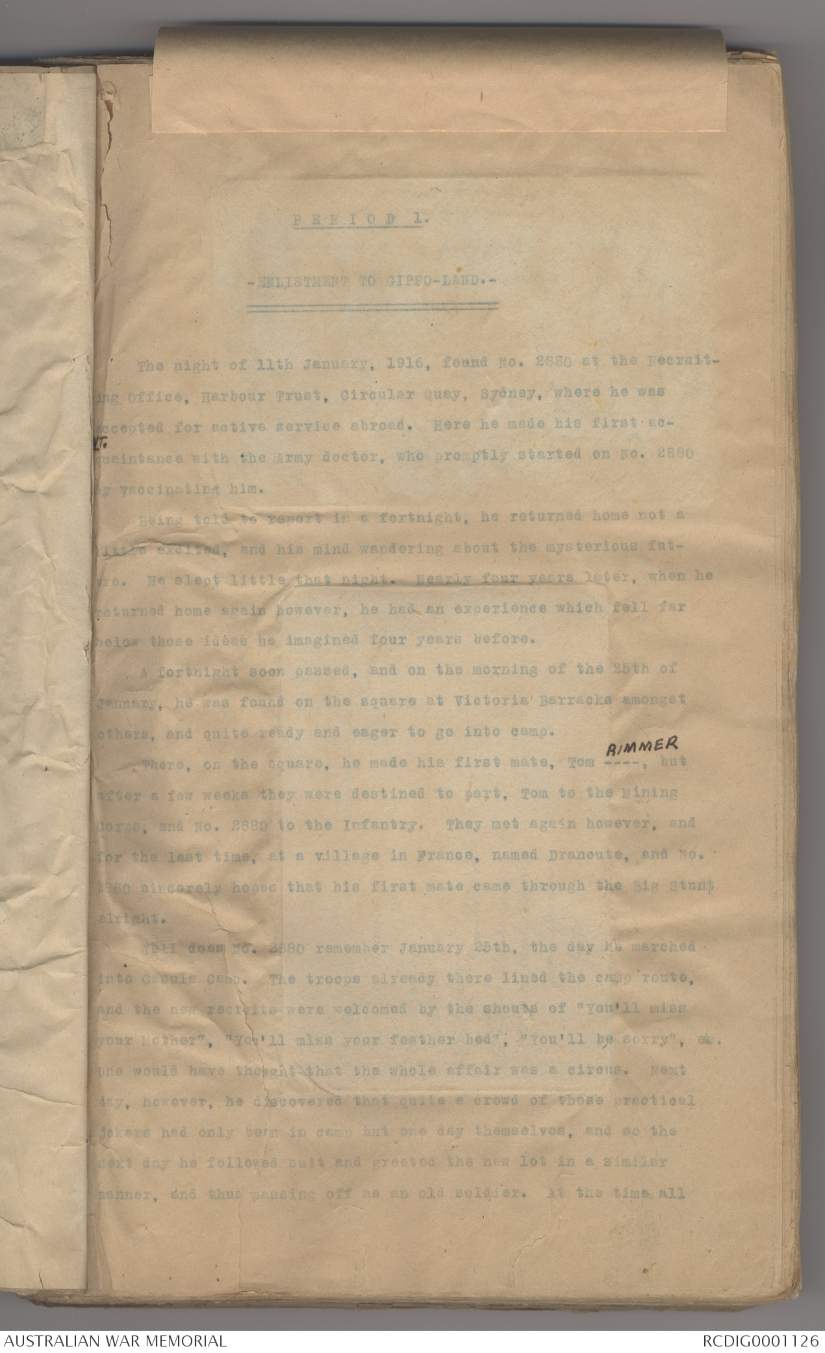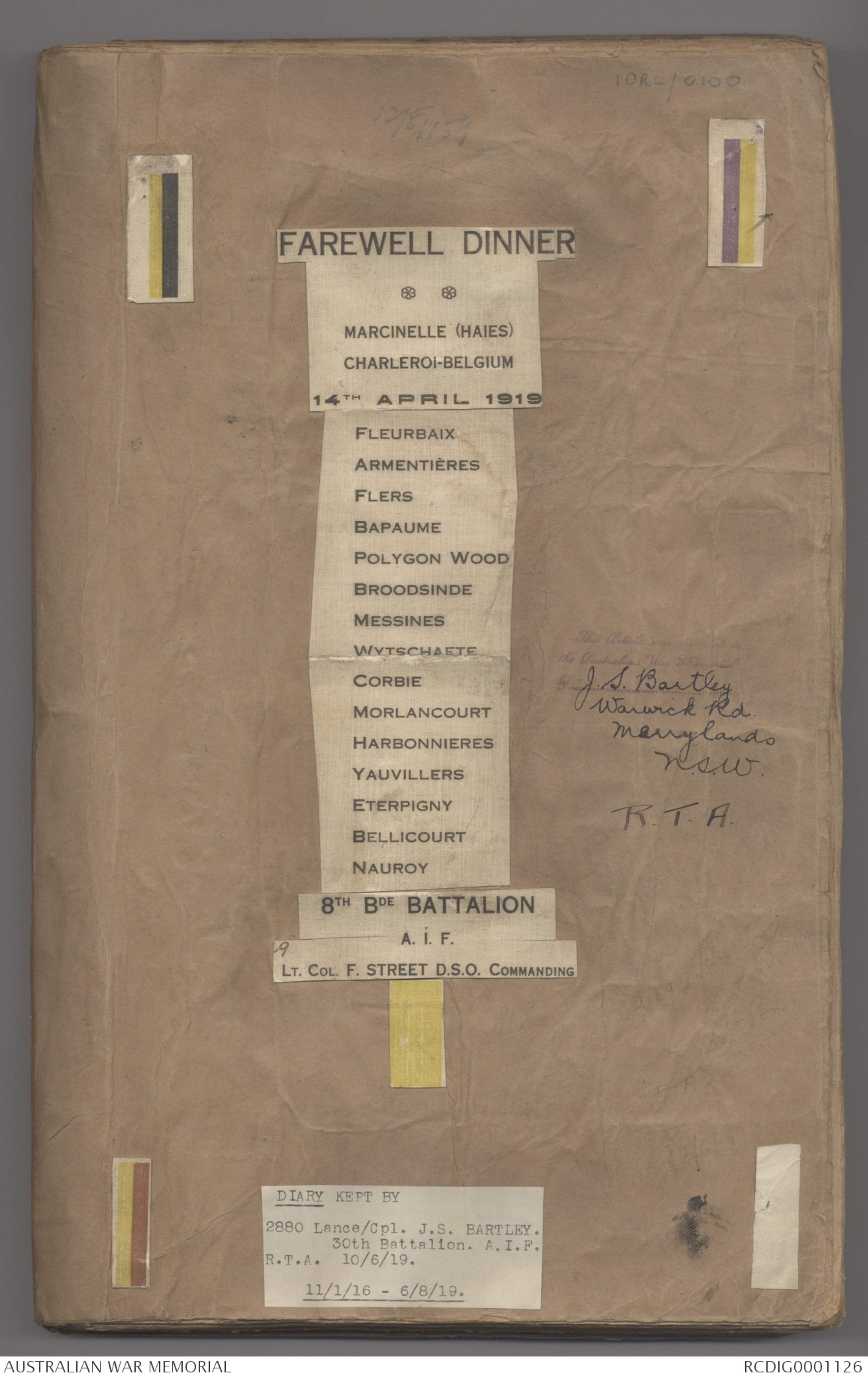 Memoir of John Shakespear Bartley, 1916-1919 - Part 1