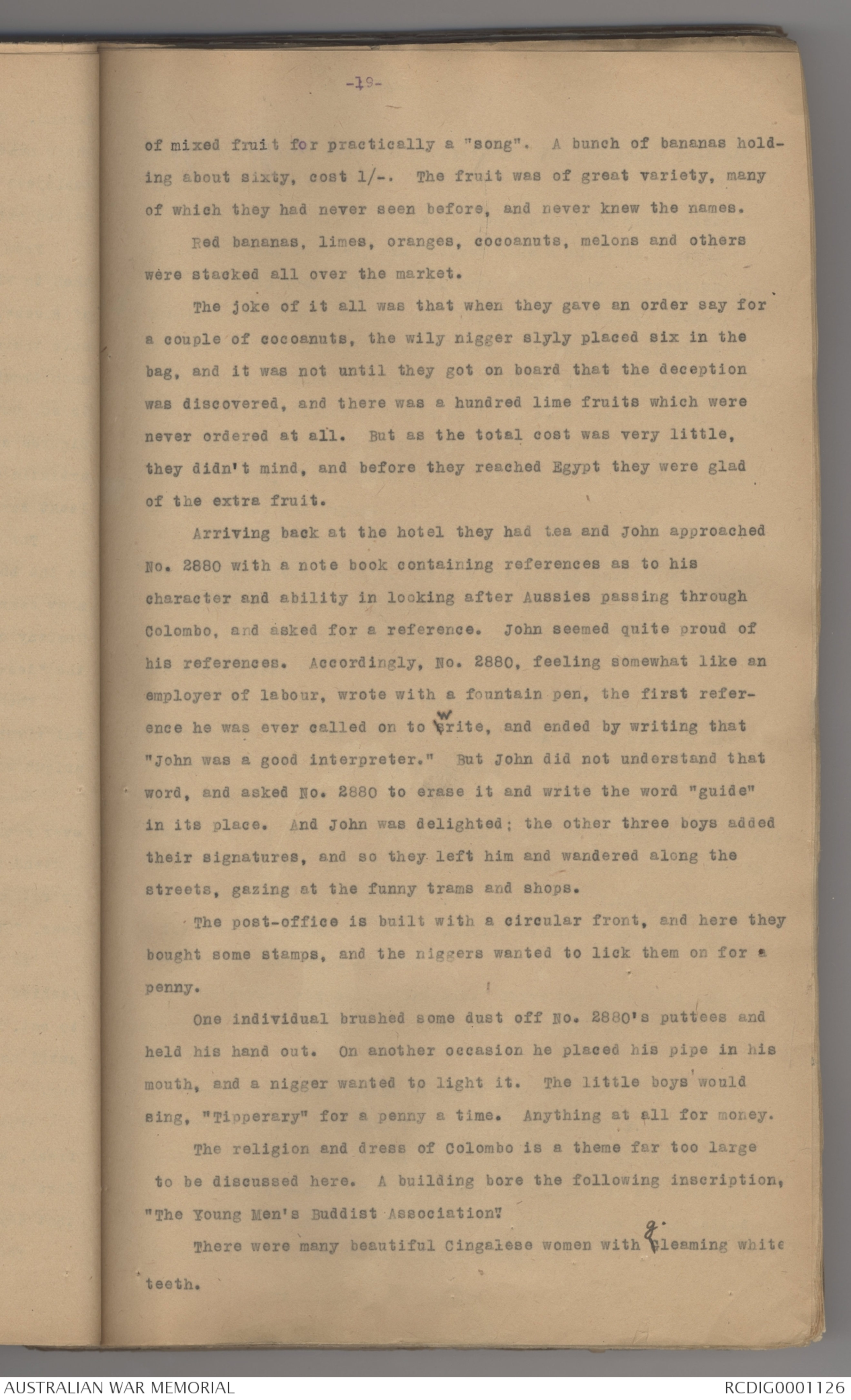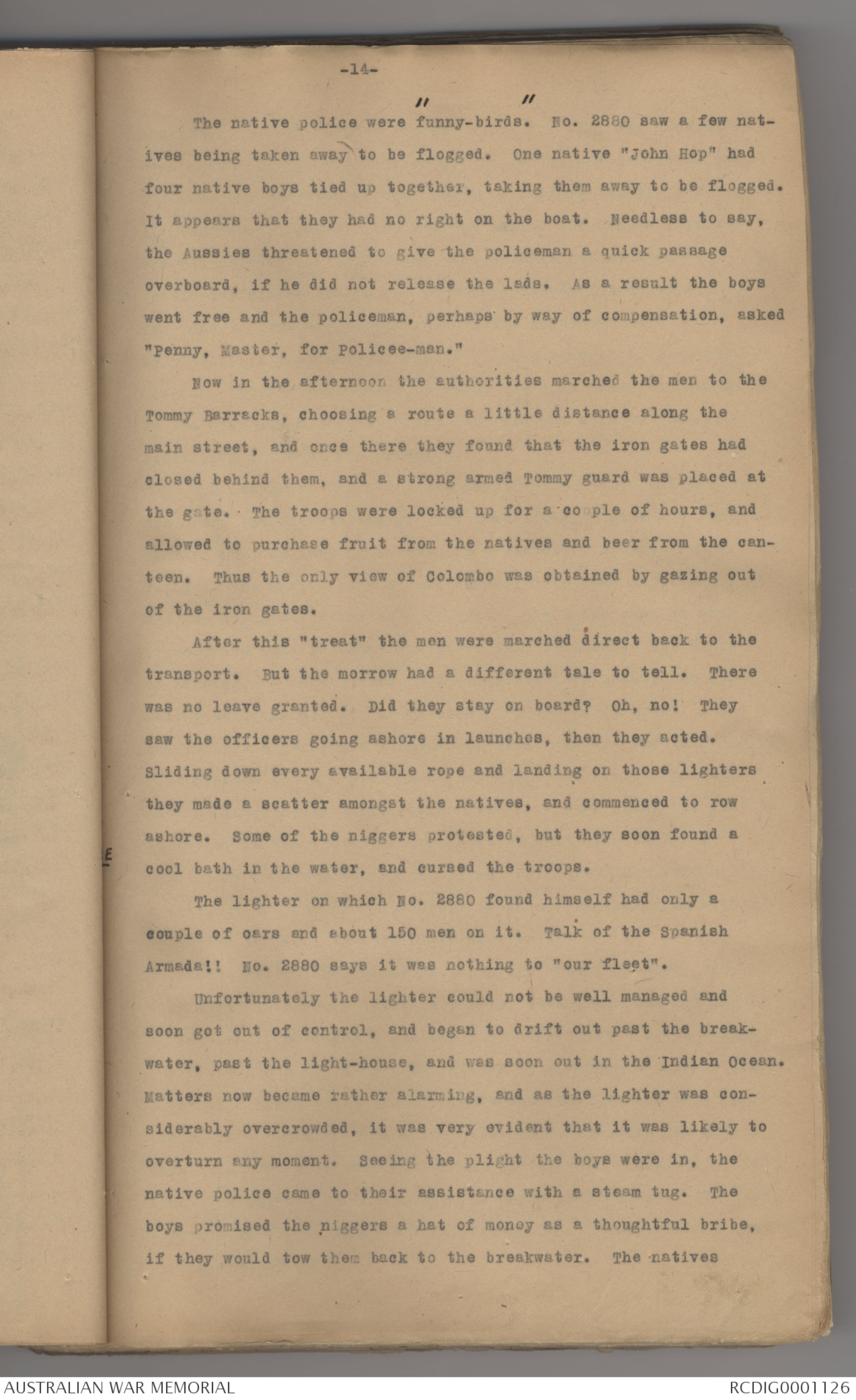 The native police were "funny-birds." No. 2880 saw a few natives