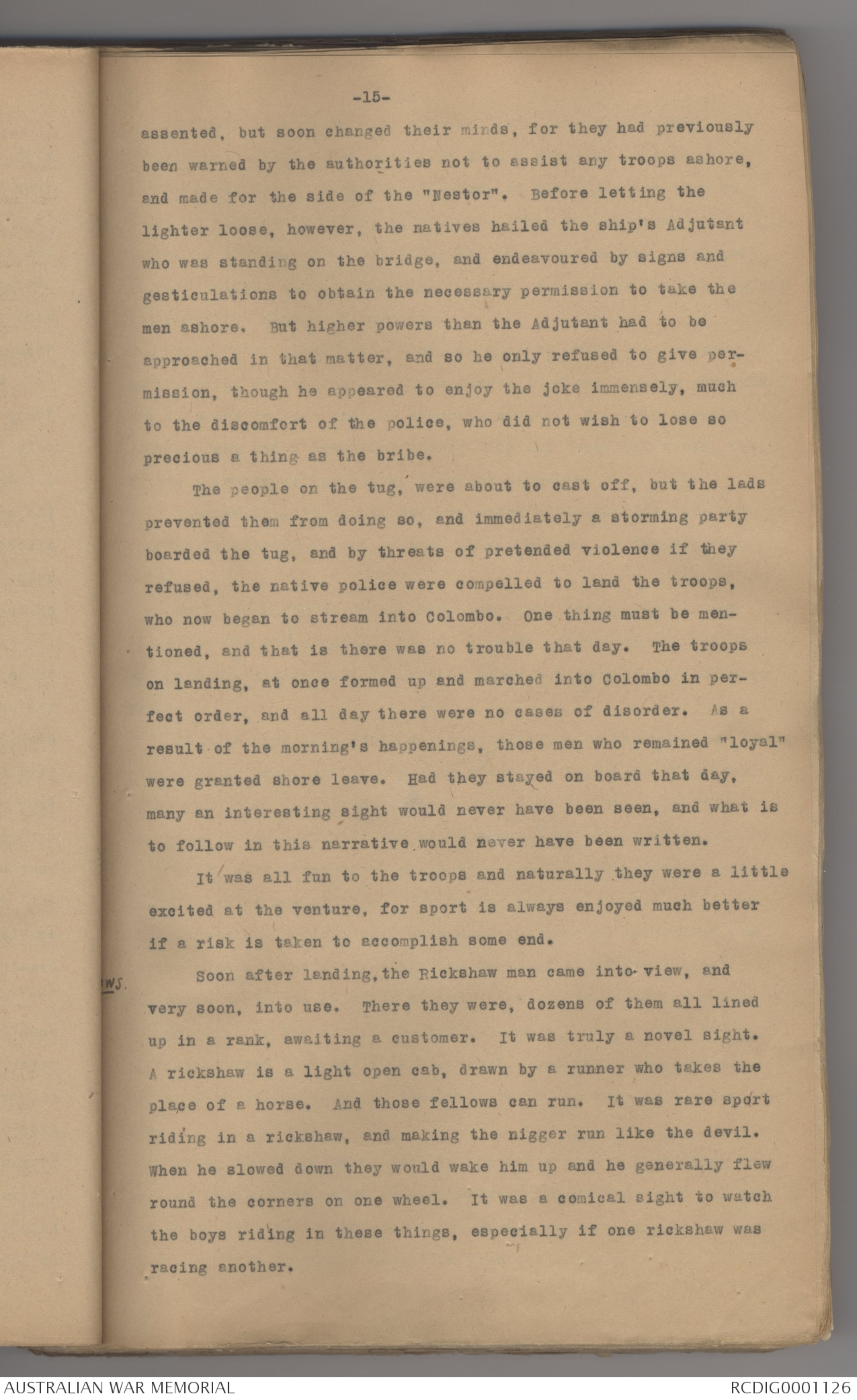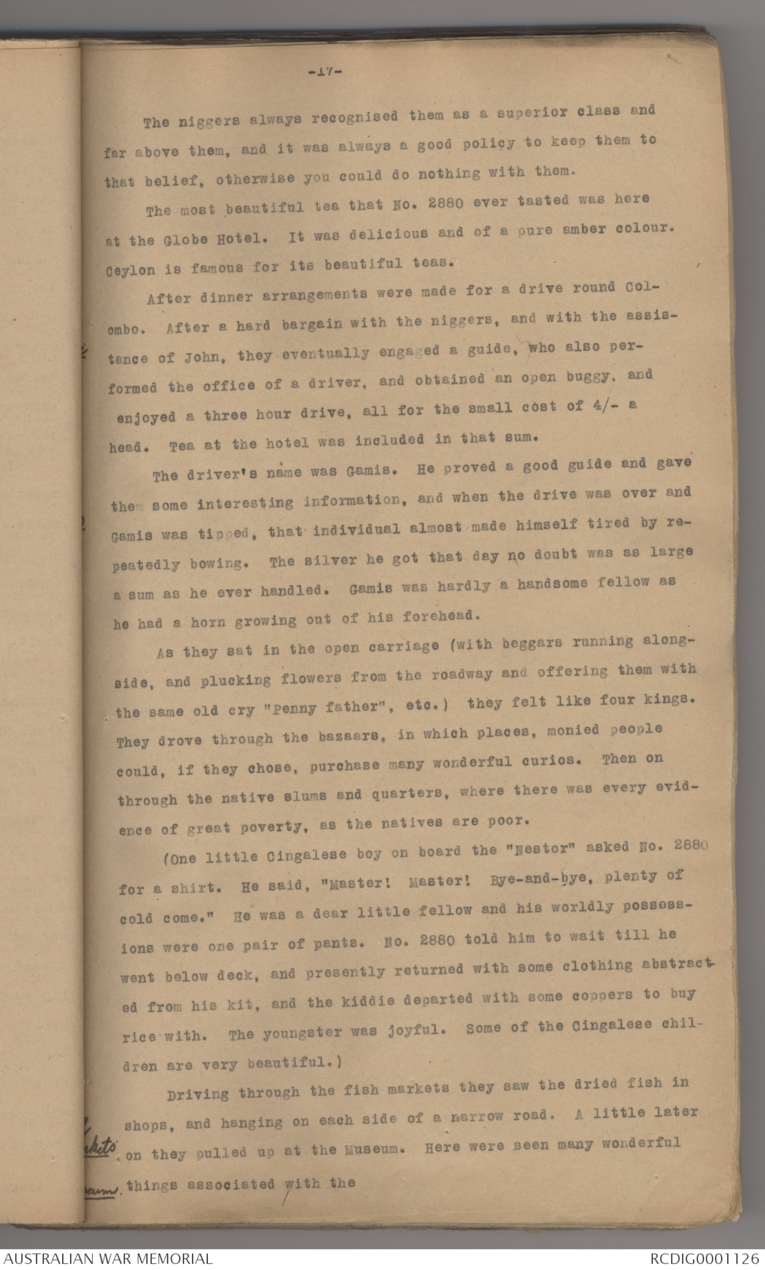 riding in a rickshaw, and making the nigger run like the devil.