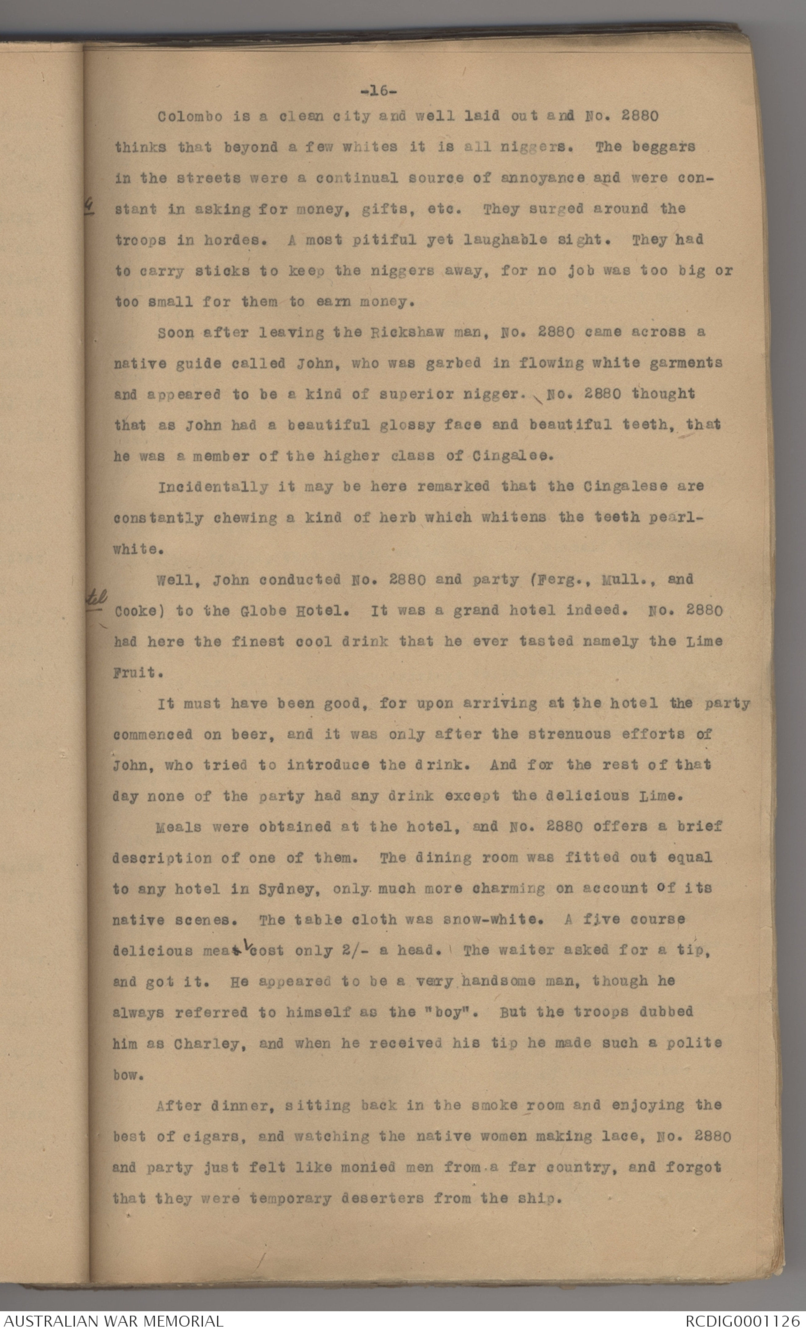 Cooke) to the Globe Hotel. It was a grand hotel indeed. No. 2880
