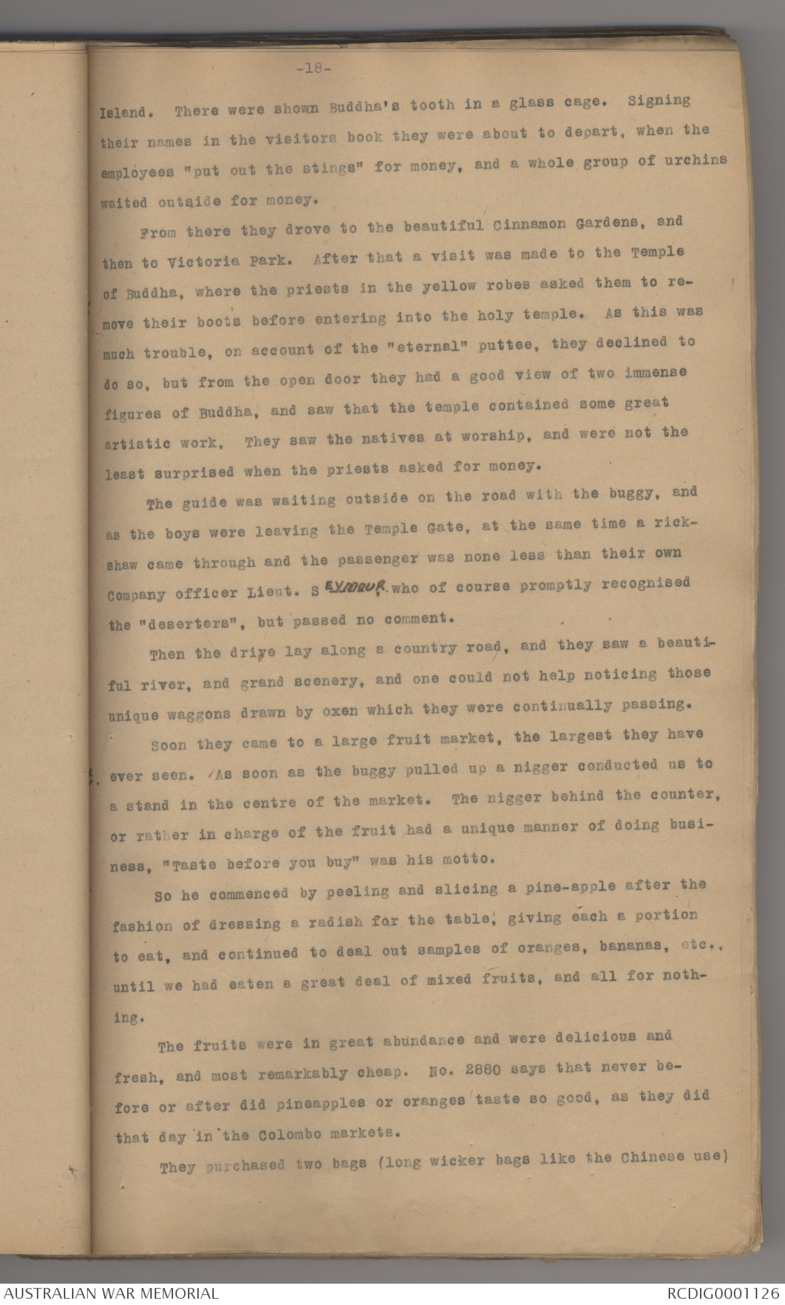 allowed to purchase fruit from the natives and beer from the canteen.