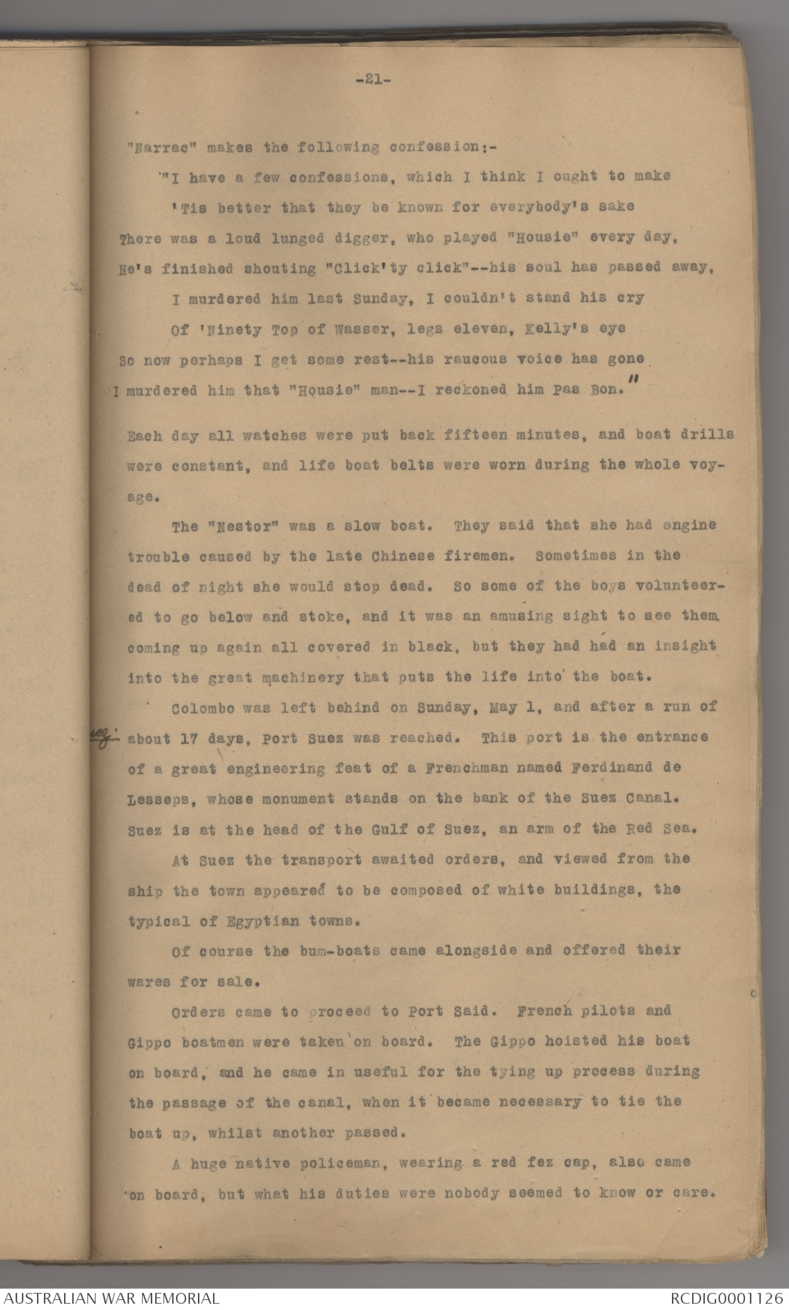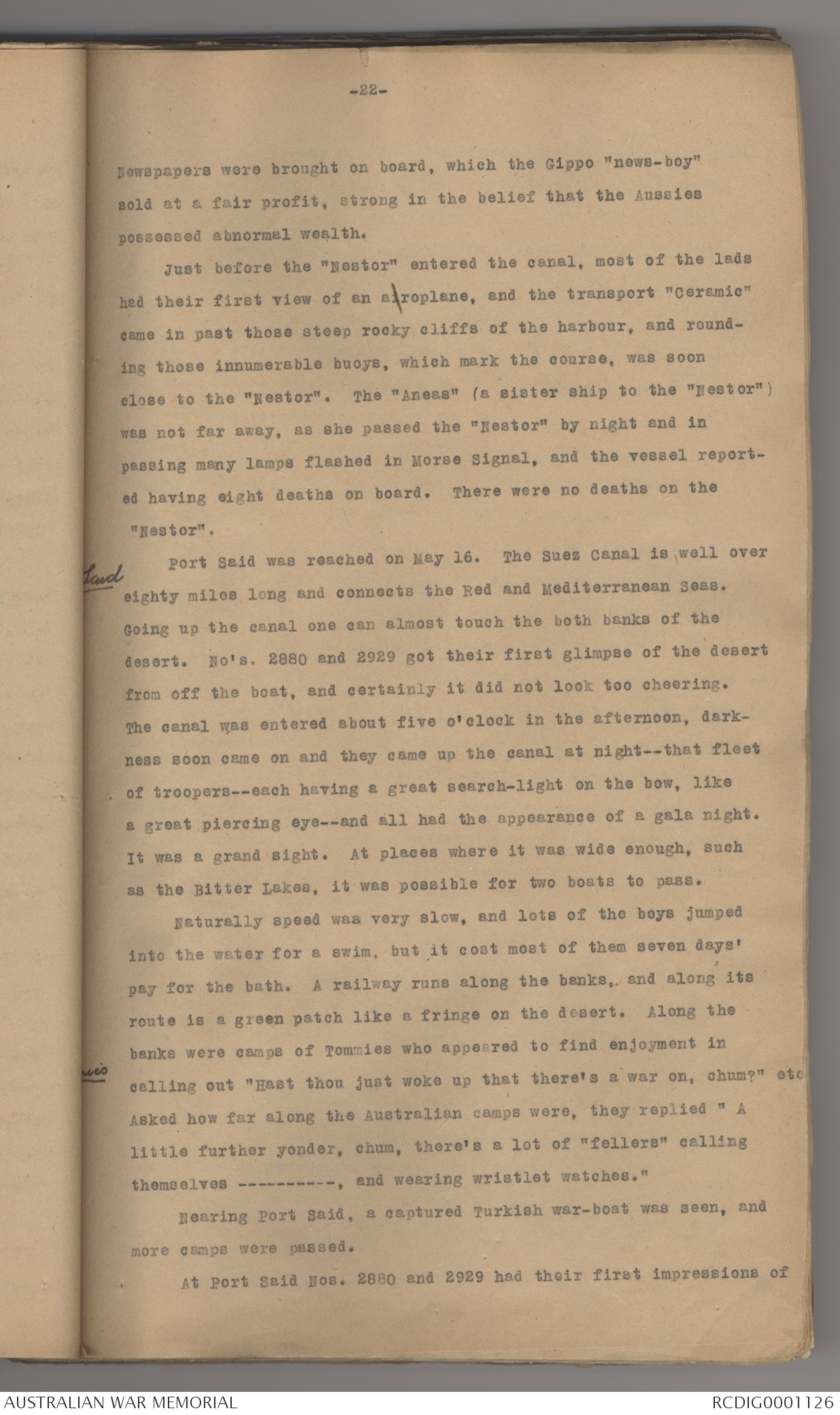 Just before the "Nestor" entered the canal, most of the lads