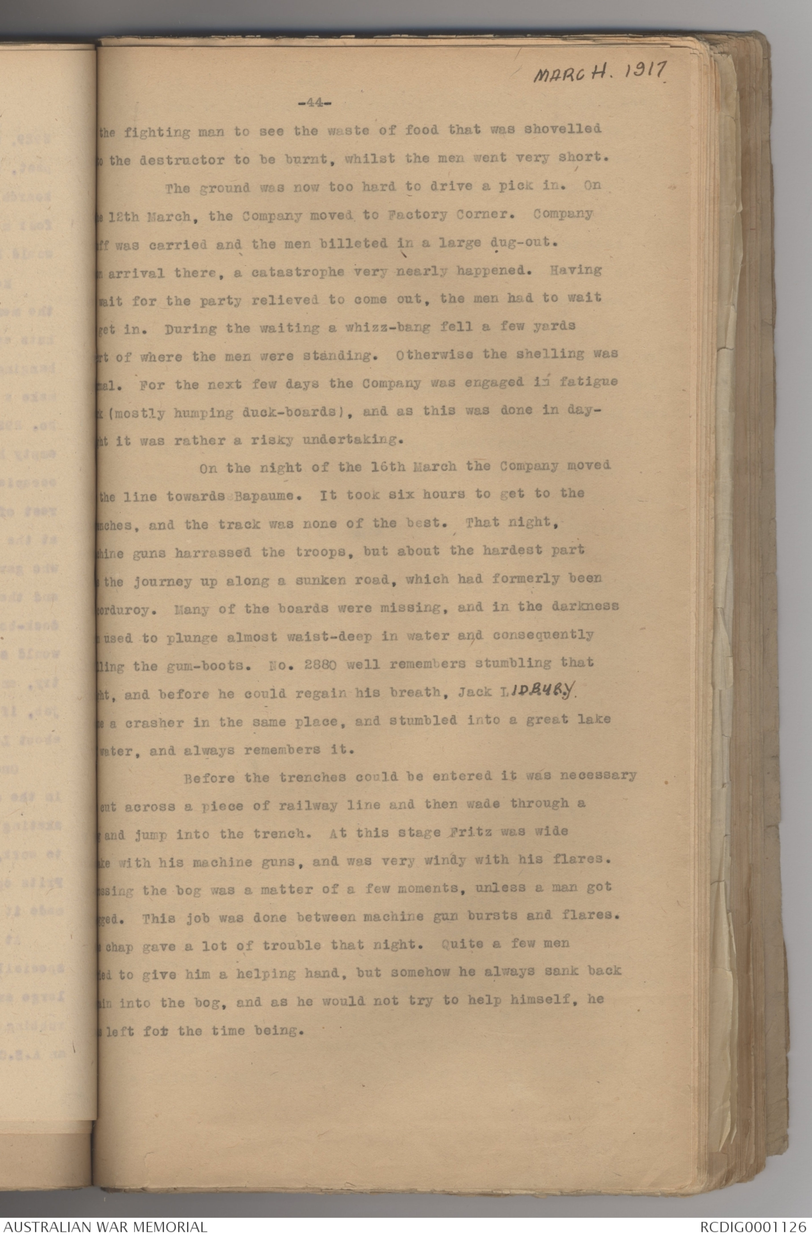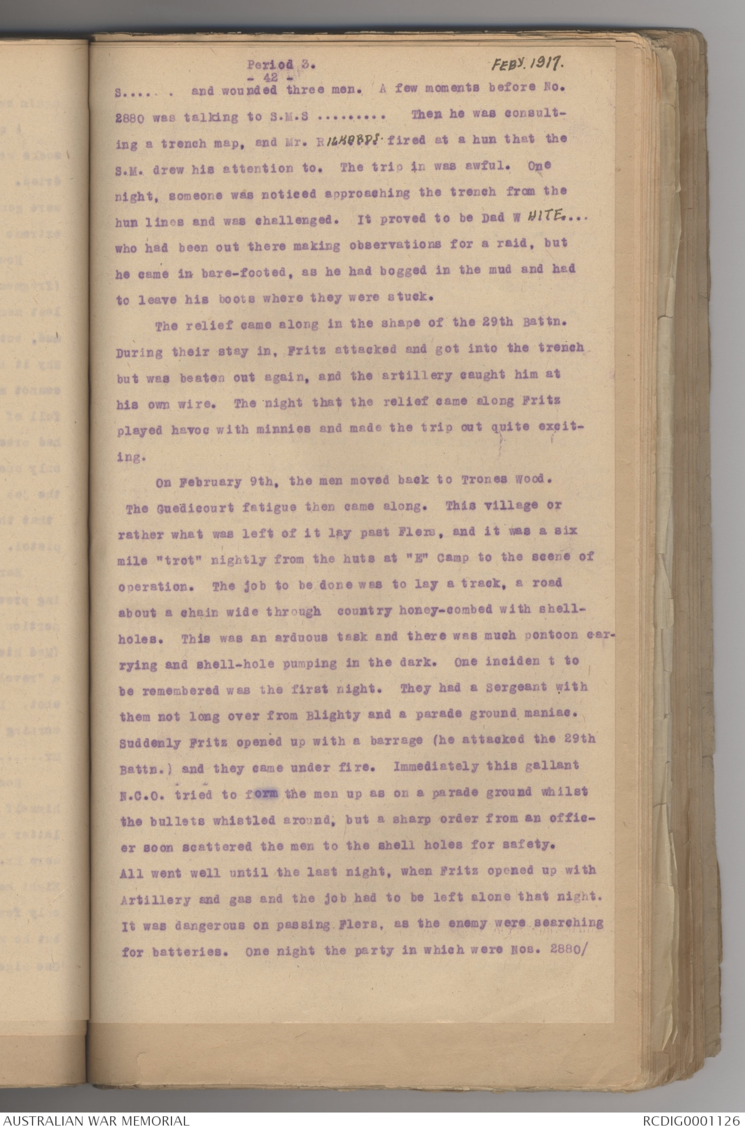 2929, moved along those duck-boards near Flers, just a little