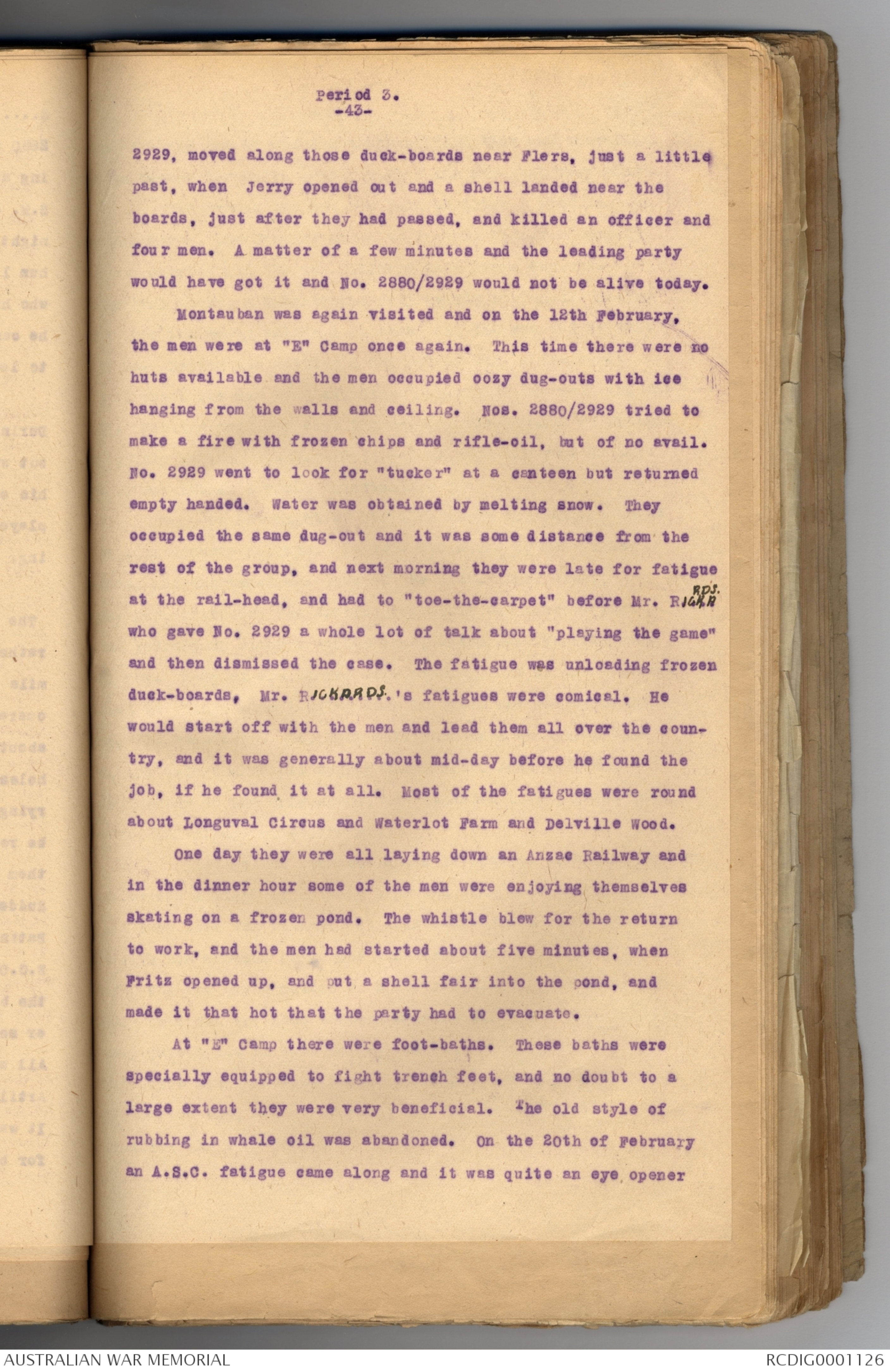 duck-boards, Mr, RICKARDS fatigues were comical. He