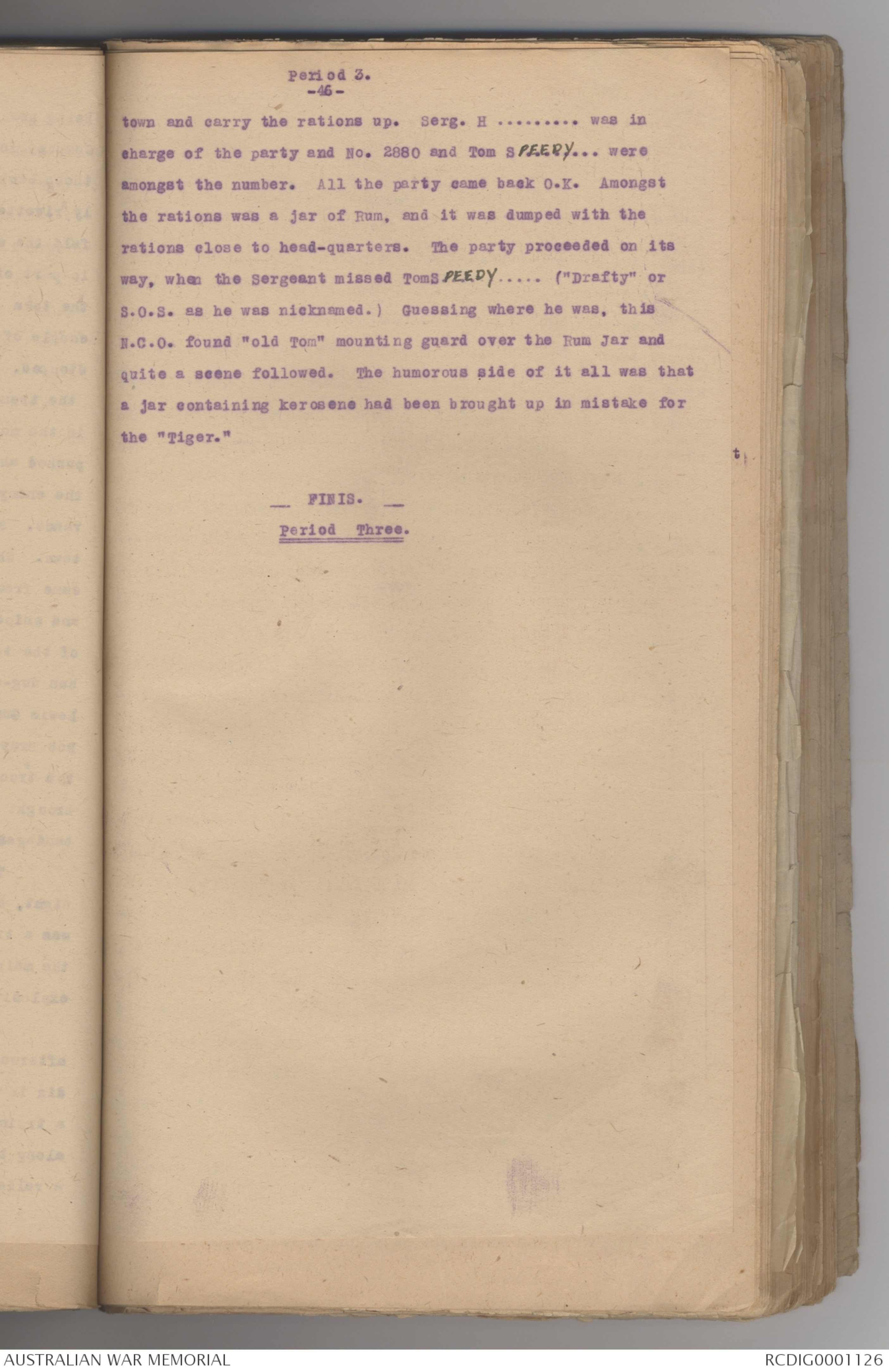 No. 2929 went to look for "tucker" at a canteen but returned