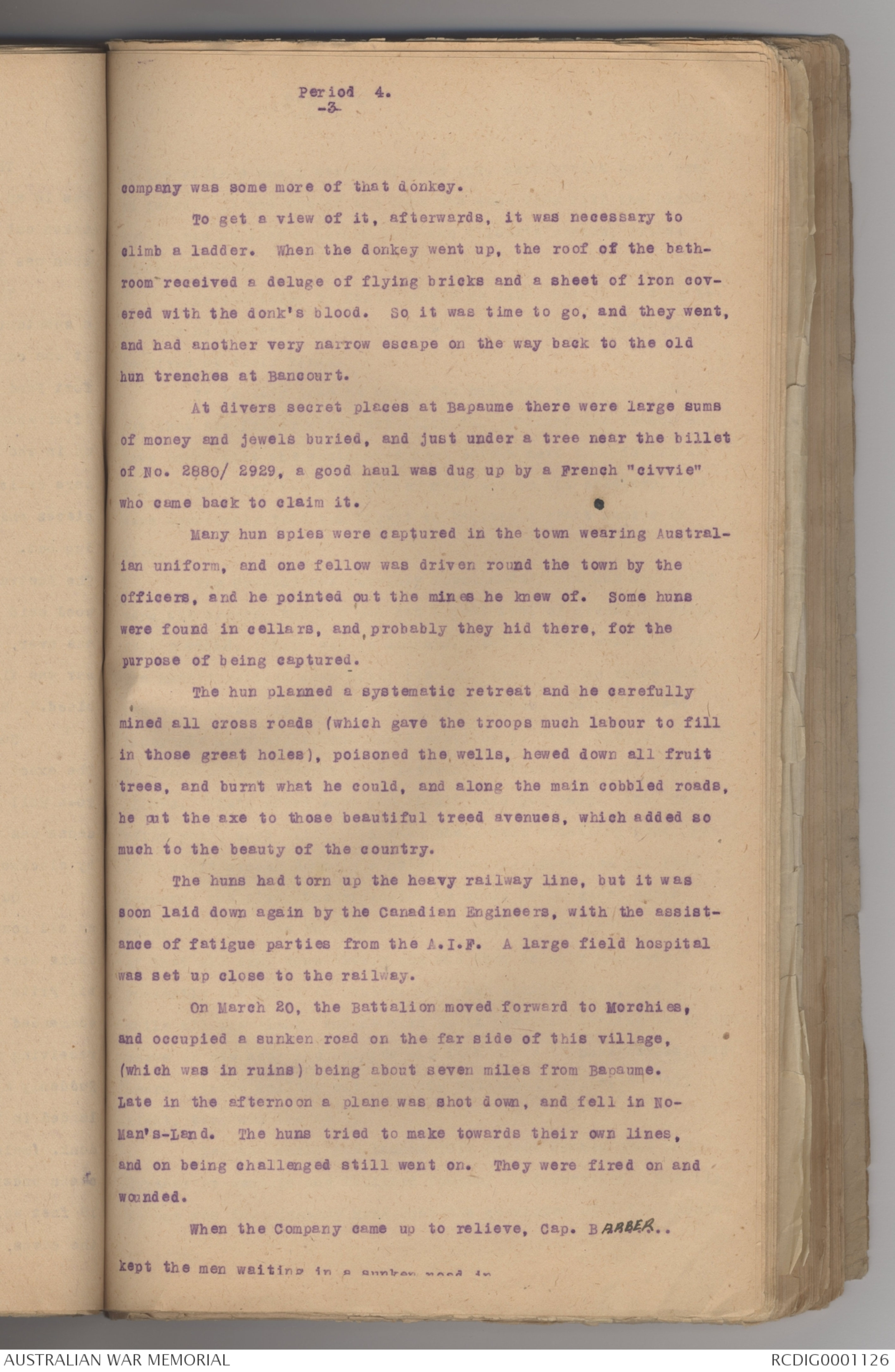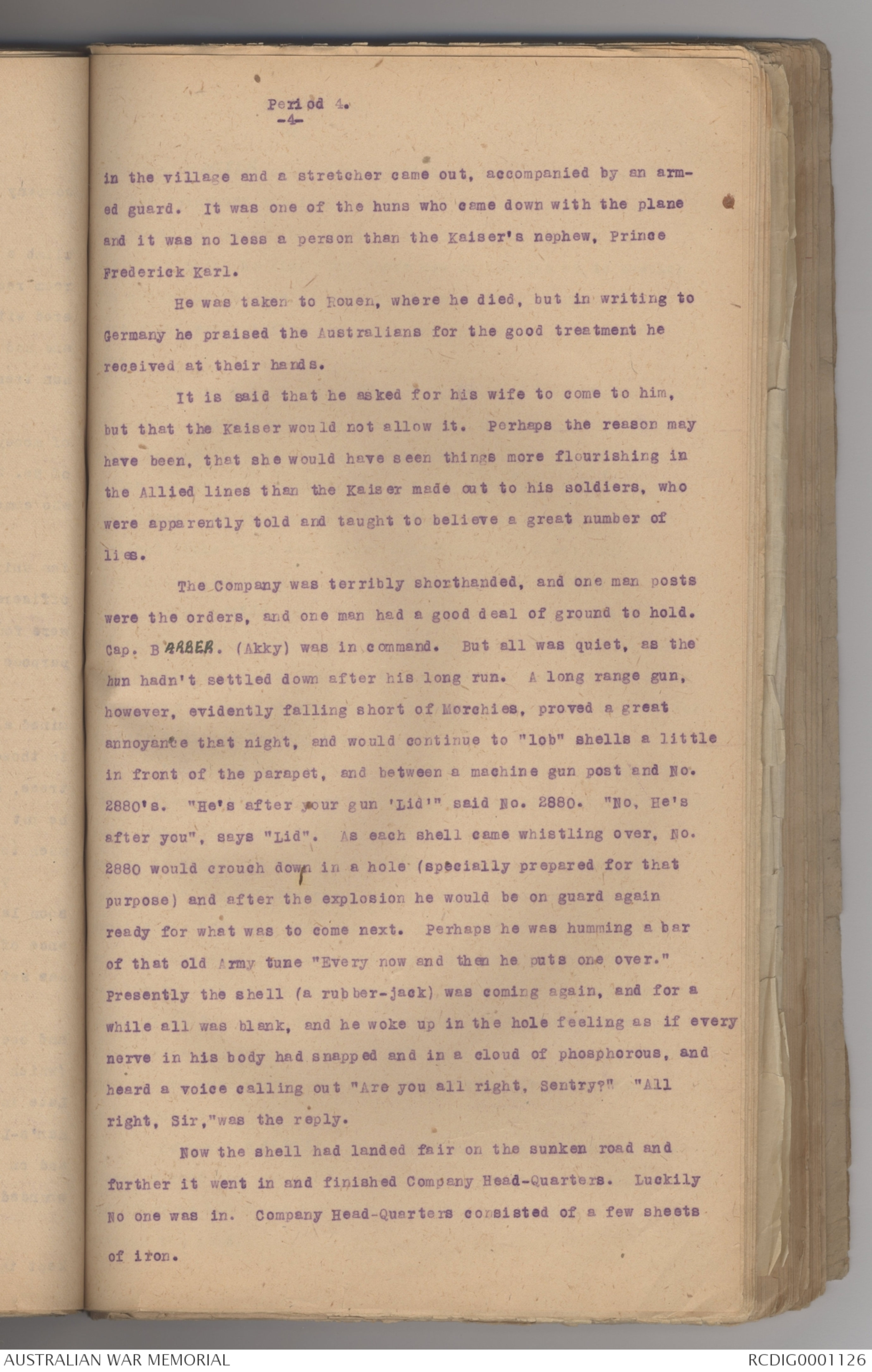 Cap. BARBER. (Akky) was in command. But all was quiet, as the