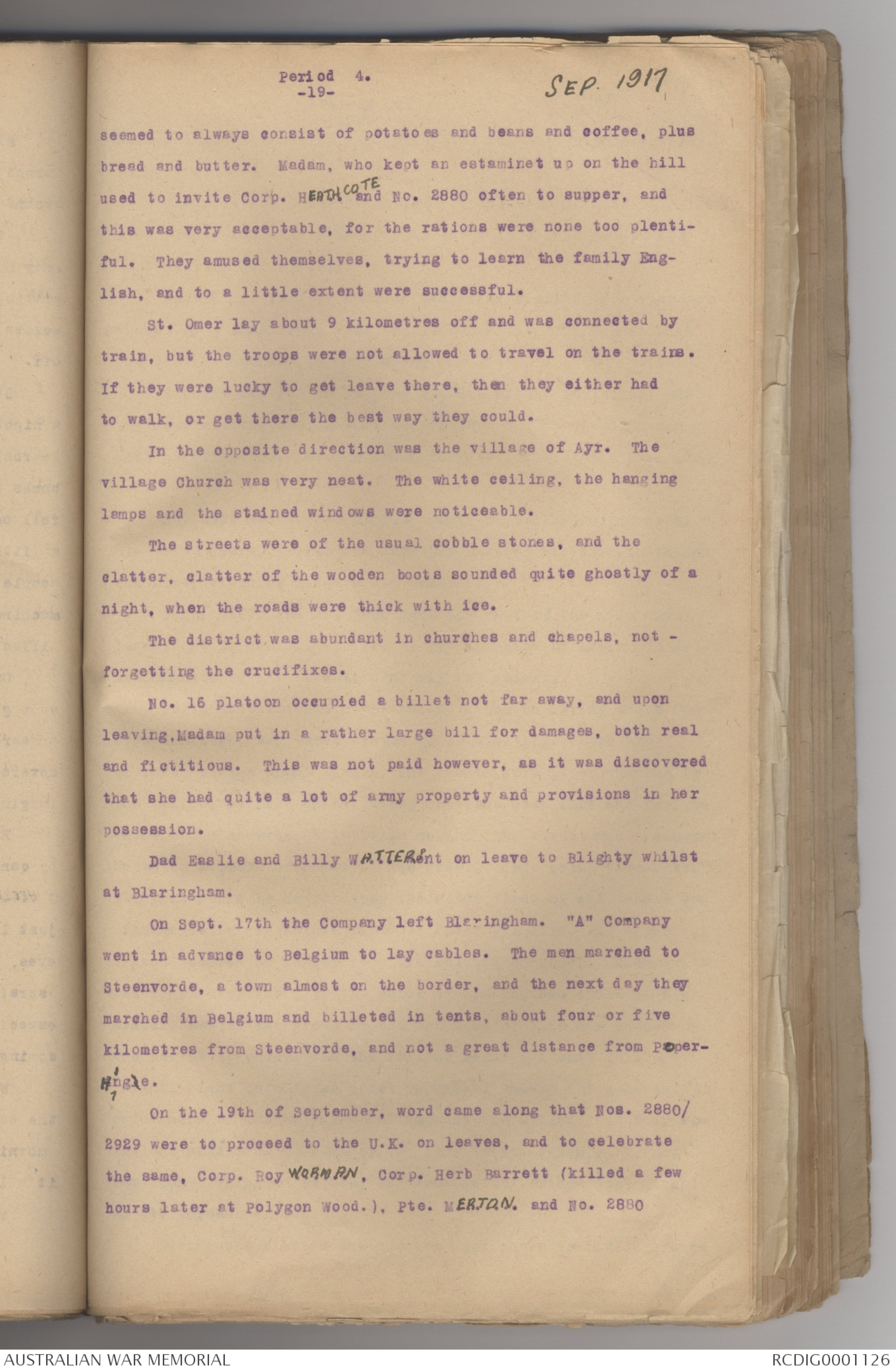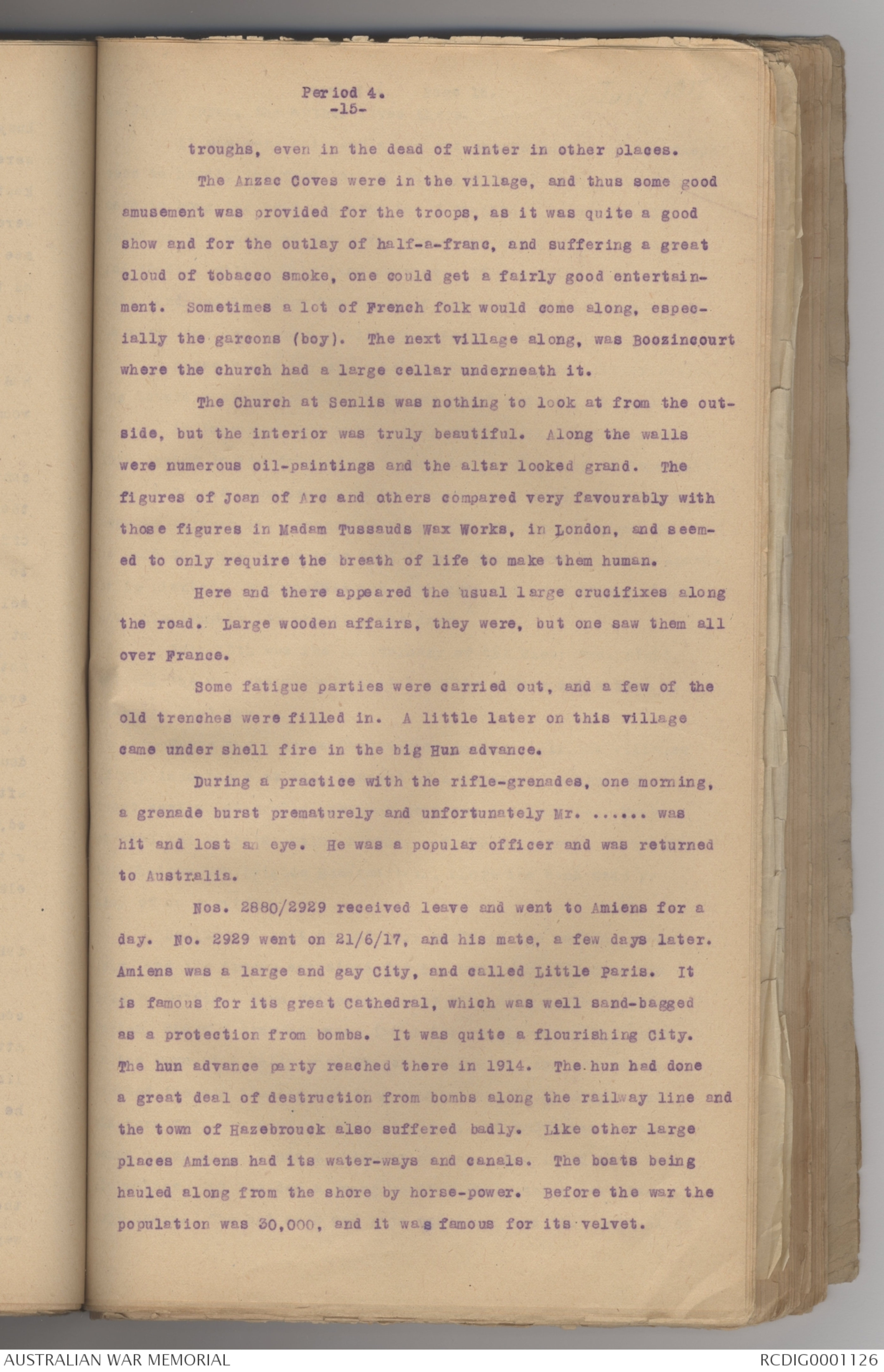 Nos. 2880/2929 received leave and went to Amiens for a