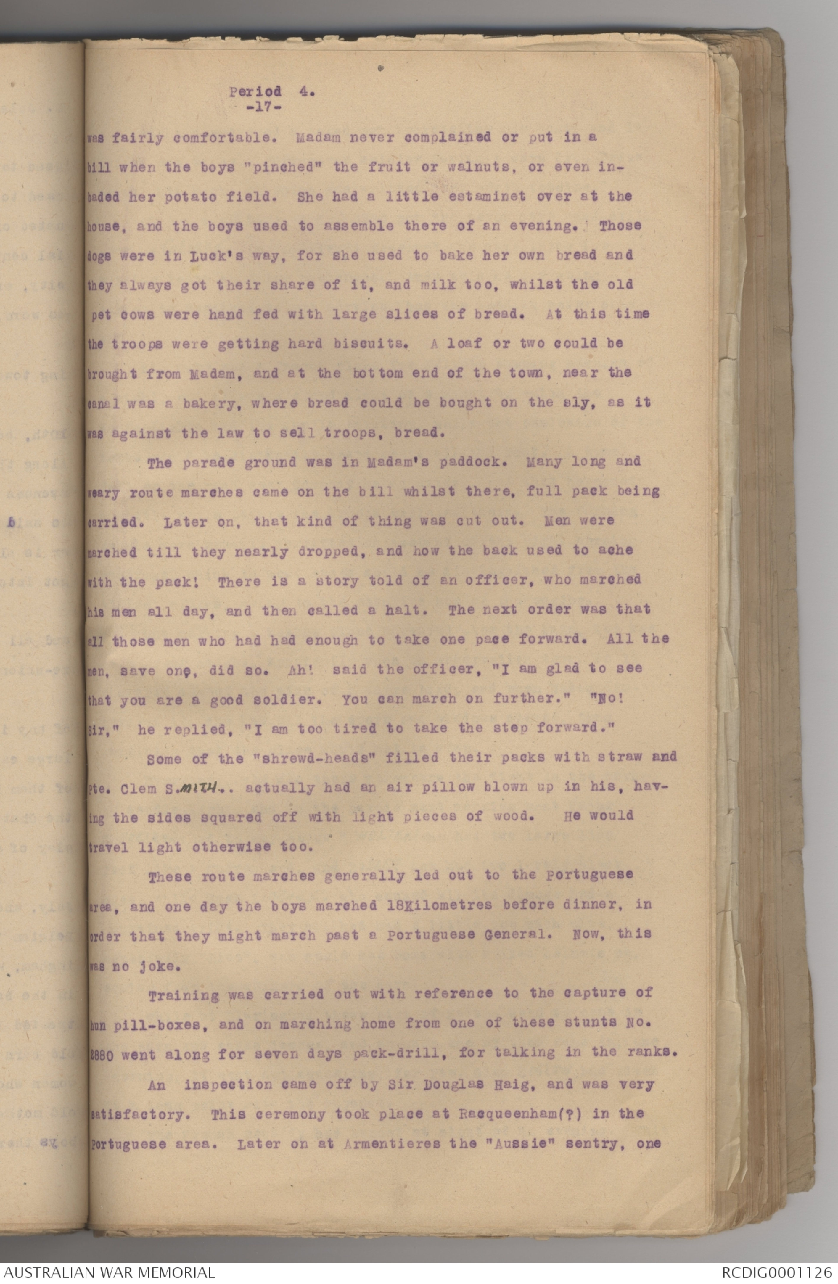 Pte. Clem SMITH.. actually had an air pillow blown up in his, having