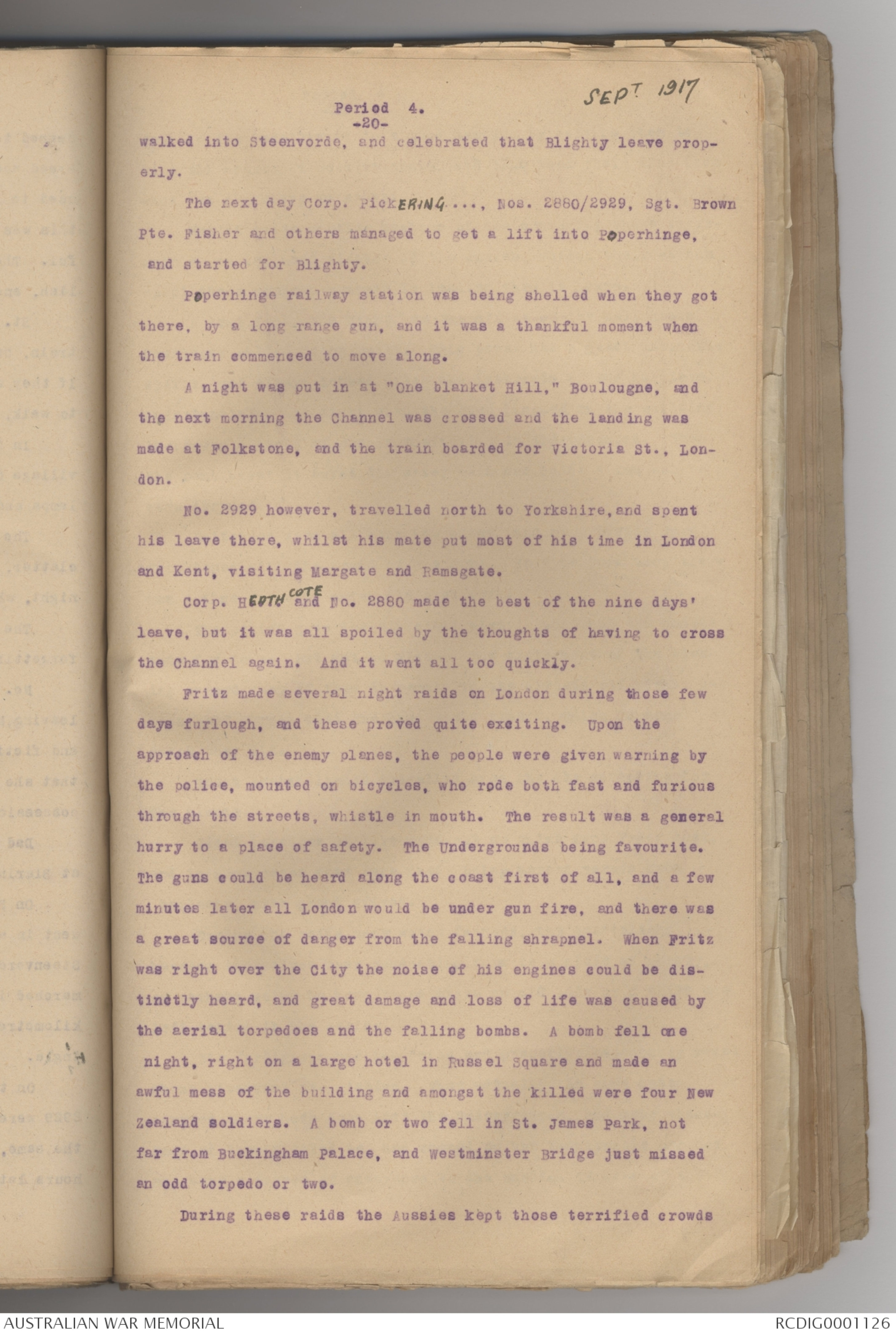 day. No. 2929 went on 21/6/17, and his mate, a few days later.