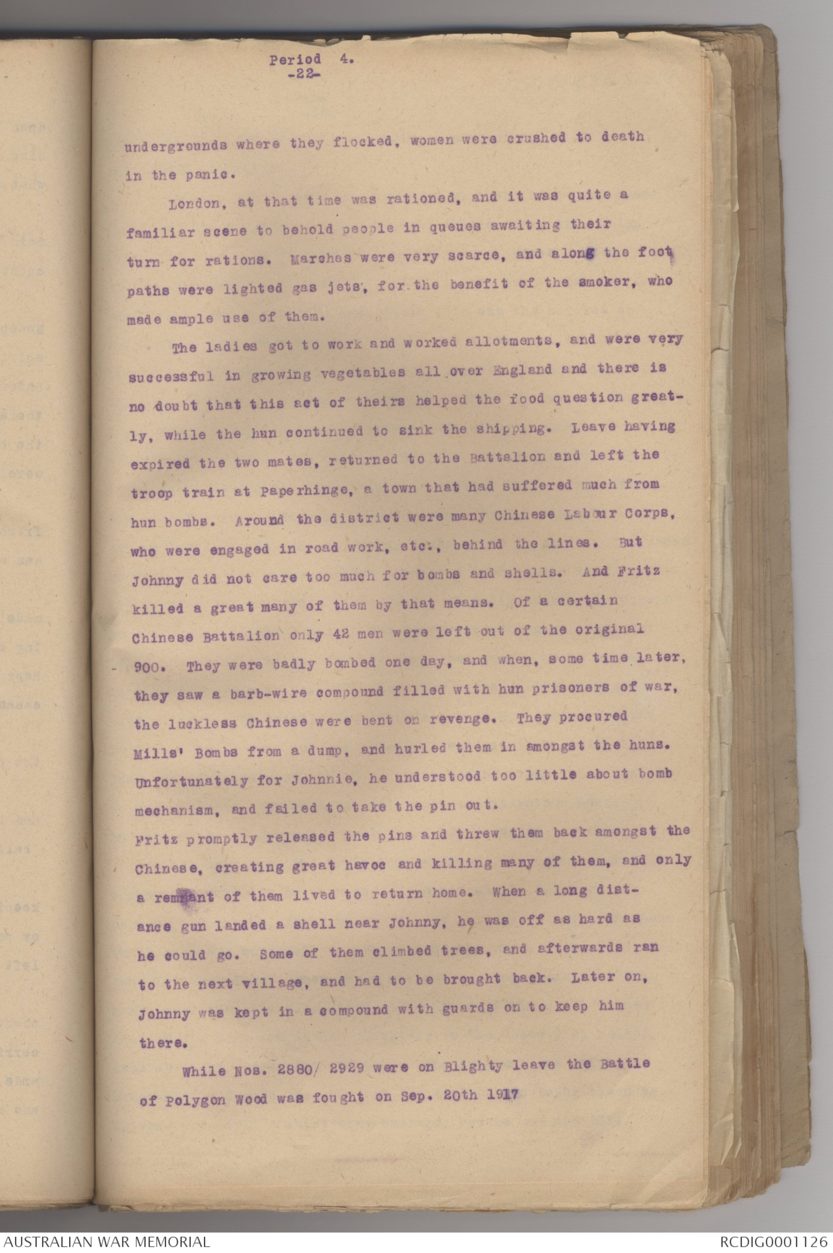 hun bombs. Around the district were many Chinese Labour Corps,