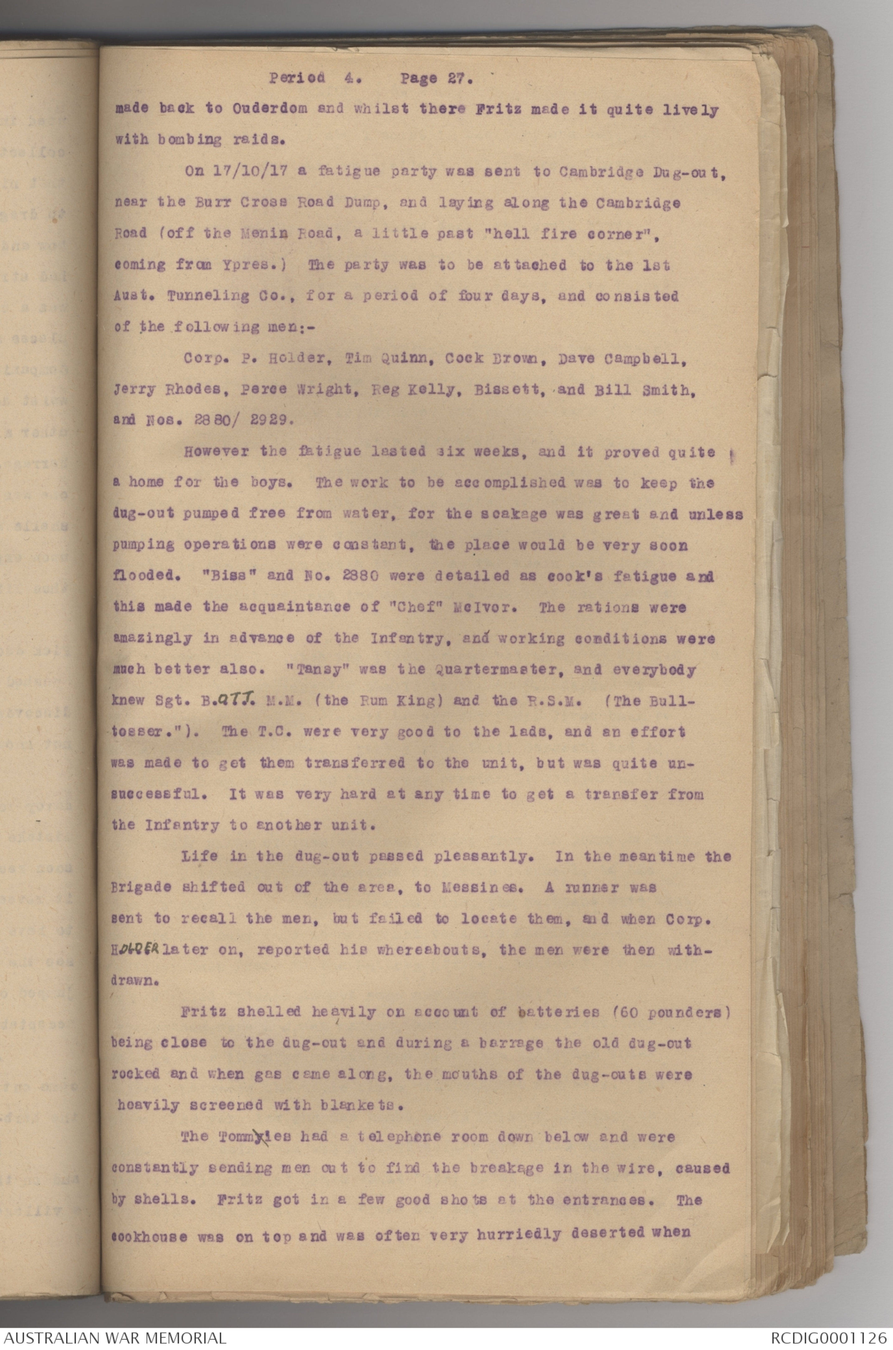 On 17/10/17 a fatigue party was sent to Cambridge Dug-out,