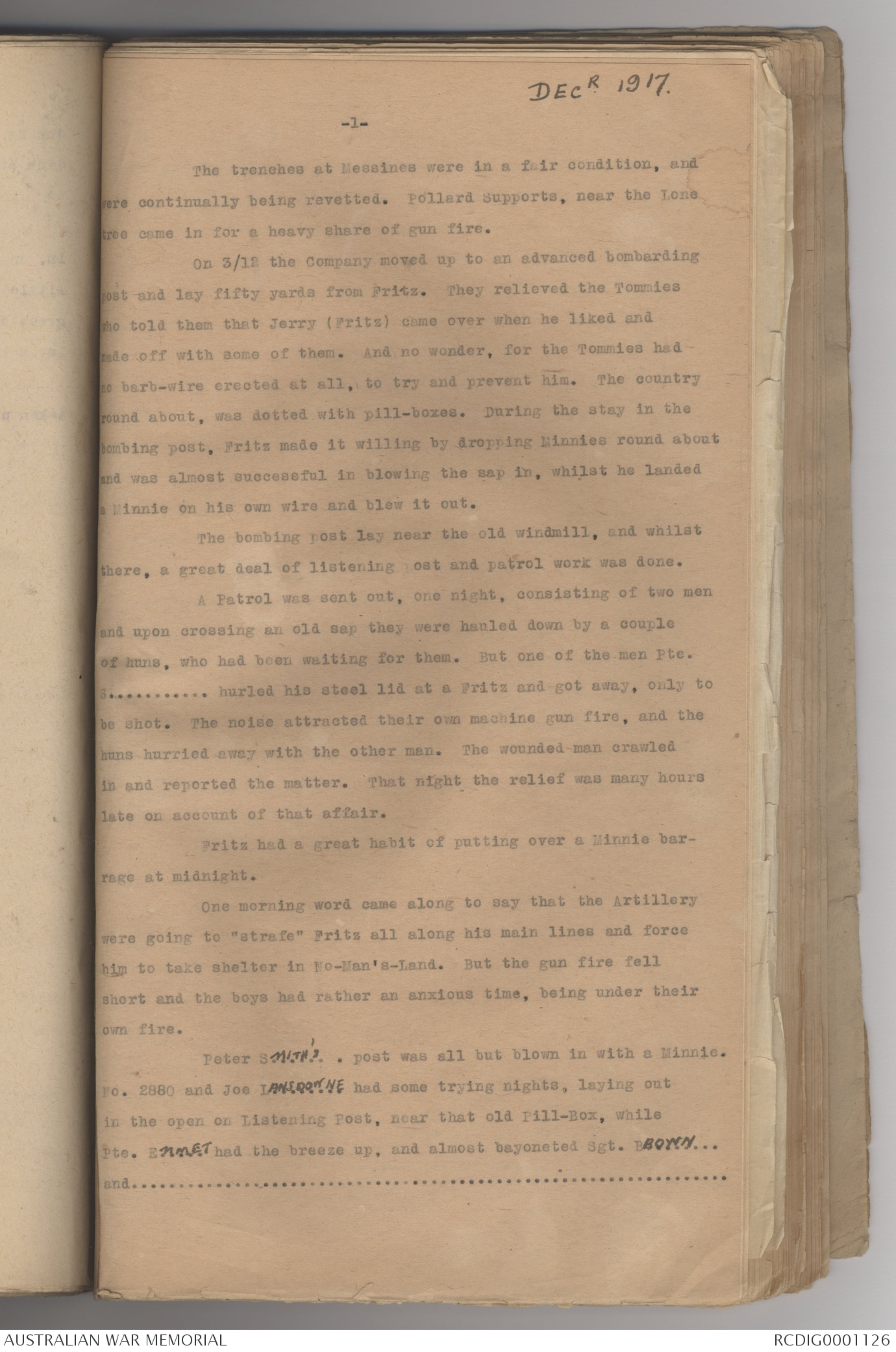 no barb-wire, and very few "funk-holes". This was soon remedied.