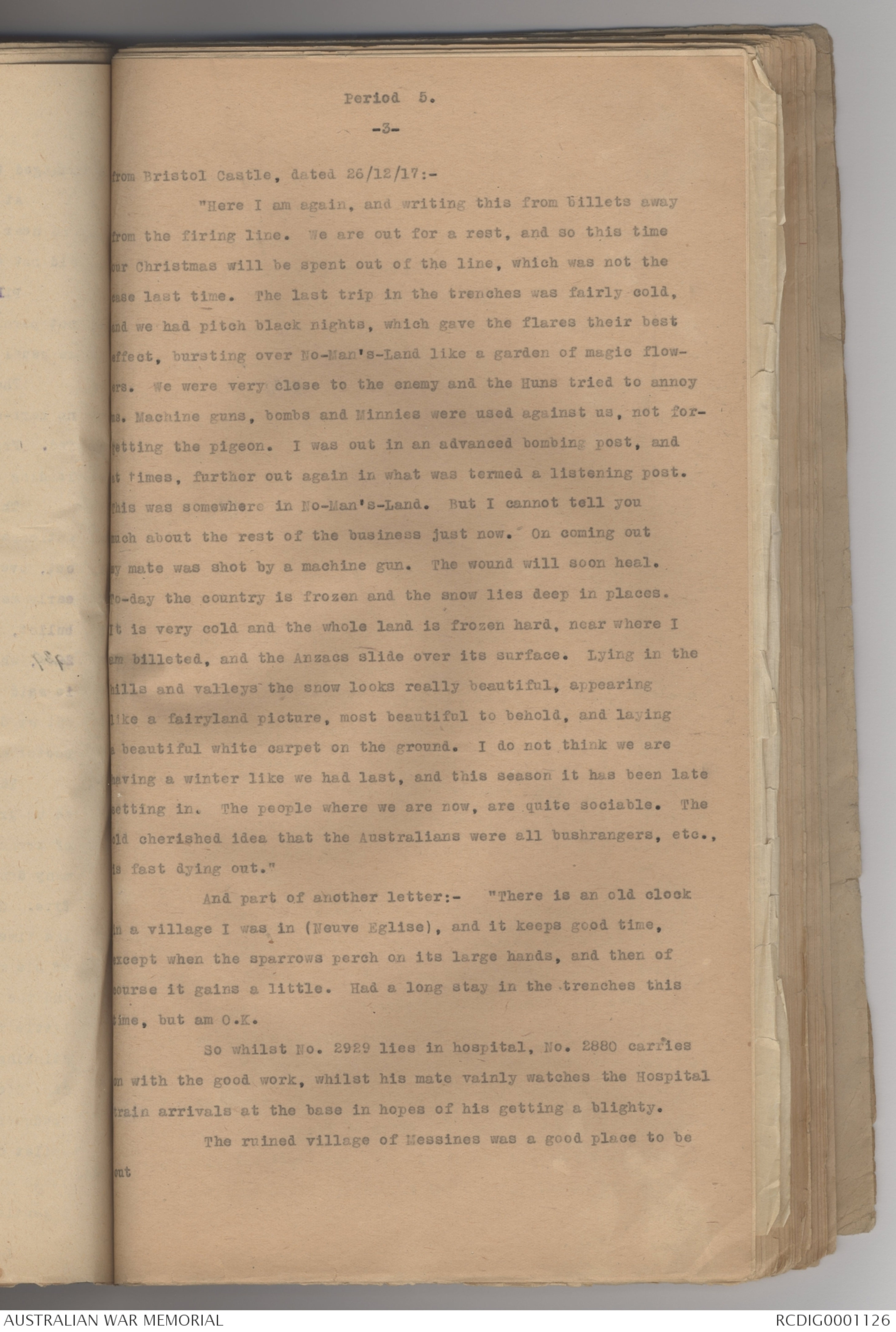 of his mate being shot. Not far from the Castle was the Y.M.C.A.