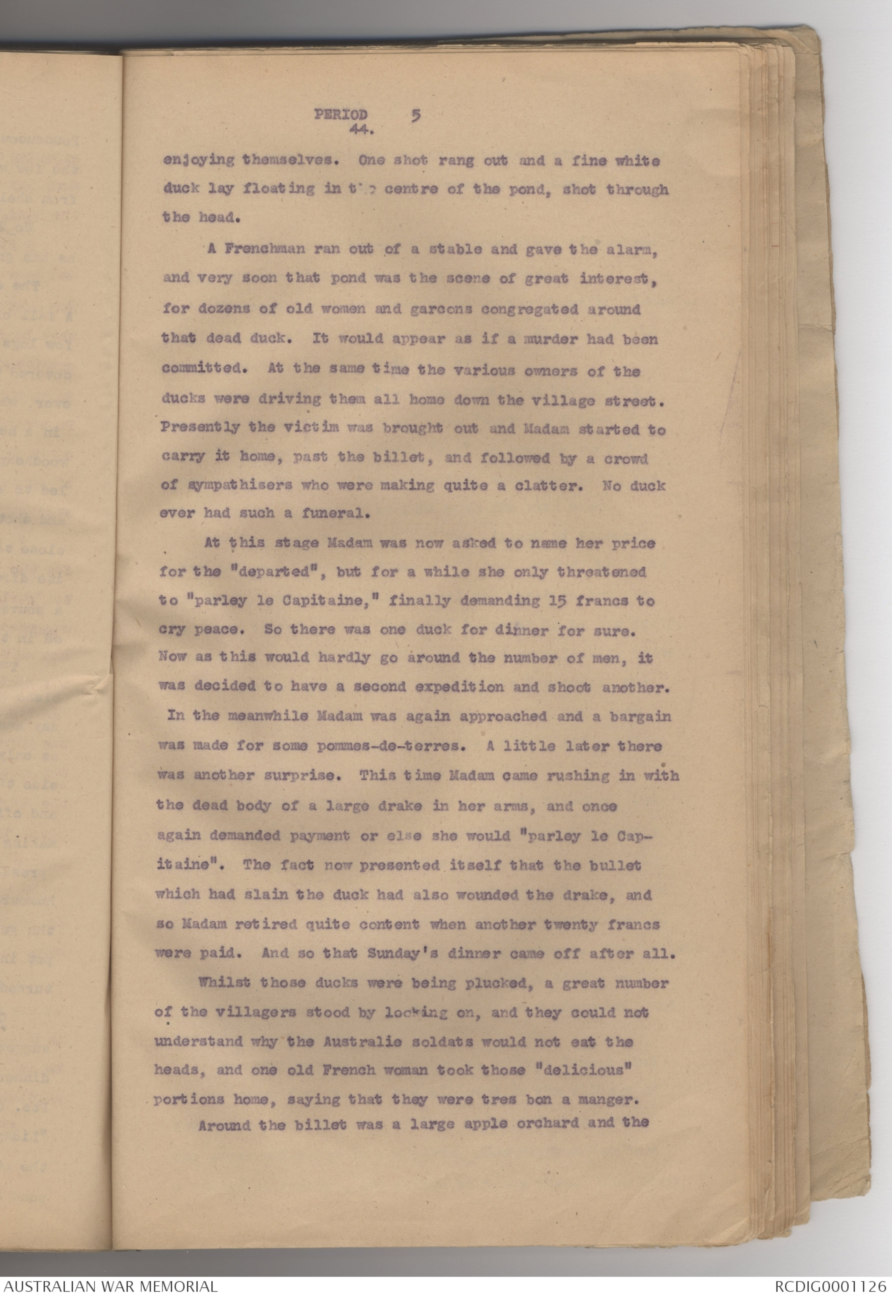 to "parley le Capitaine," finally demanding 15 francs to