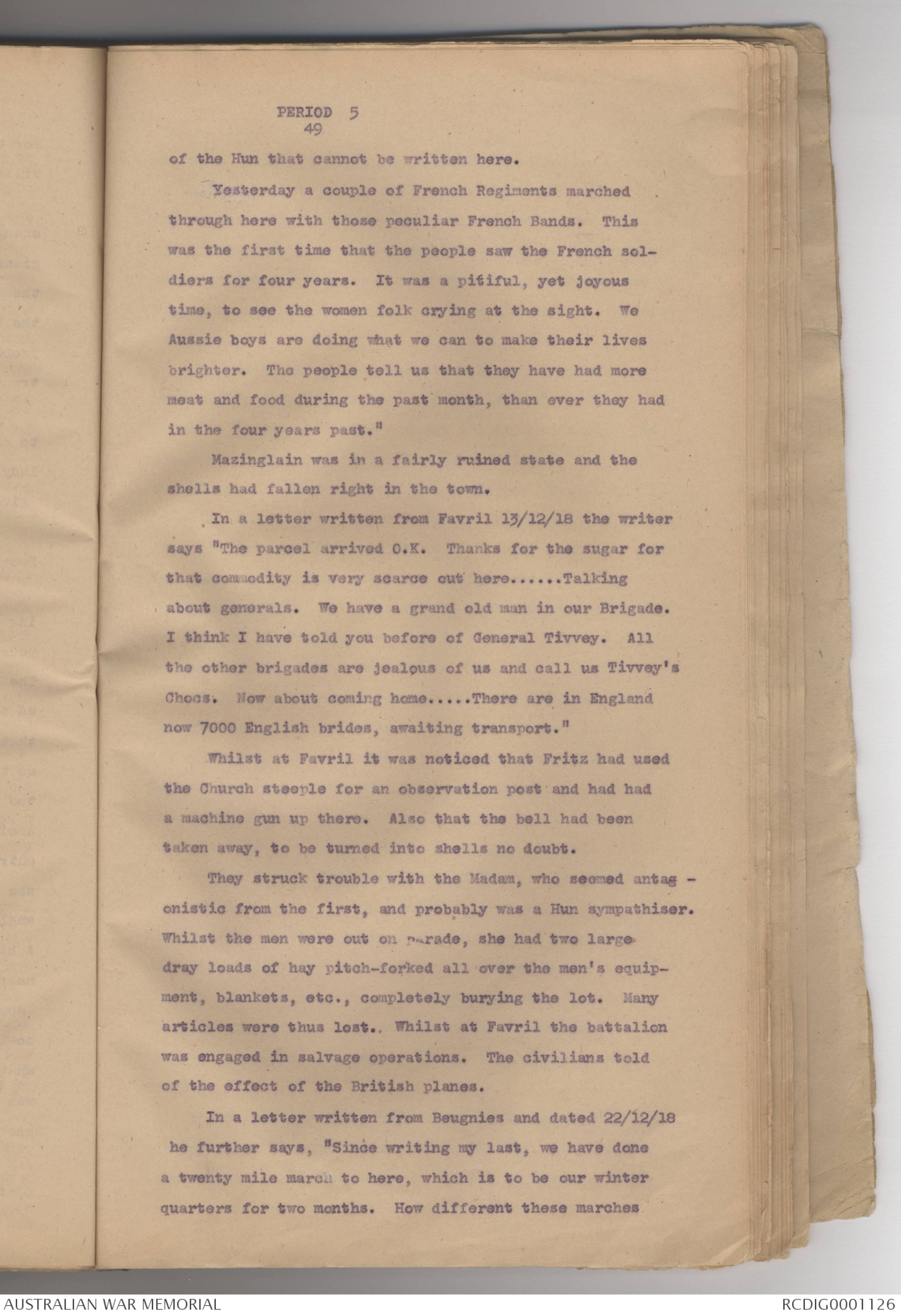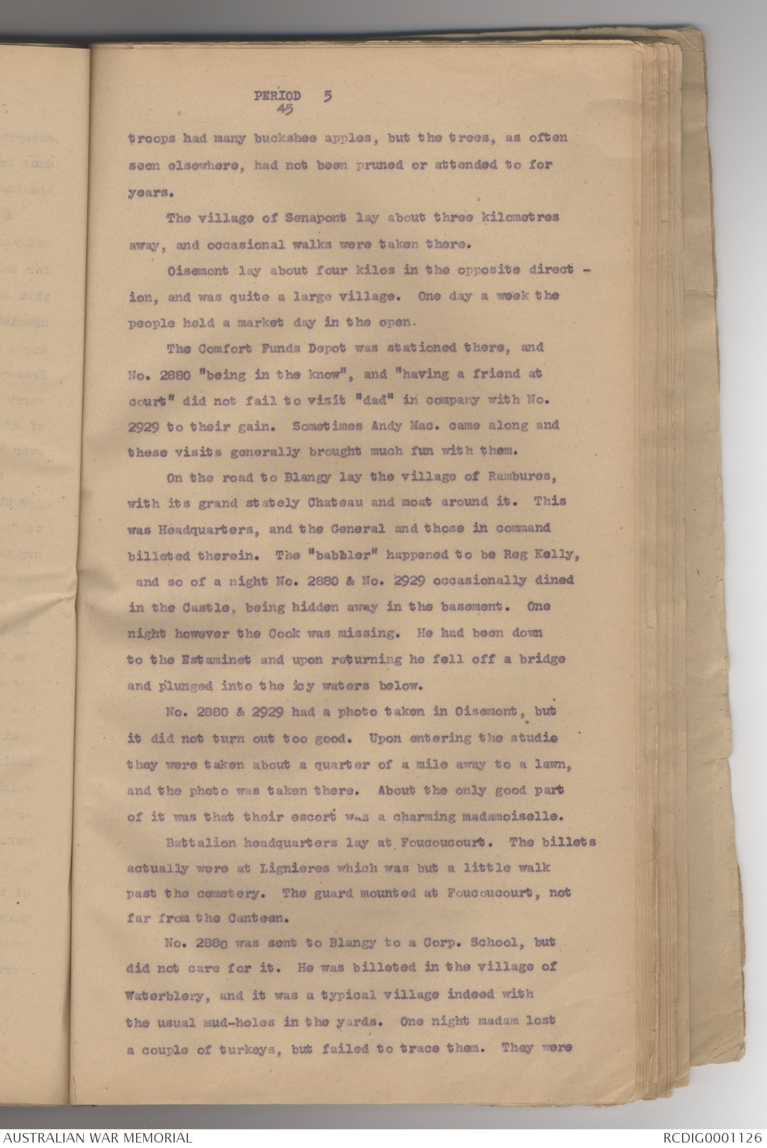 did not care for it. He was billeted in the village of