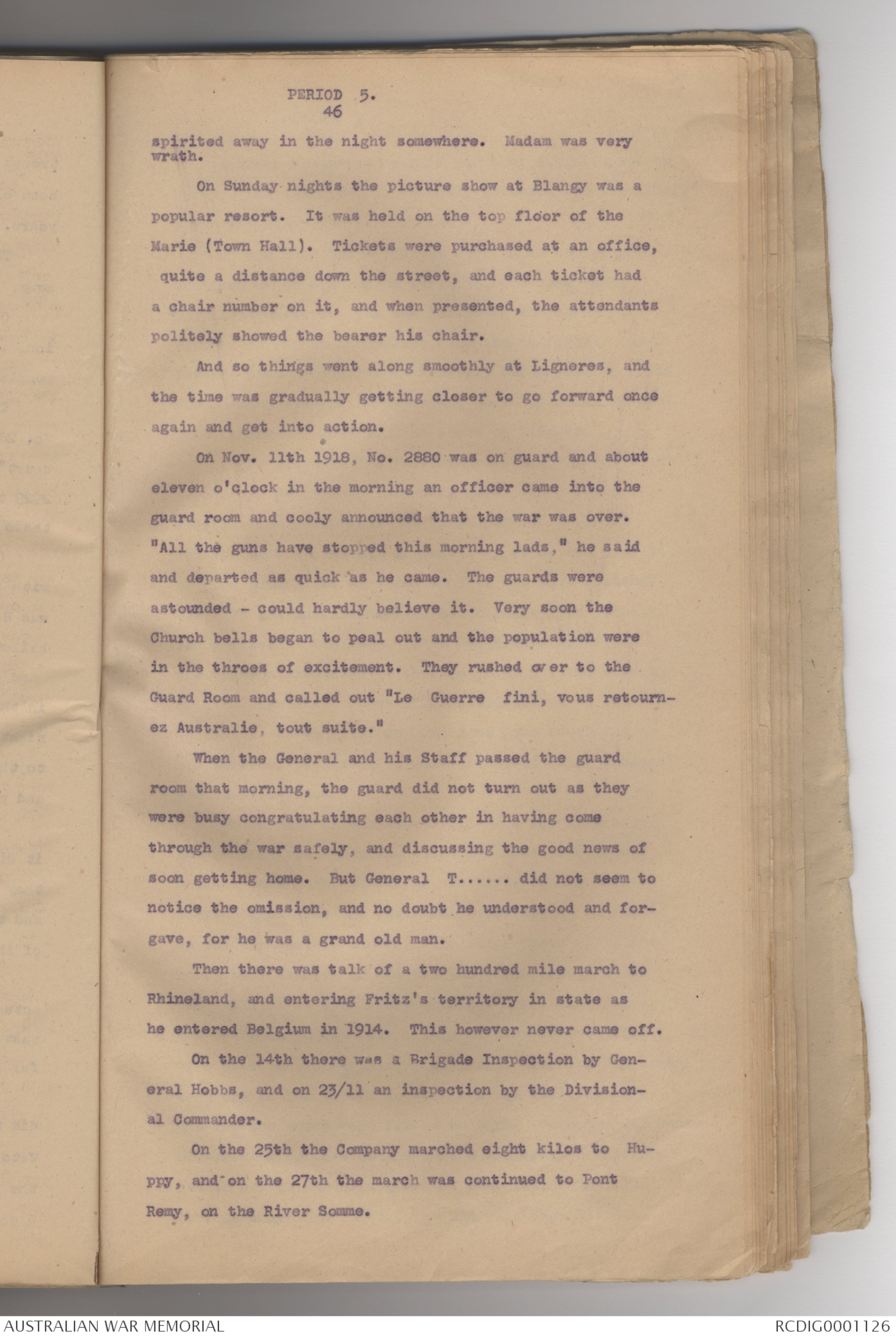 Guard Room and called out "Le Guerre fini, vous retournez