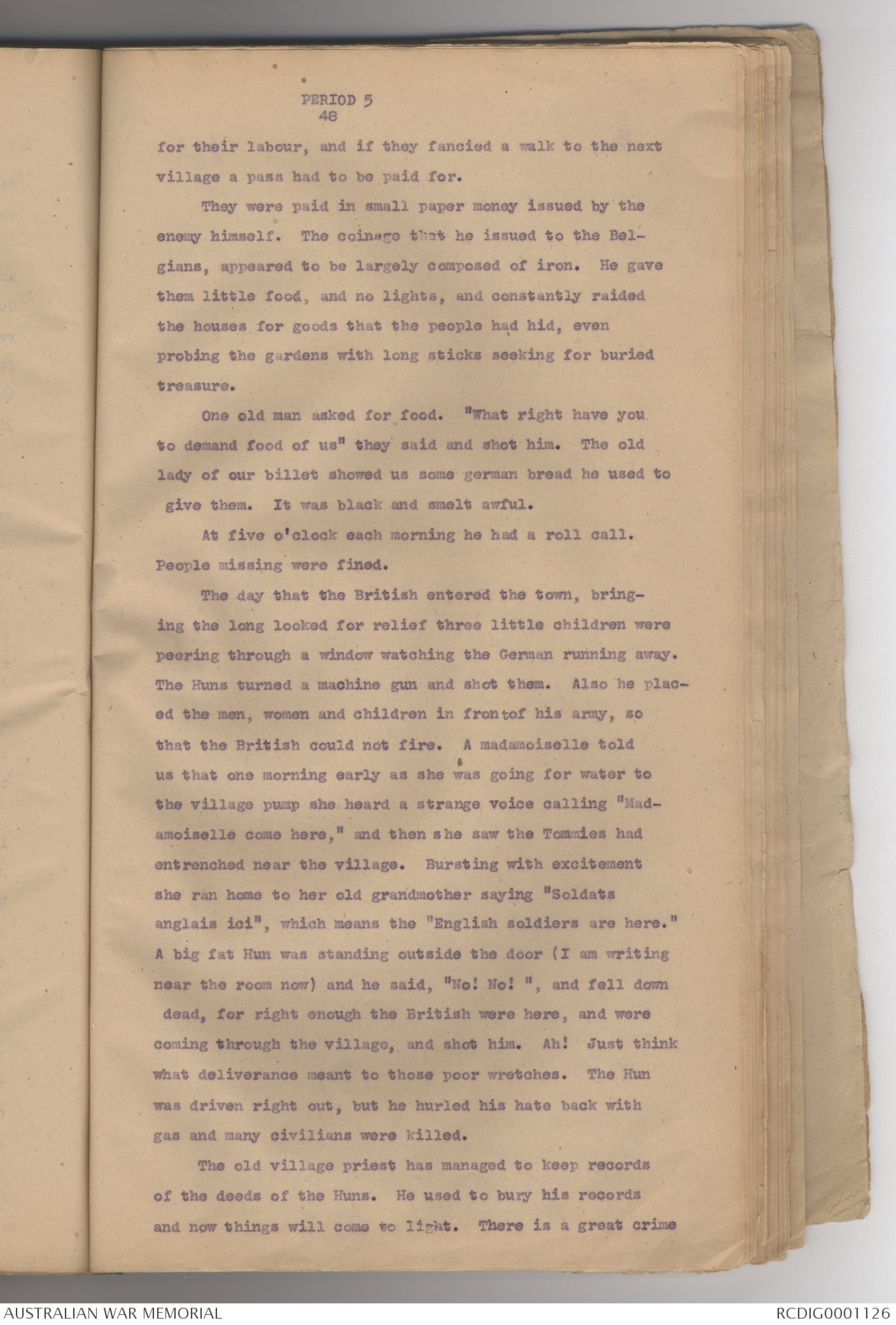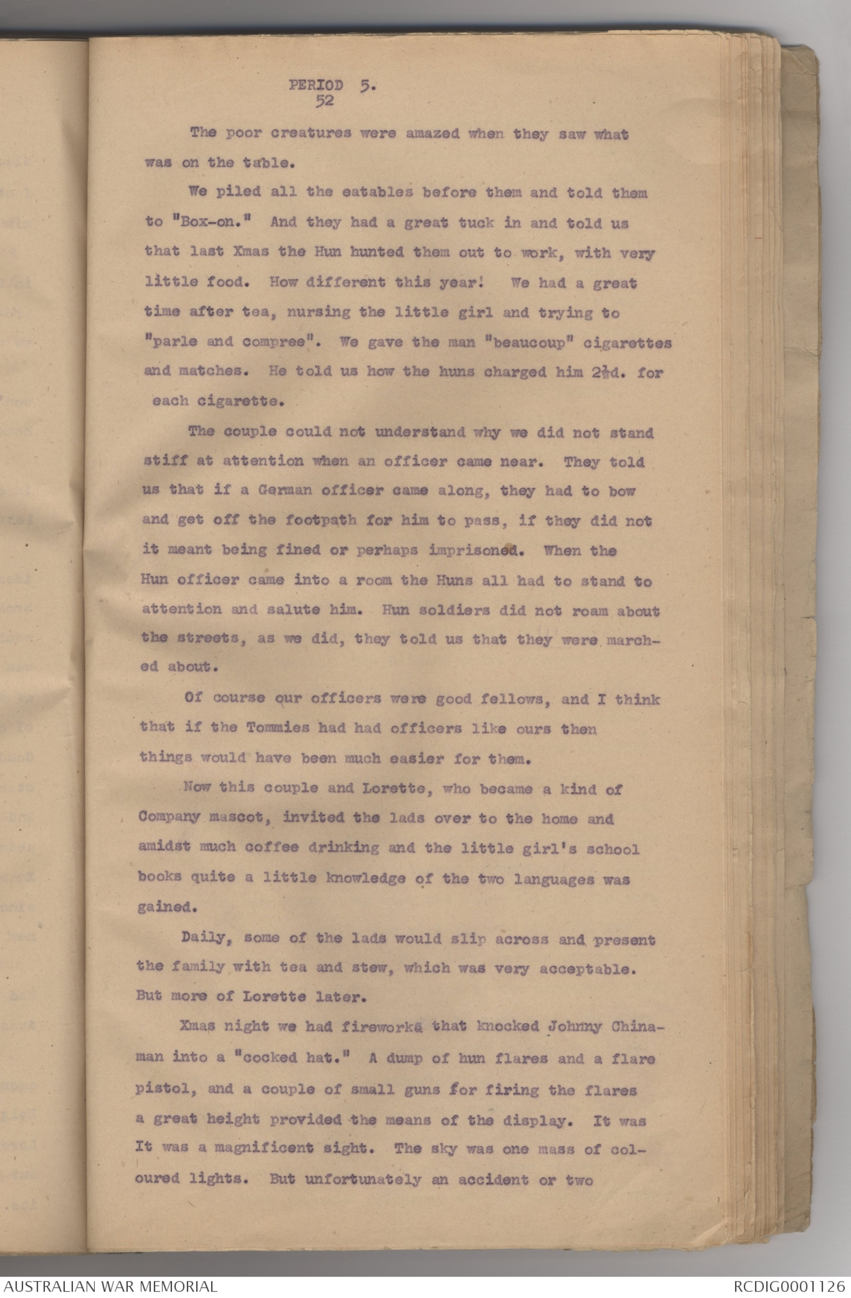and matches. He told us how the huns charged him 2½d. for