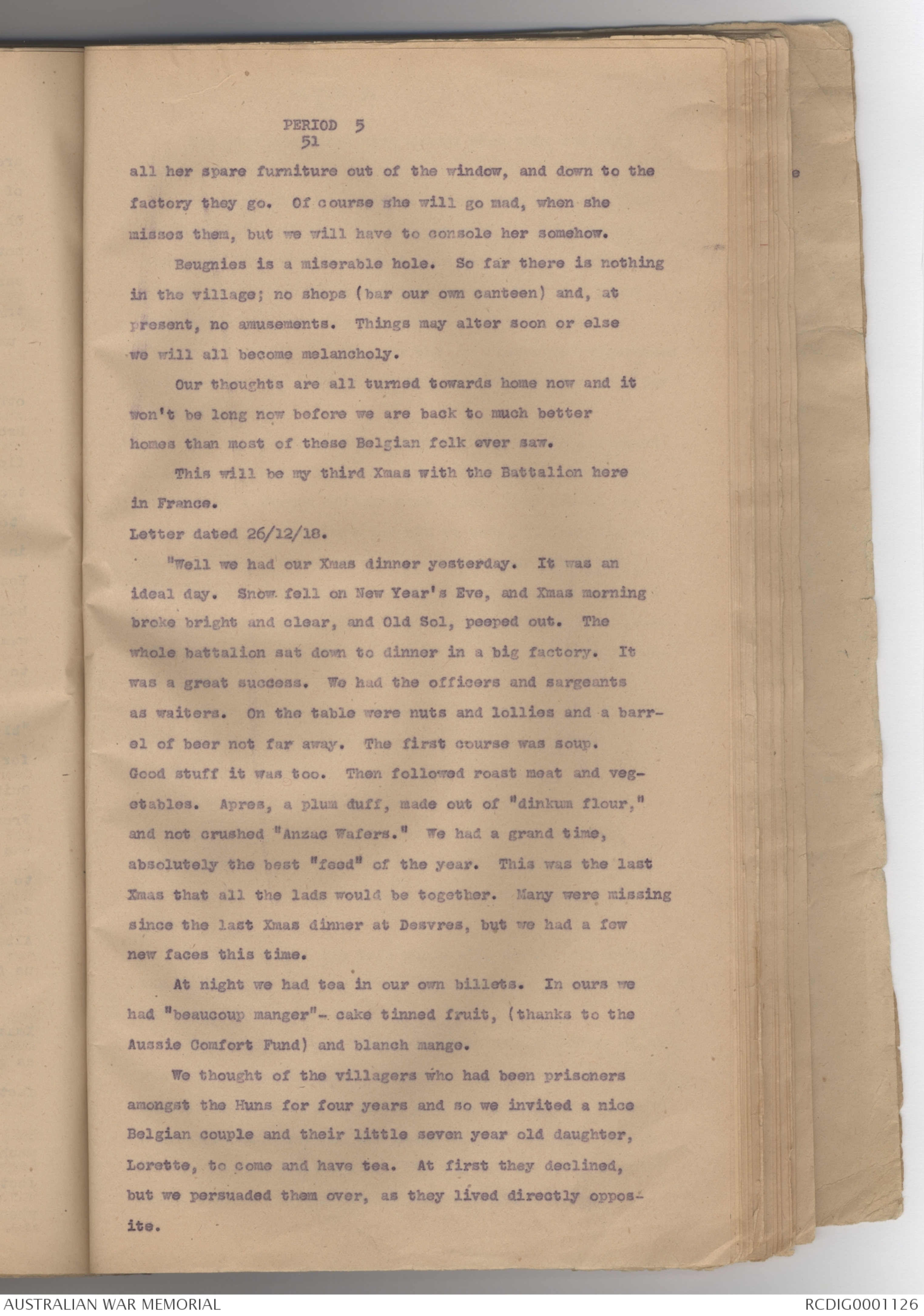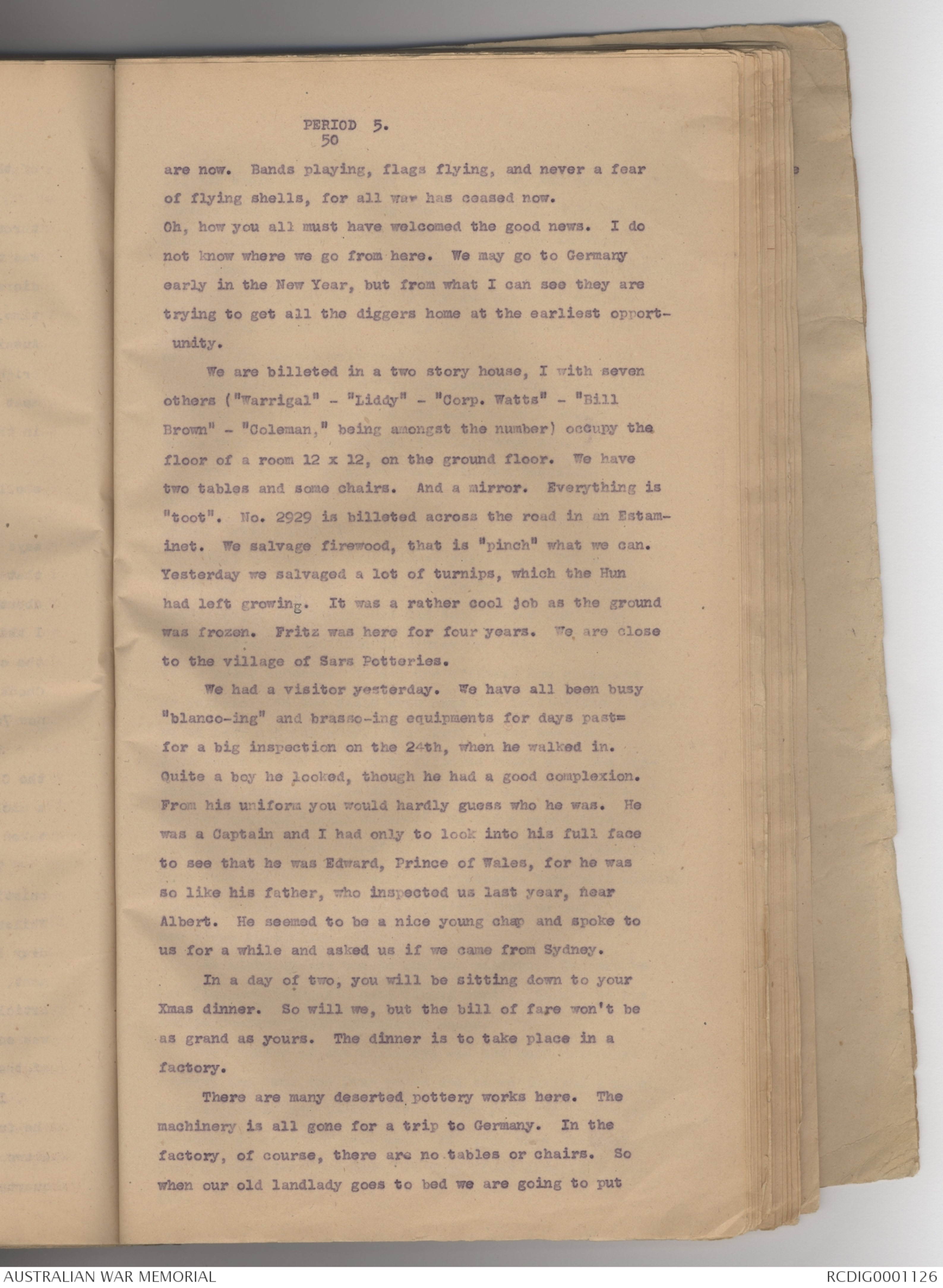 At night we had tea in our own billets. In ours we