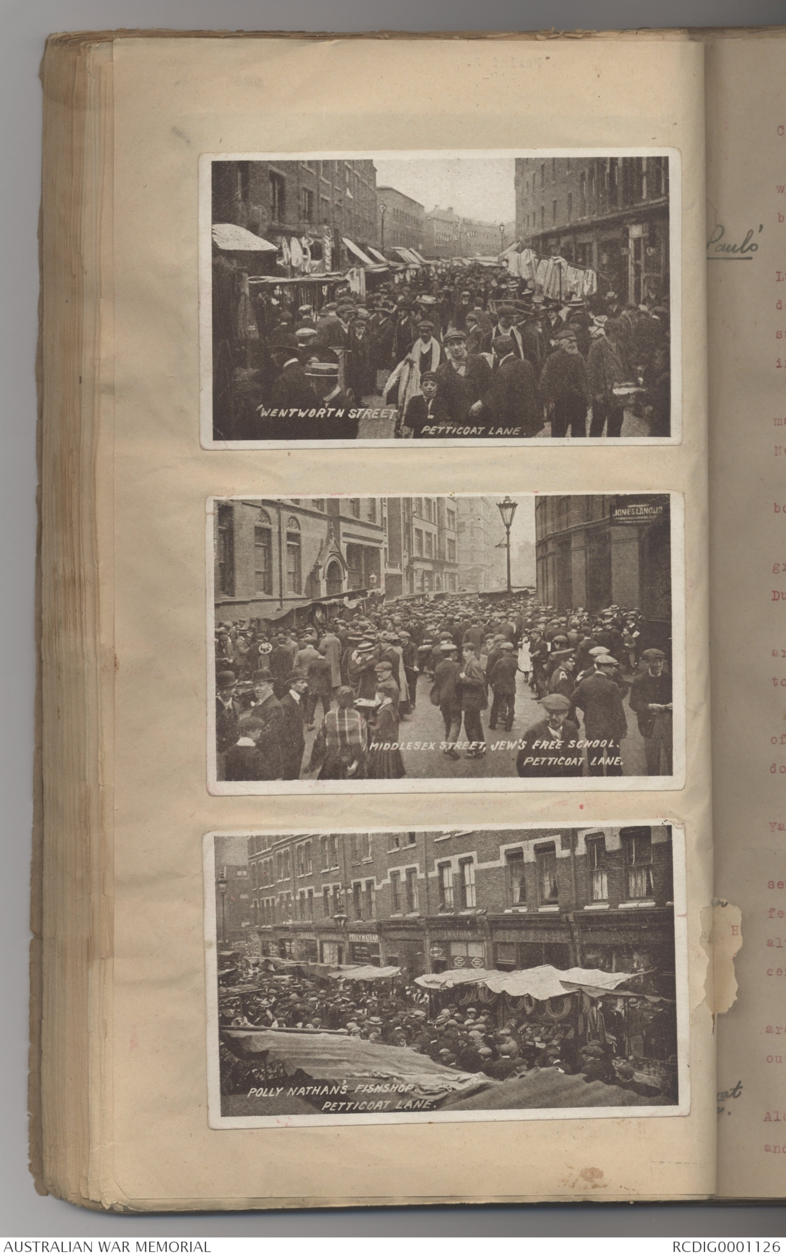 Petticoat Lane was "done" on Sunday, 9th July, and Aldgate,