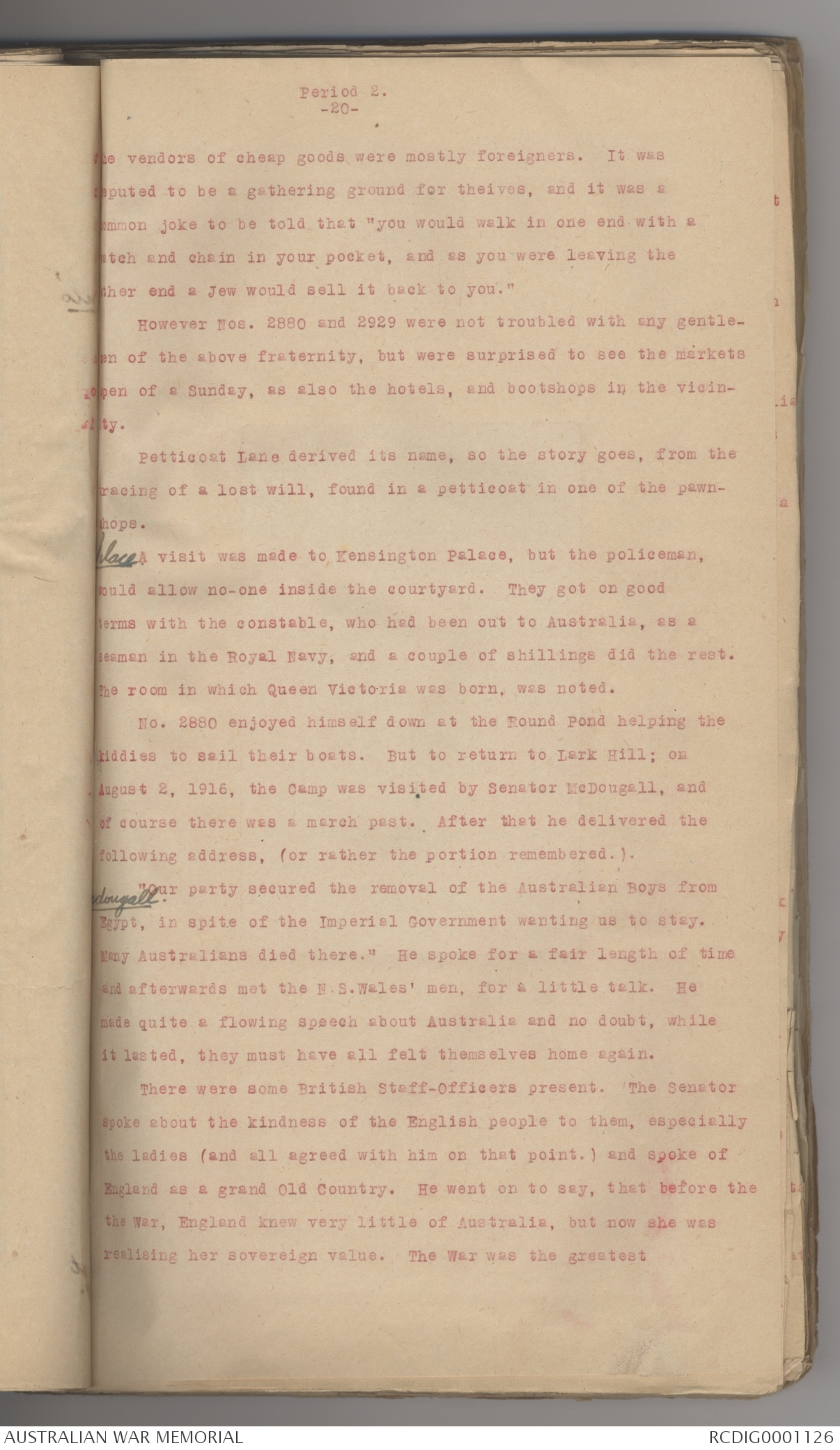 August 2, 1916, the Camp was visited by Senator McDougall, and