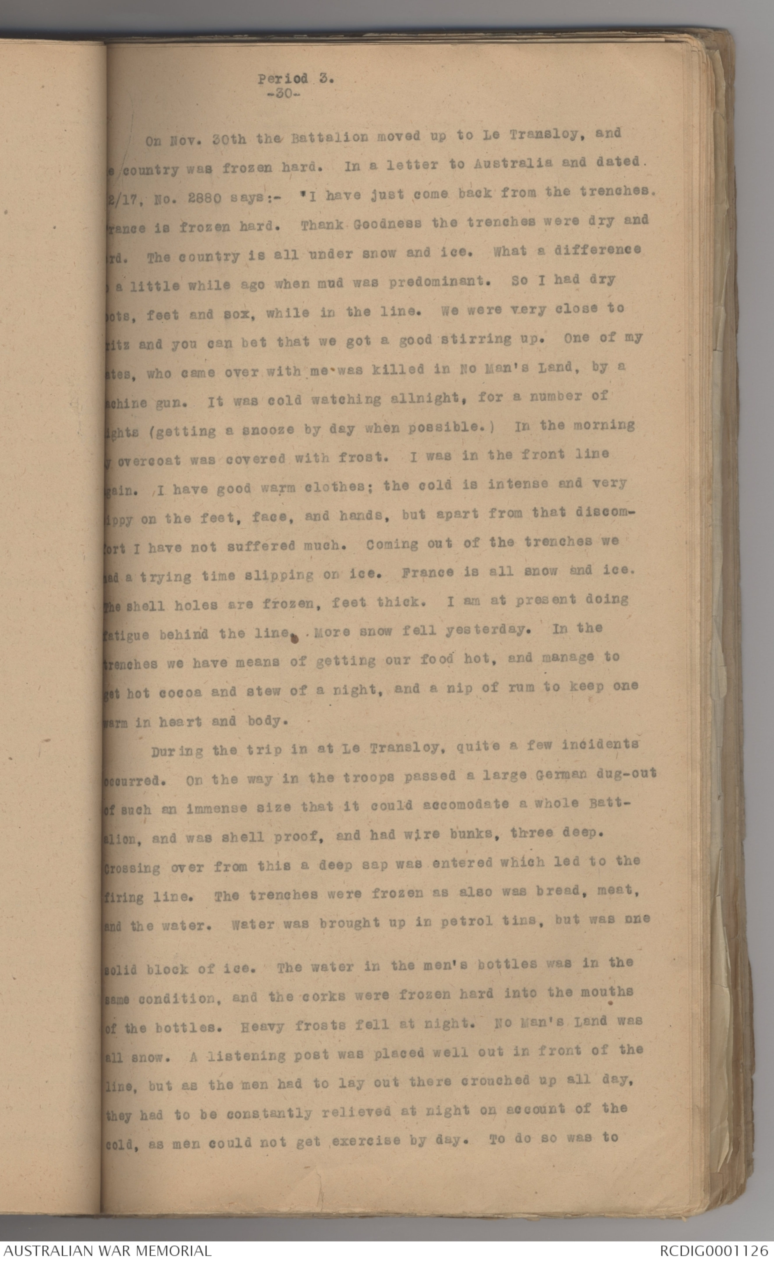 On Nov. 30th the Battalion moved up to Le Transloy, and