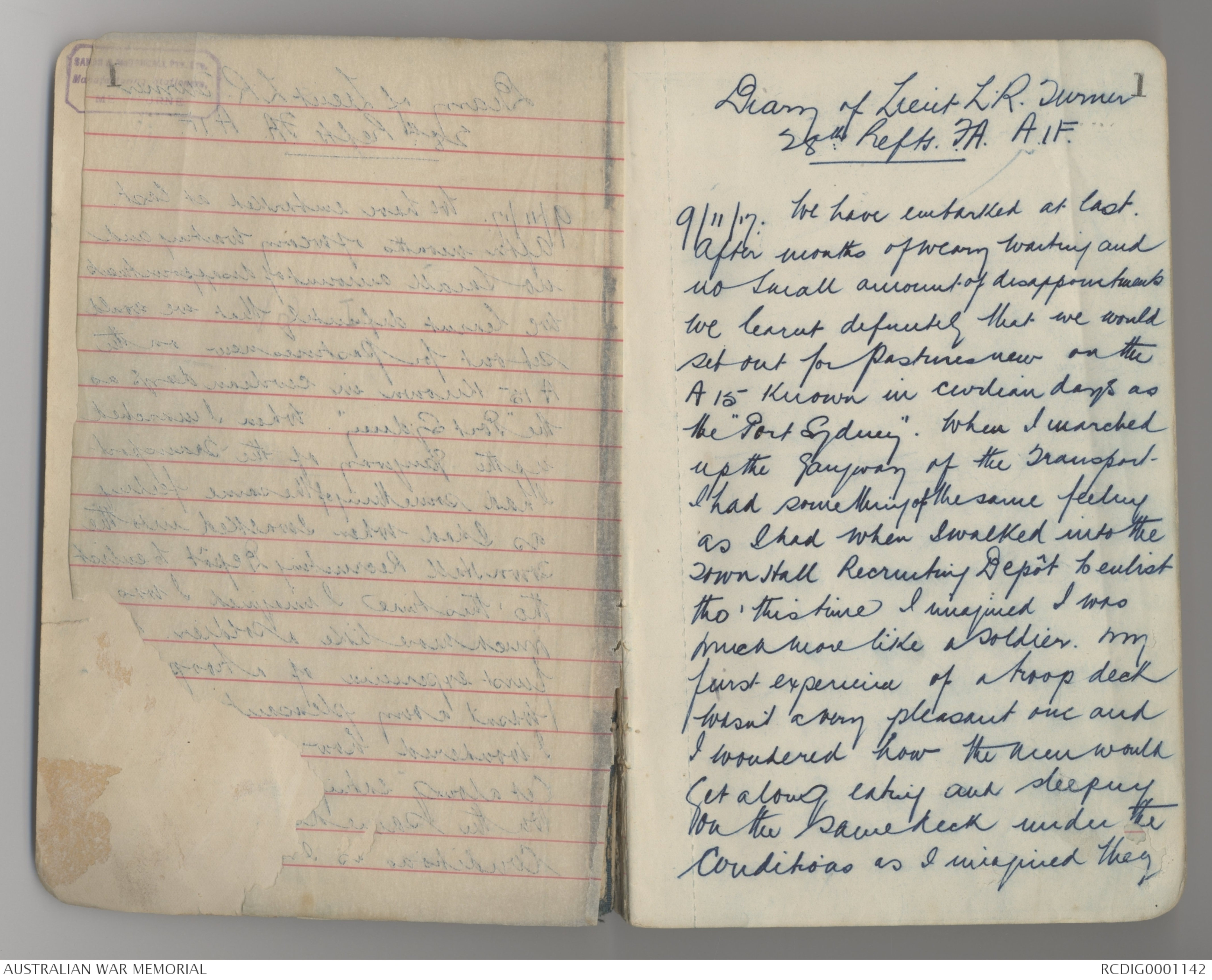 Diary of Lieut L.R. Turner
