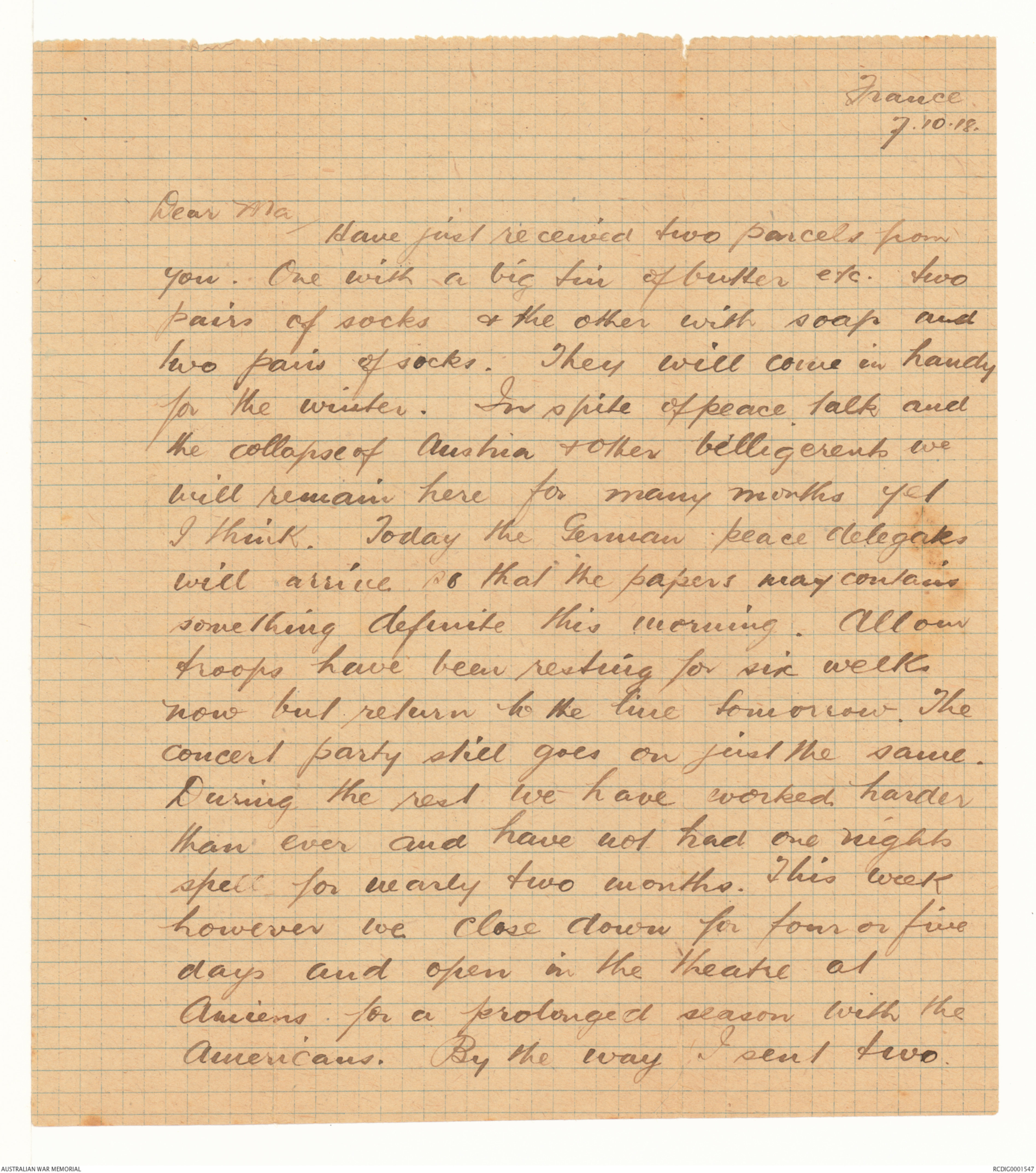 Letters from William Leslie [Robert] Chisholm to his family, 1918 - Part 2