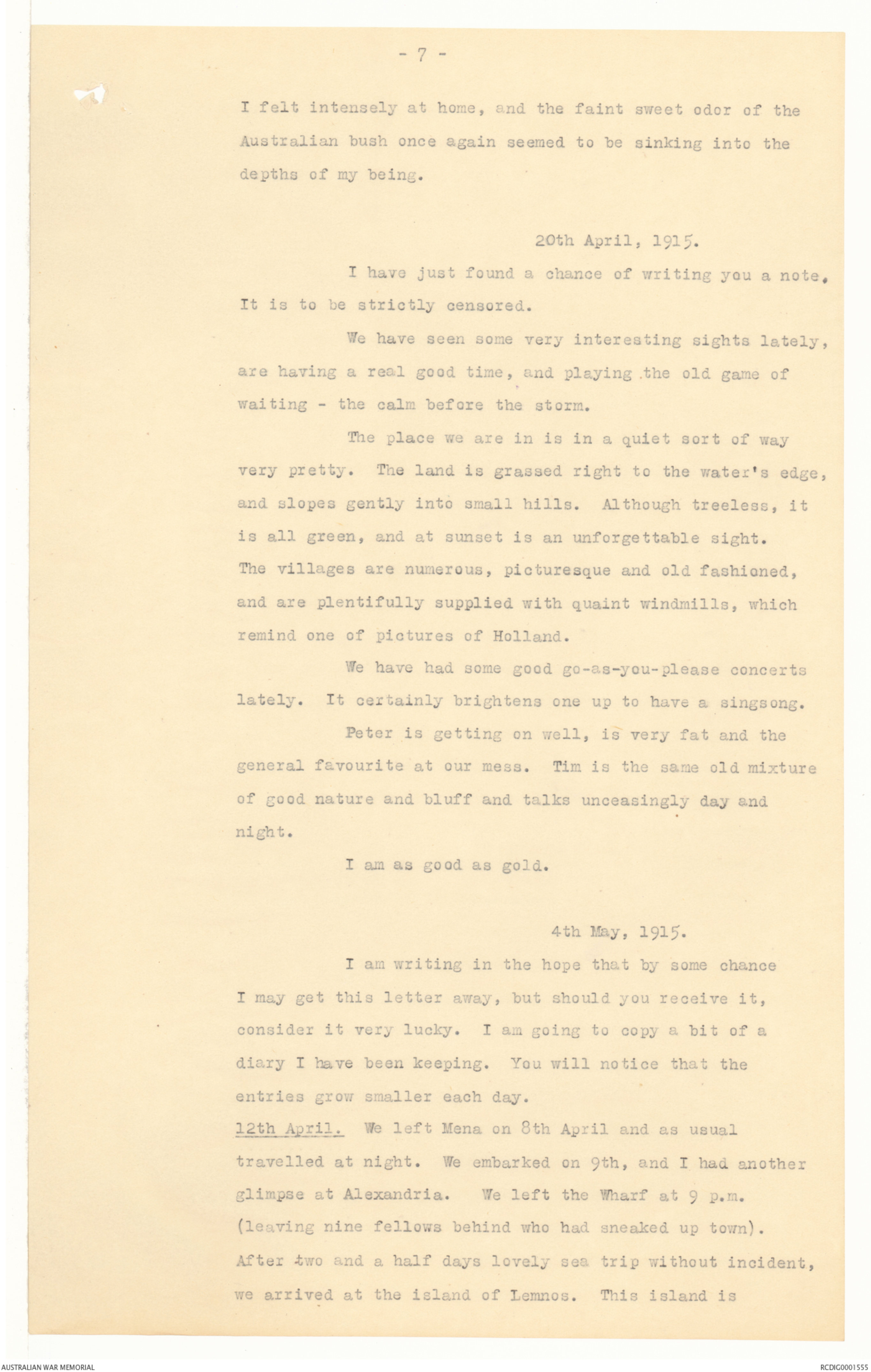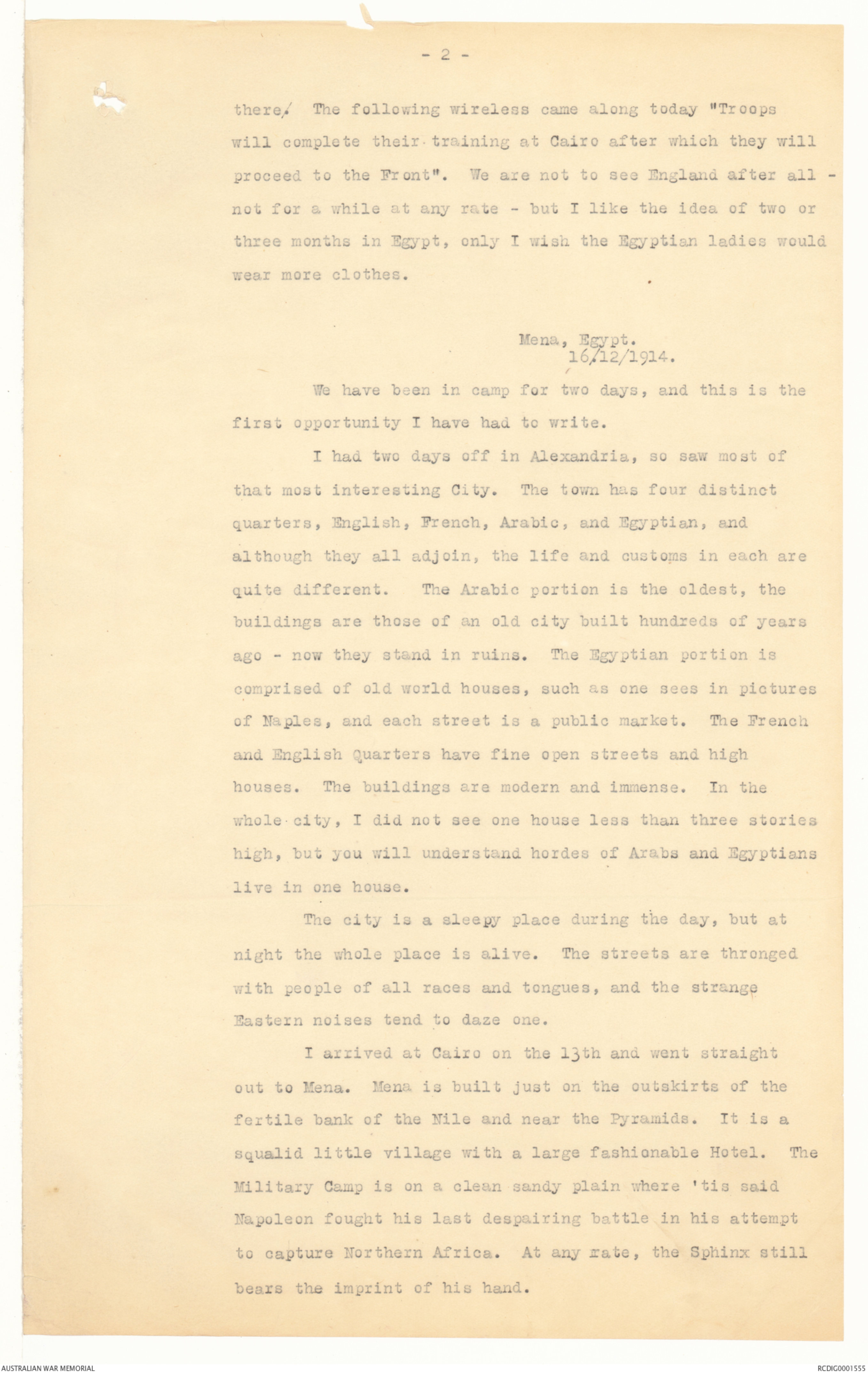 Typescript copies of letters from Hector Roy McLarty, 18 November 1914 to 7 August 1918 - Part 1