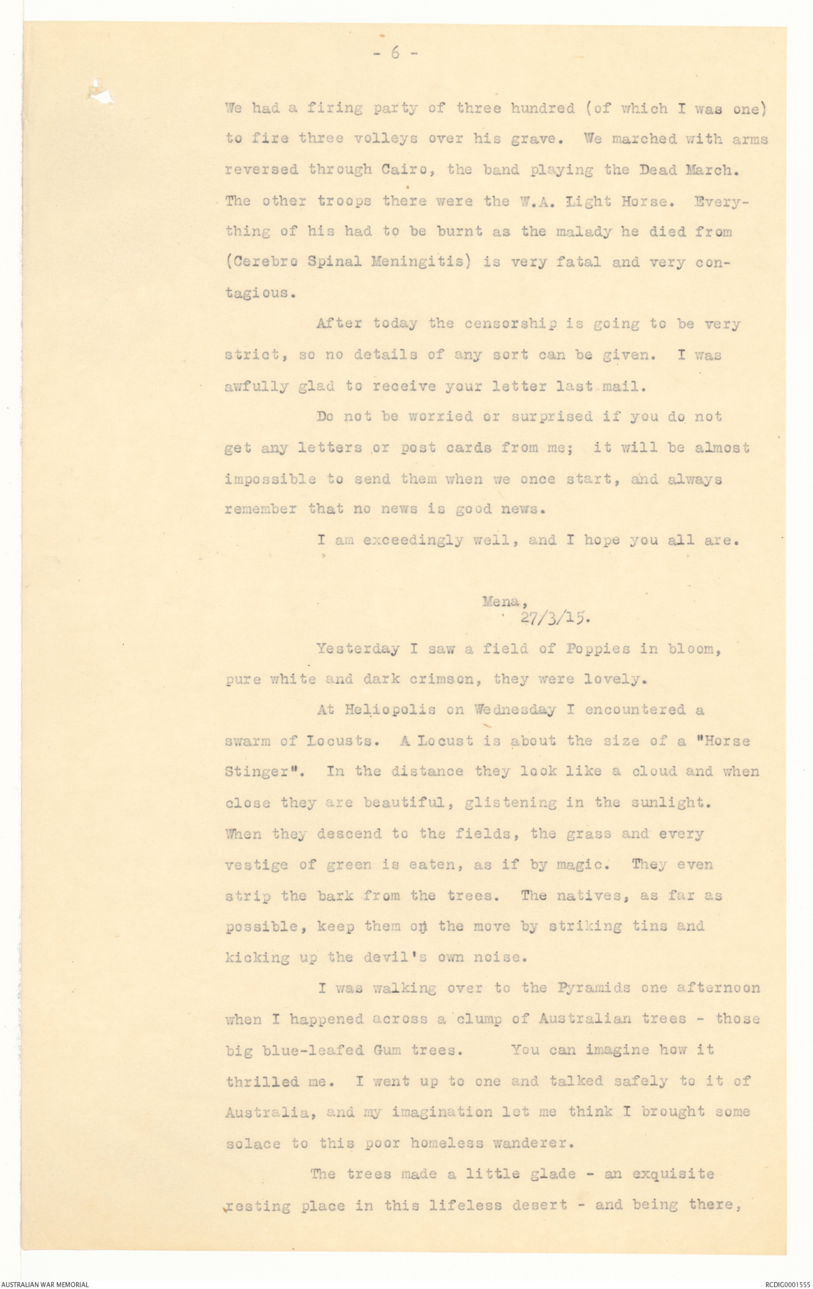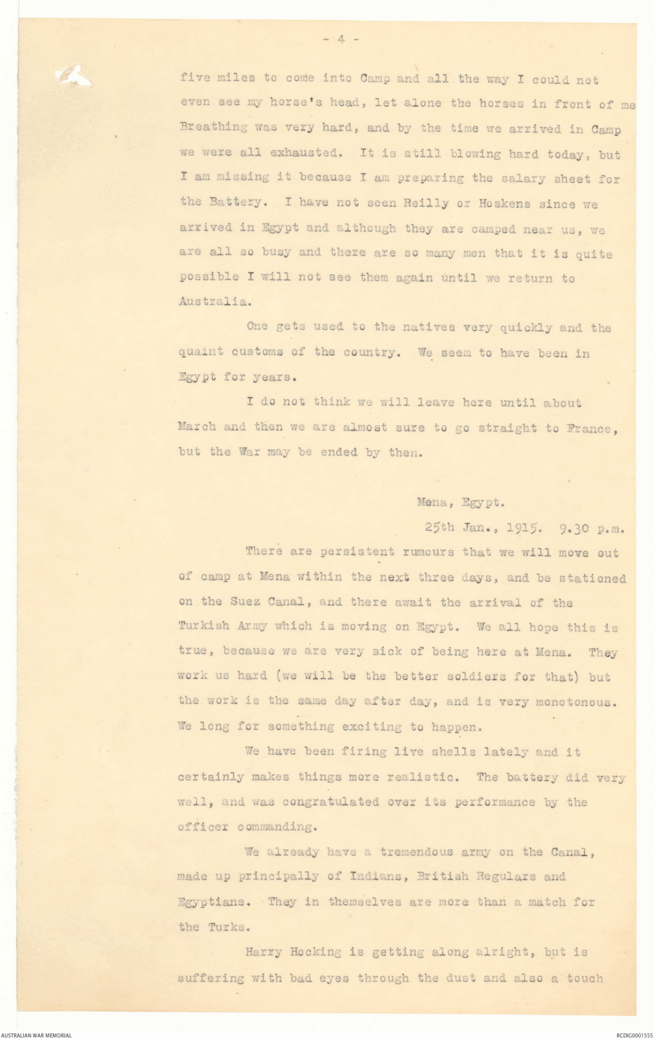 April, 1915 until the Evacuation; in Egypt and Sinai from